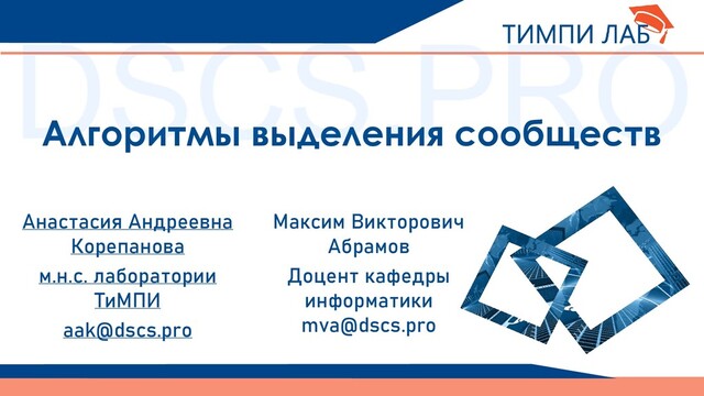 графа, — множество рёбер графа • = , = || • — набор вершин графа , образующих сообщество • — число вершин в сообществе , — число рёбер в сообществе • Плотность графа = ( − 1)/2 • Внутренняя плотность сообщества = ( − 1)/2 • Внешняя плотность = ( − )/2 > >