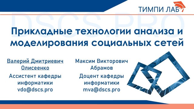 из множества агентов (индивидуальных или коллективных) и определенной на ней множества отношений (совокупности связей между агентами)1. 1) Объект исследования — социальные сети; 2) Предмет исследования —онлайн-платформы (ВКонтакте, Facebook, Instagram); 3) Цель — характеризующая информация о социальных сетях. 1Губанов Д. А., Новиков Д. А., Чхартишвили А. Г. Социальные сети: модели информационного влияния, управления и противоборства.