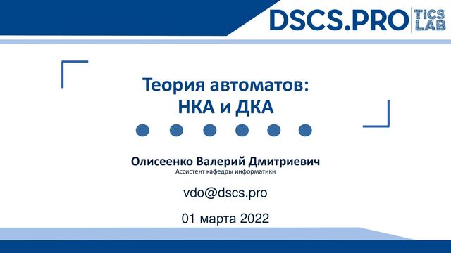 𝛺, 𝑞1 , 𝑌), где • 𝑋 = 𝑥1 , … , 𝑥𝑛 , 𝑛 > 1 — входной алфавит • 𝑄 = 𝑞1 , … , 𝑞𝑙 , 𝑙 > 1 — множество состояний • 𝛺: 𝑋 × 𝑄 → 2𝑄 или 𝑄 —функция перехода (недетерминированная и детерминированная ) • 𝑞1 ∈ 𝑄 — начальное состояние • 𝑌 ⊆ 𝑄 — множество заключительных состояний