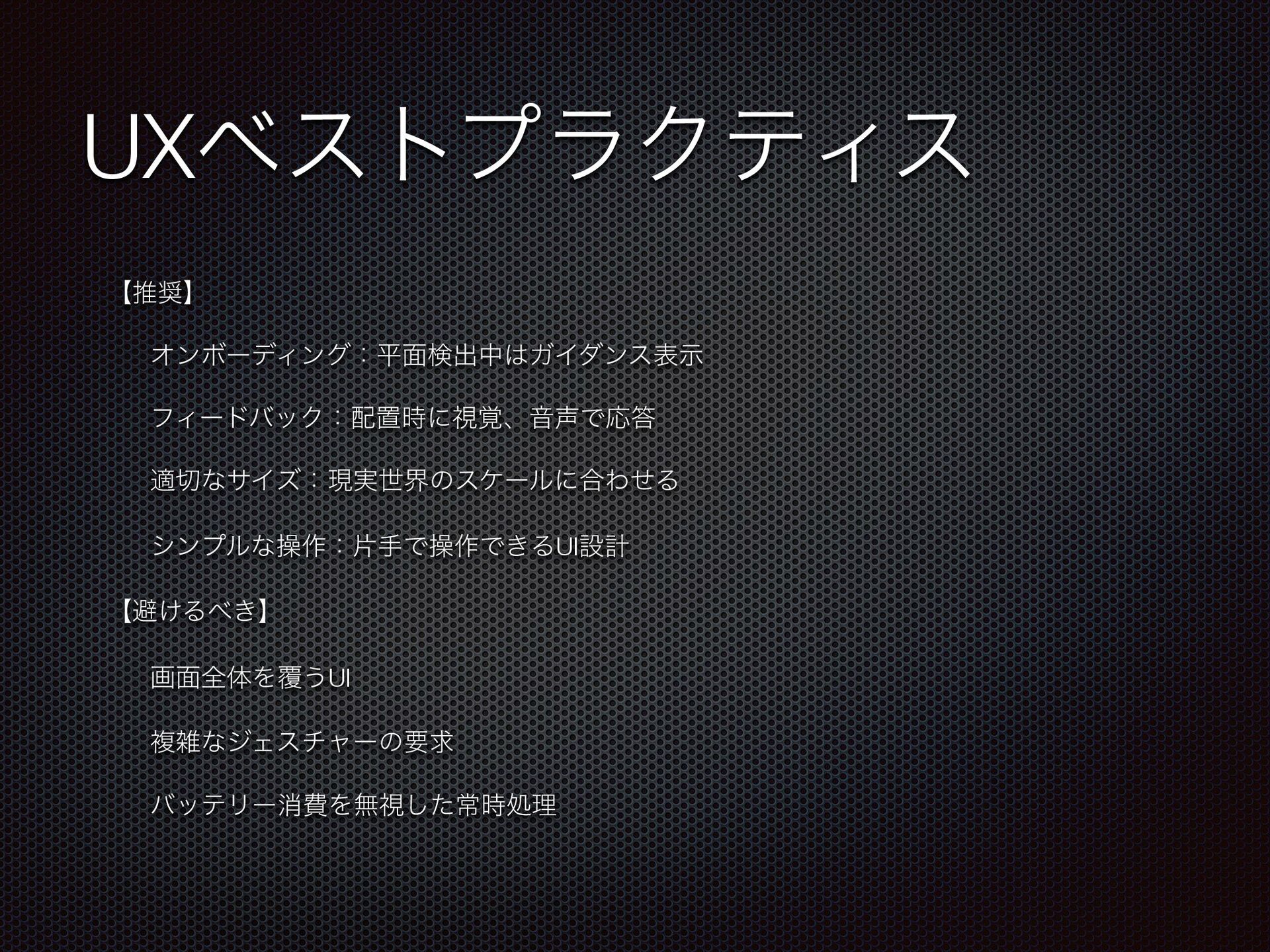 ARWorldMapརܽ ʲརʳ ໌ࣔతͳ੍ޚ͕Մೳ ۭؒϚοϓΛอଘͯ͠ޙͰ࠶ར༻Մೳ ʲܽʳ खಈͰͷಉظ͕ඞཁ ϦΞϧλΠϜੑʹ͚ܽΔ ϑΝΠϧαΠζ͕େ͖͘ͳΔ͜ͱ͕͋Δ
