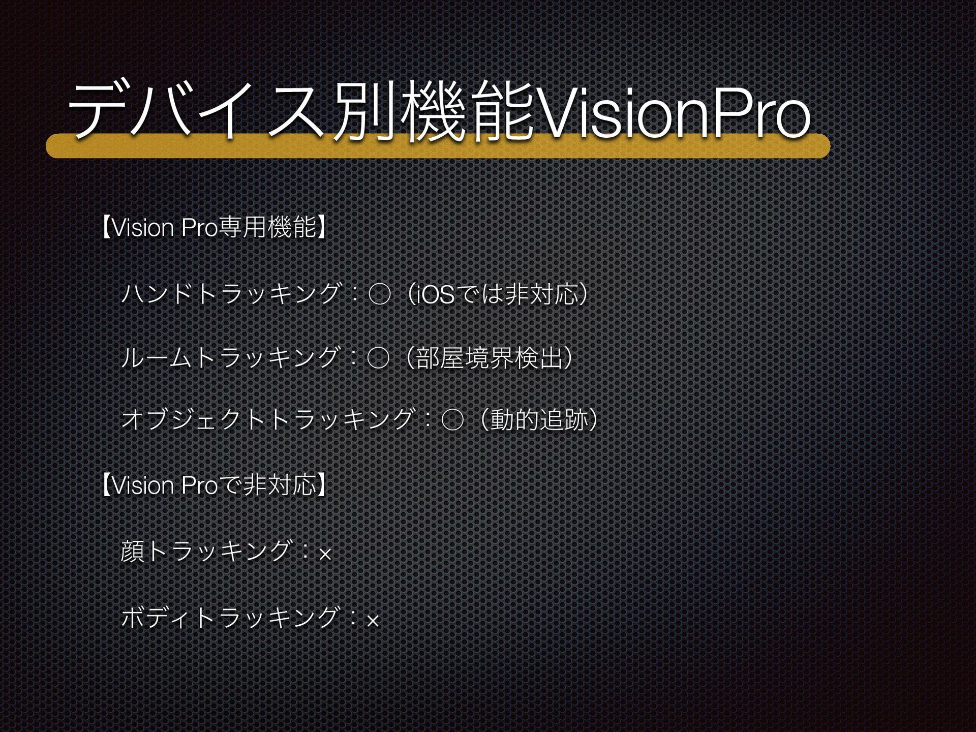 σόΠεผػೳVisionPro ʲVision Proઐ༻ػೳʳ ϋϯυτϥοΩϯάɿ˓ʢiOSͰඇରԠʣ ϧʔϜτϥοΩϯάɿ˓ʢ෦ڥքݕग़ʣ ΦϒδΣΫττϥοΩϯάɿ˓ʢಈతʣ ʲVision ProͰඇରԠʳ إτϥοΩϯάɿ× ϘσΟτϥοΩϯάɿ×