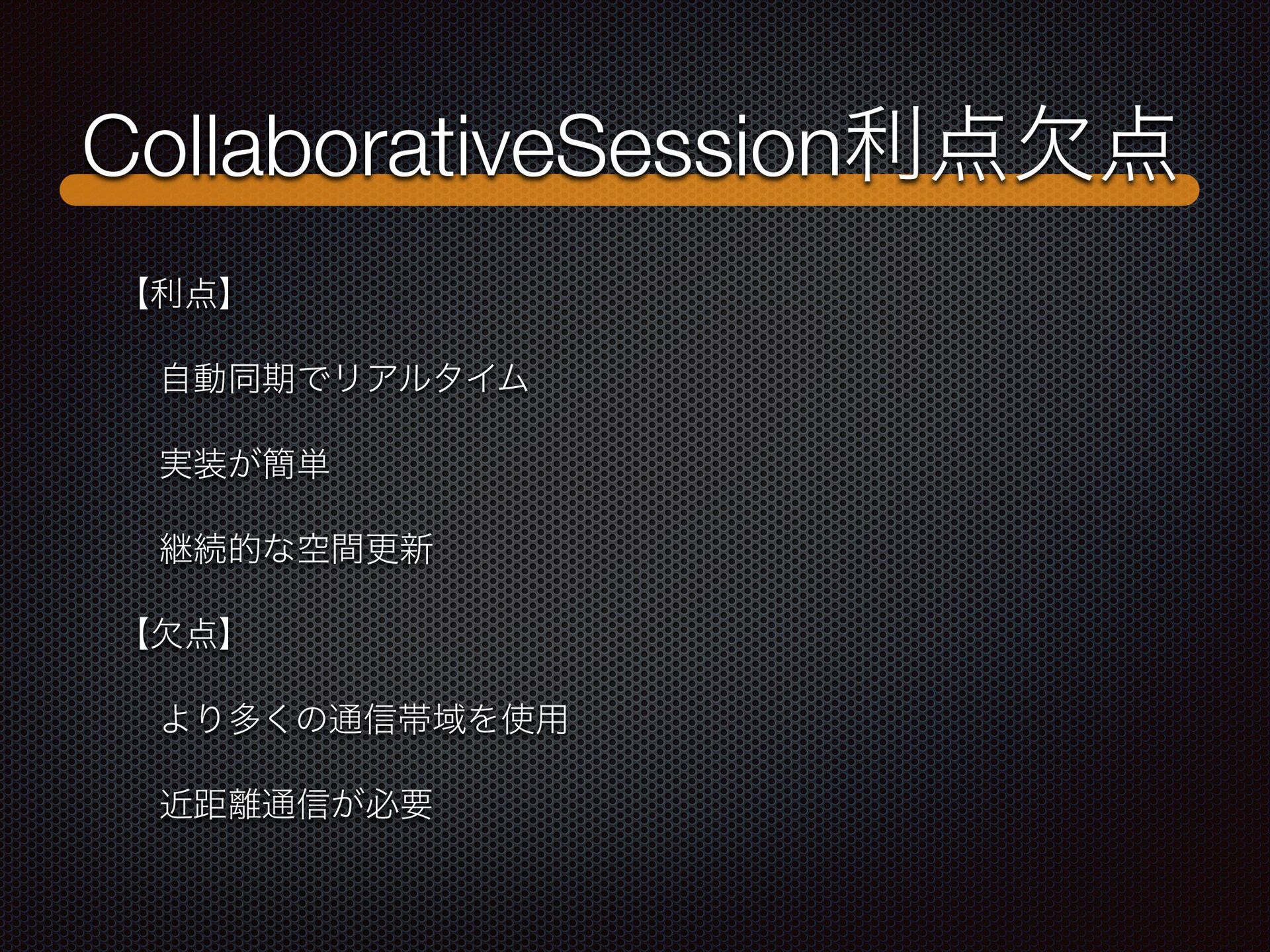 CollaborativeSessionརܽ ʲརʳ ࣗಈಉظͰϦΞϧλΠϜ ࣮͕؆୯ ܧଓతͳۭؒߋ৽ ʲܽʳ ΑΓଟ͘ͷ௨৴ଳҬΛ༻ ۙڑ௨৴͕ඞཁ