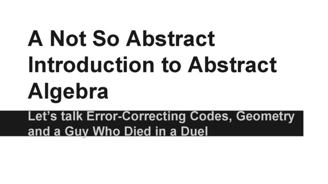 A Not So Abstract Introduction to Abstract Algebra Let’s talk