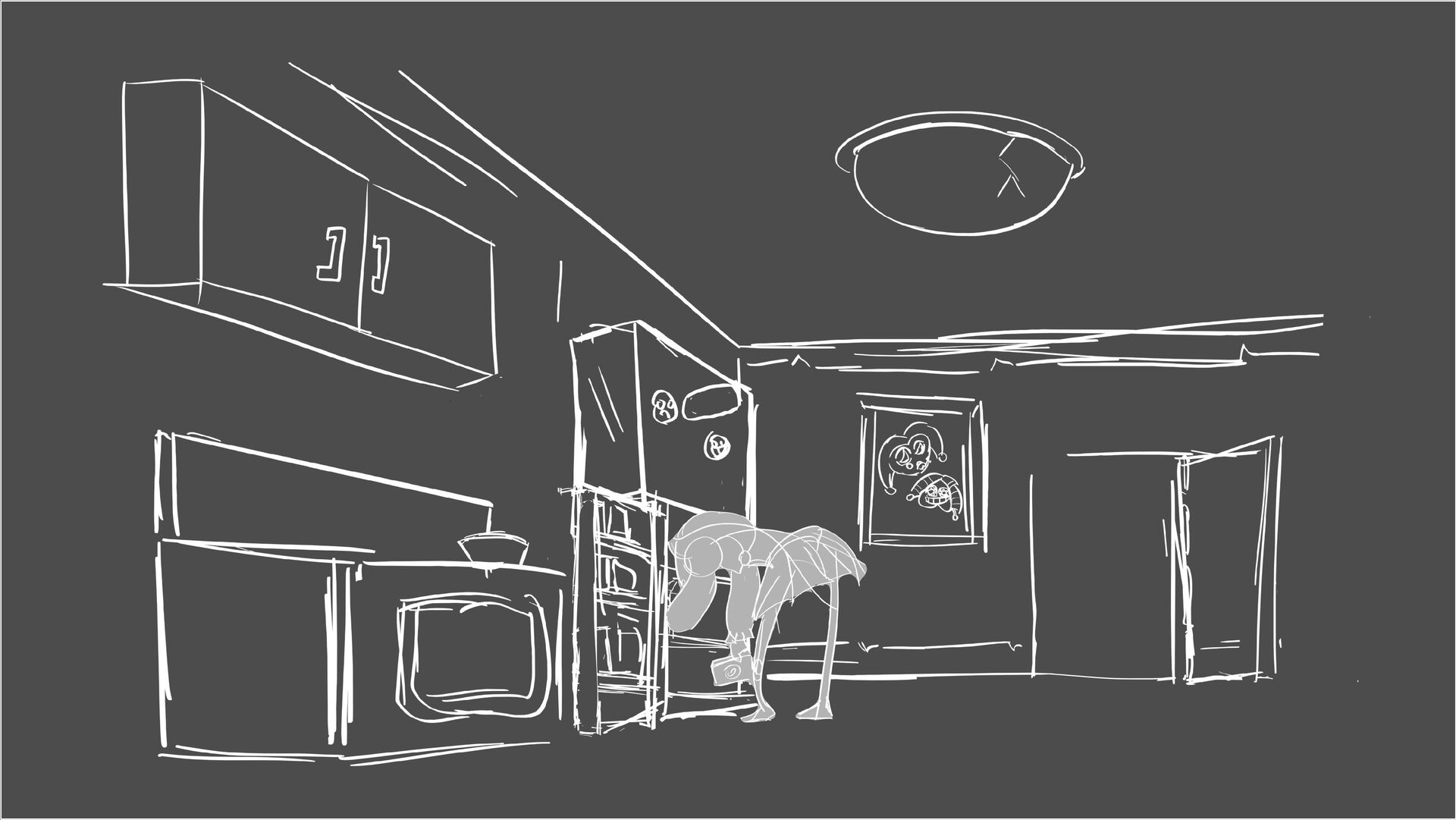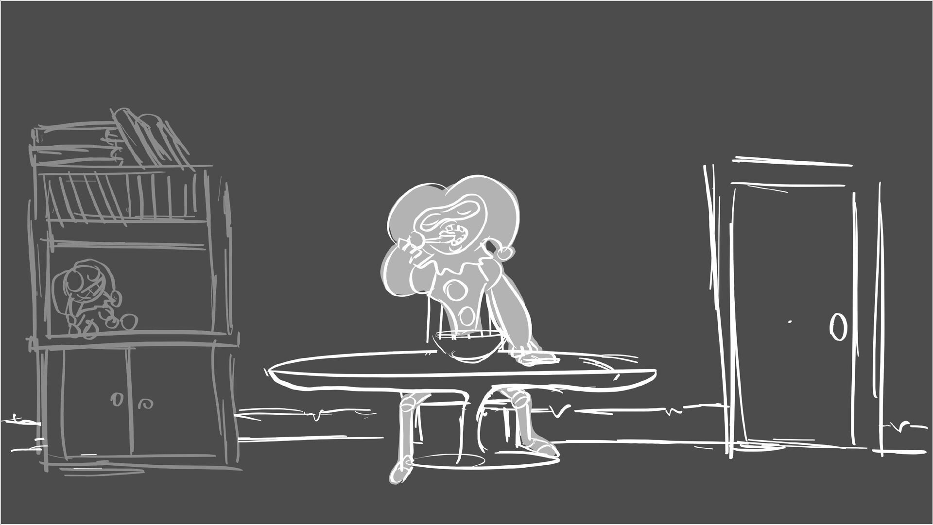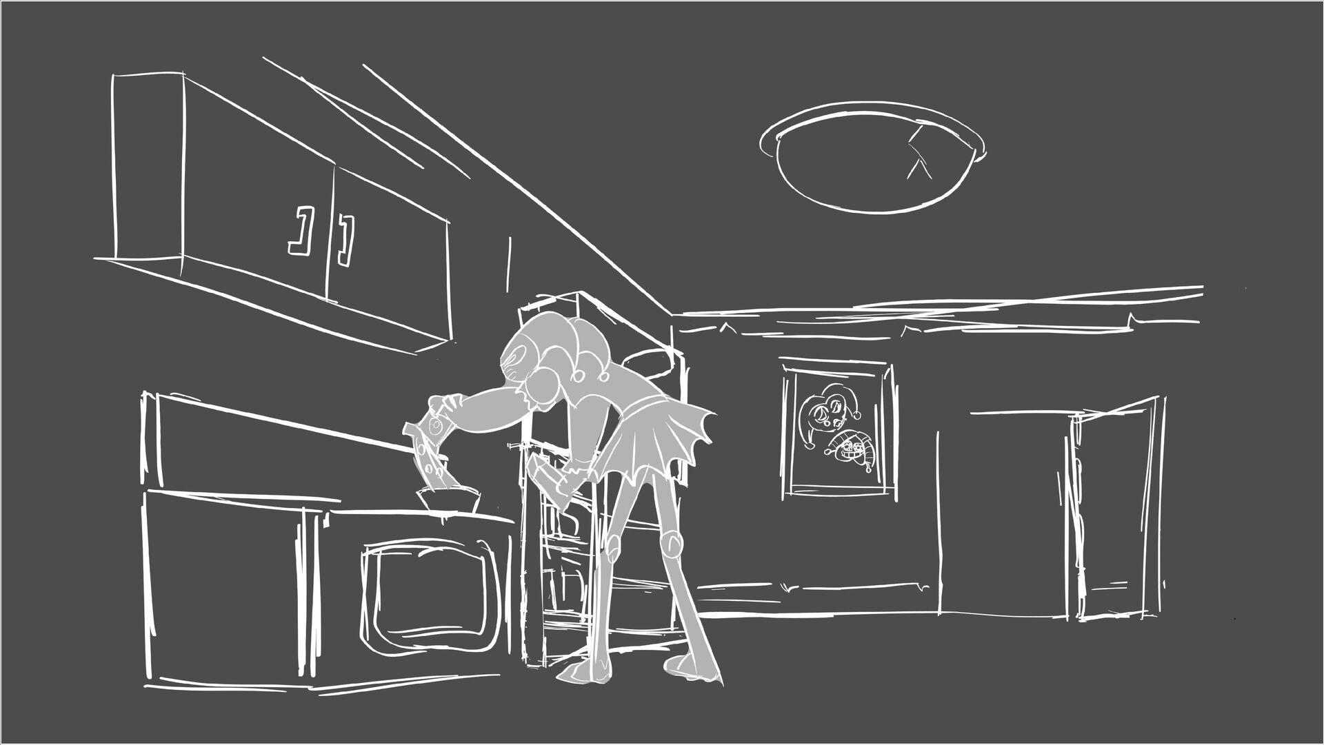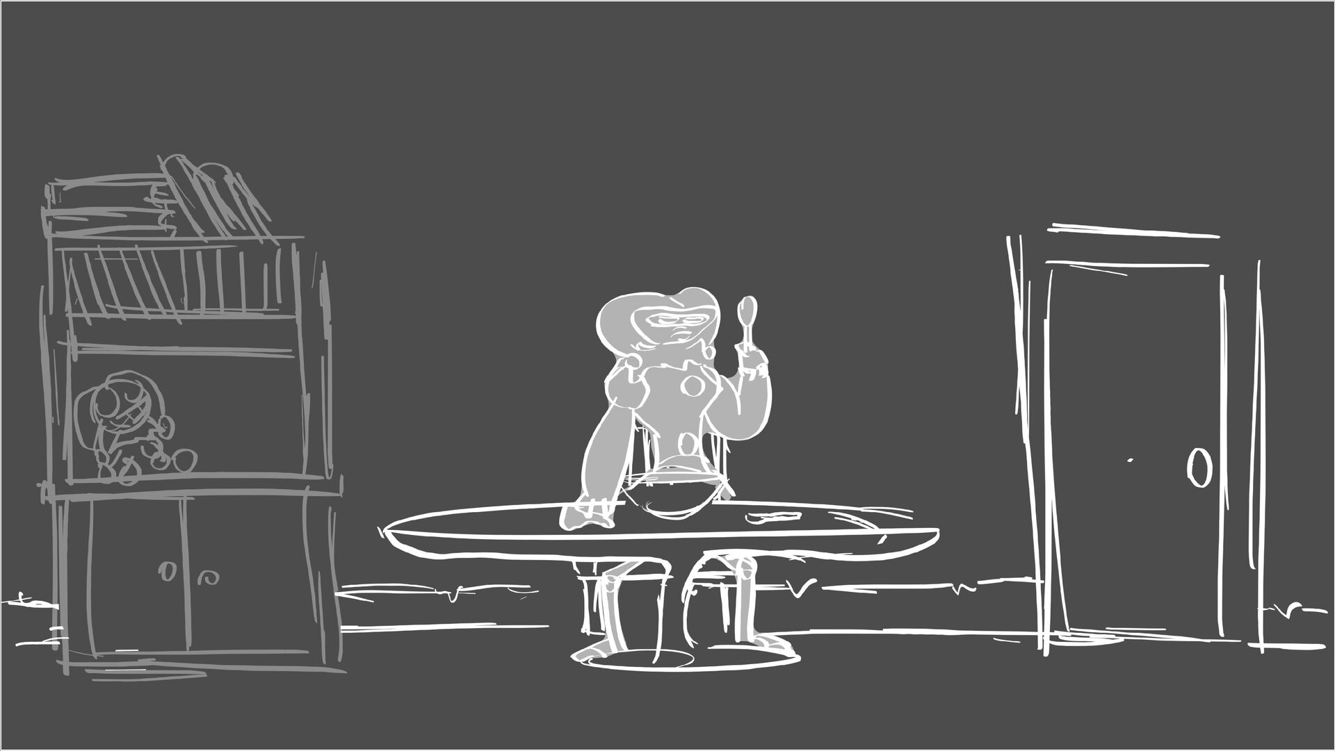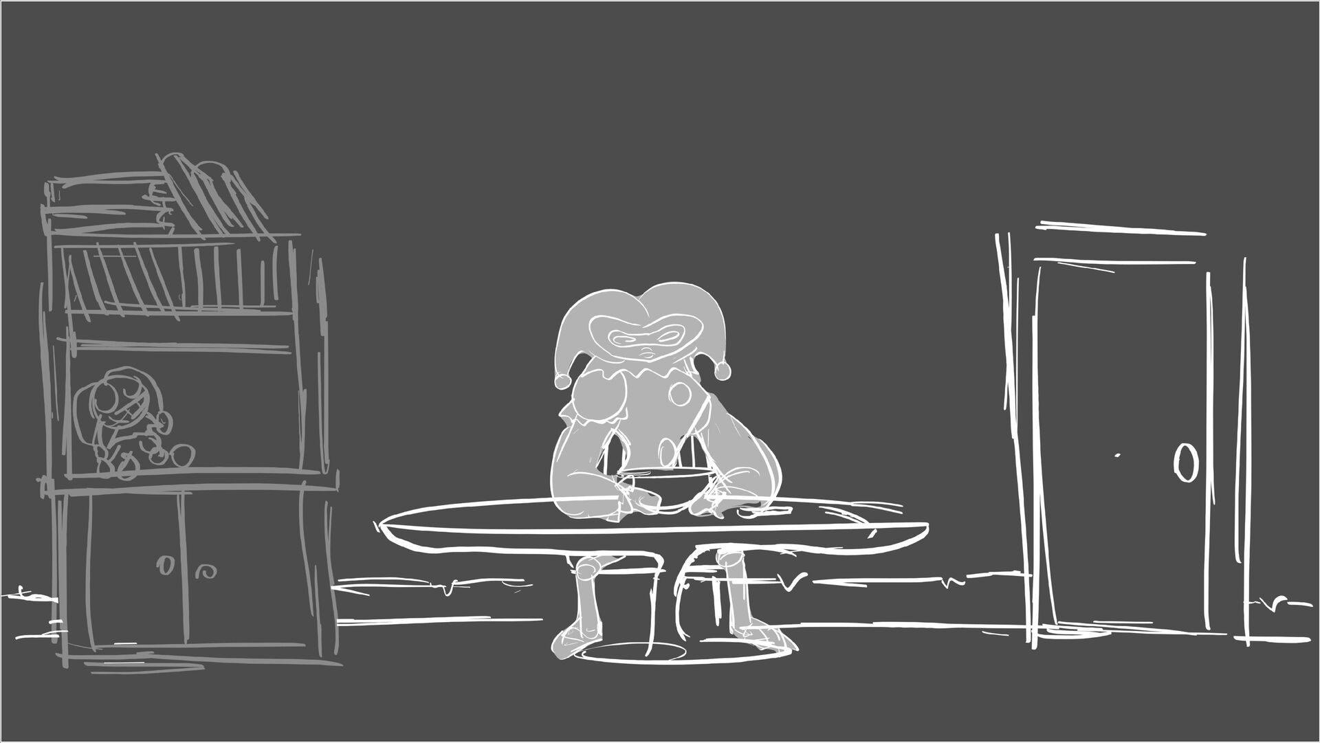 A mime made of shadows tries to eat breakfast but her upstairs neighbor ruins the moment.