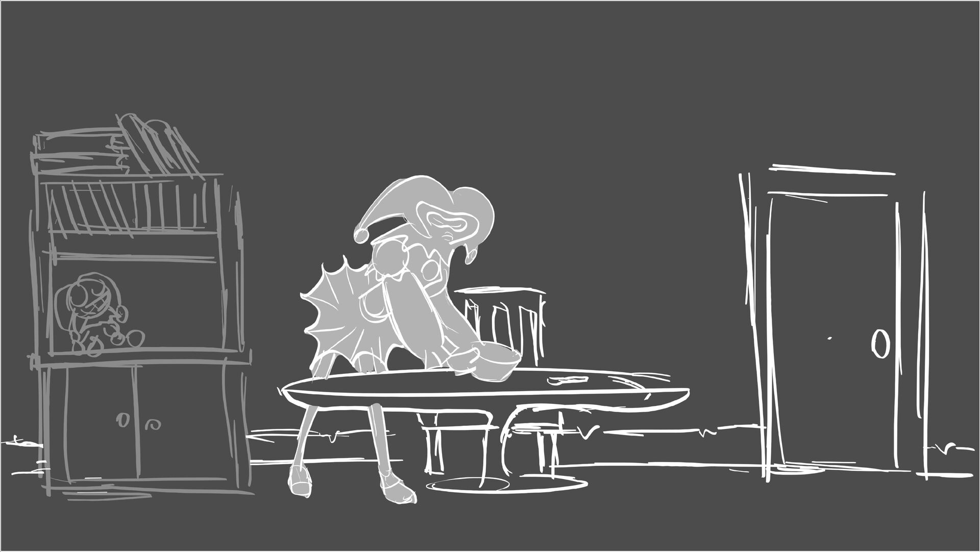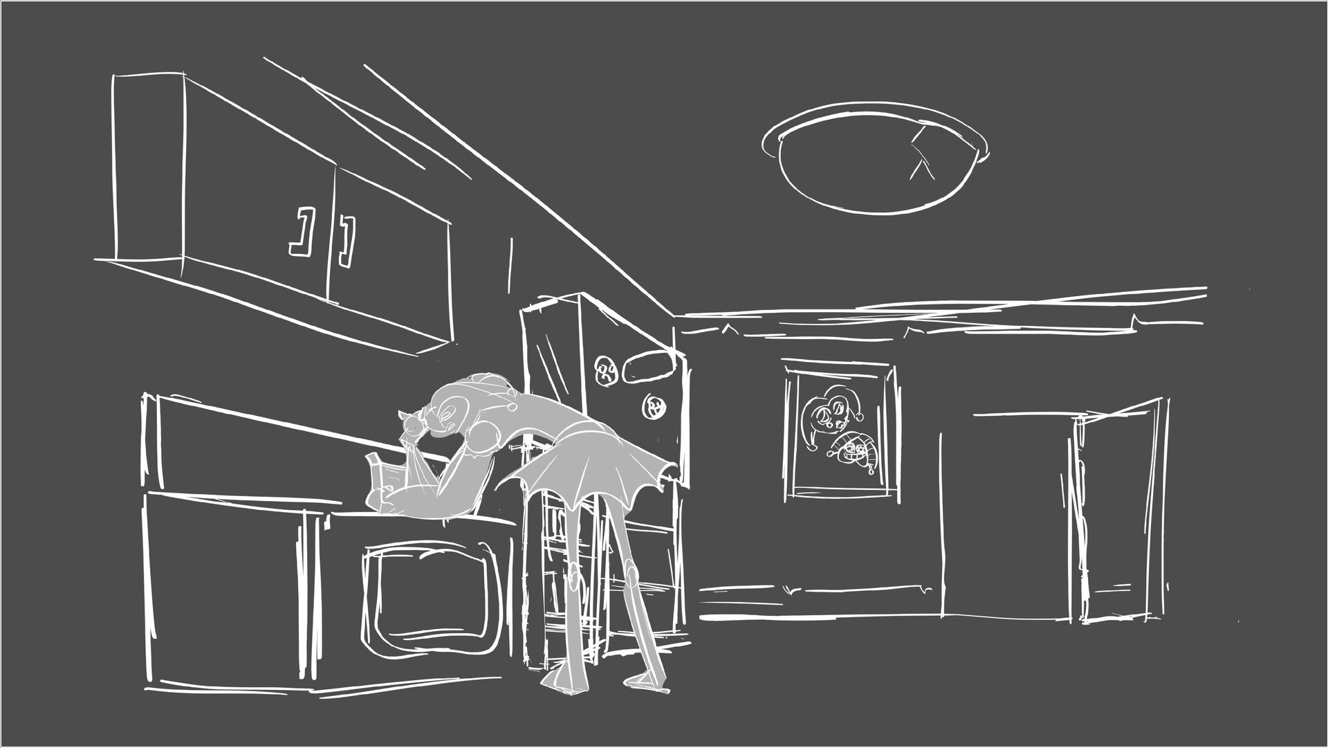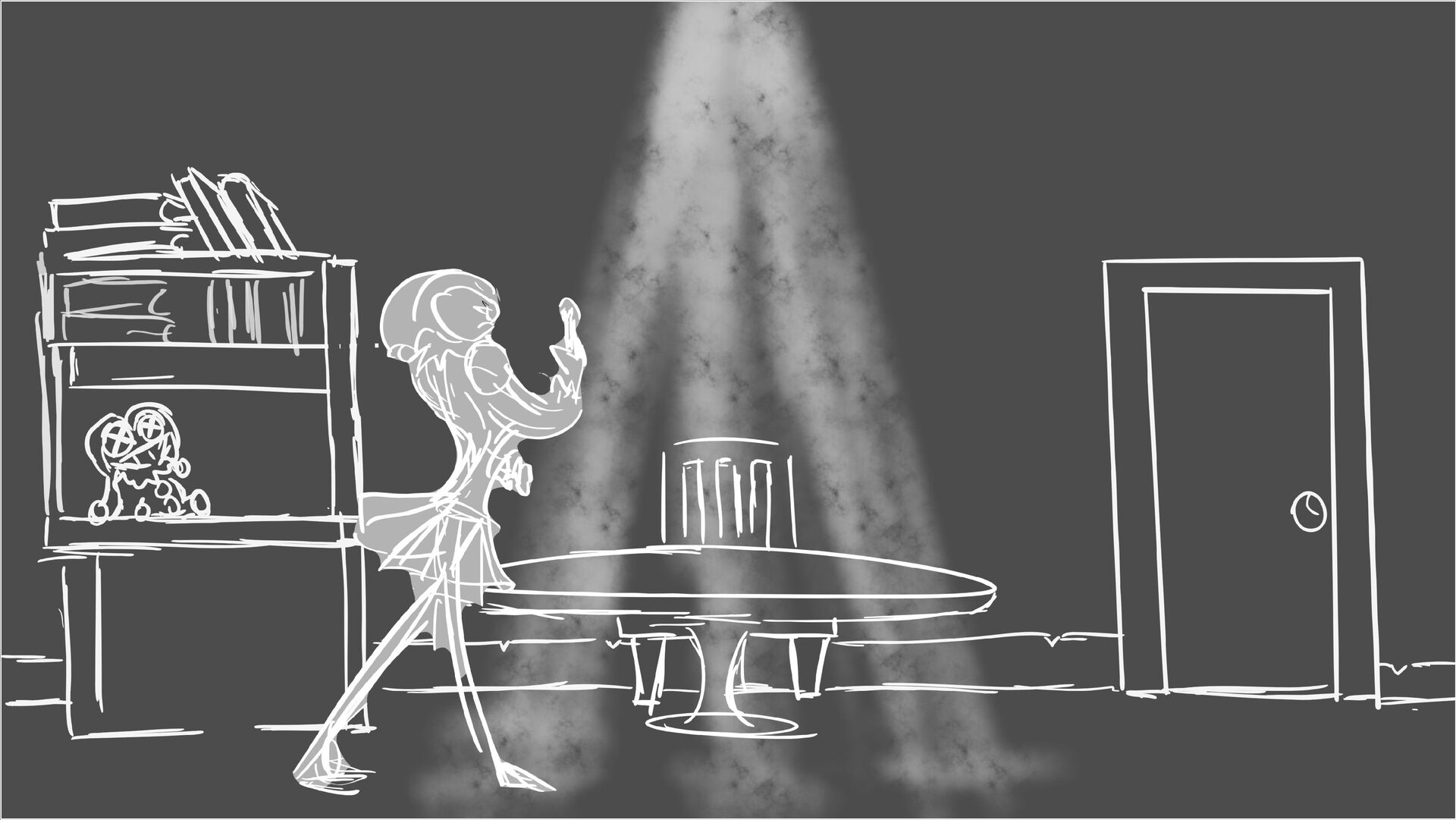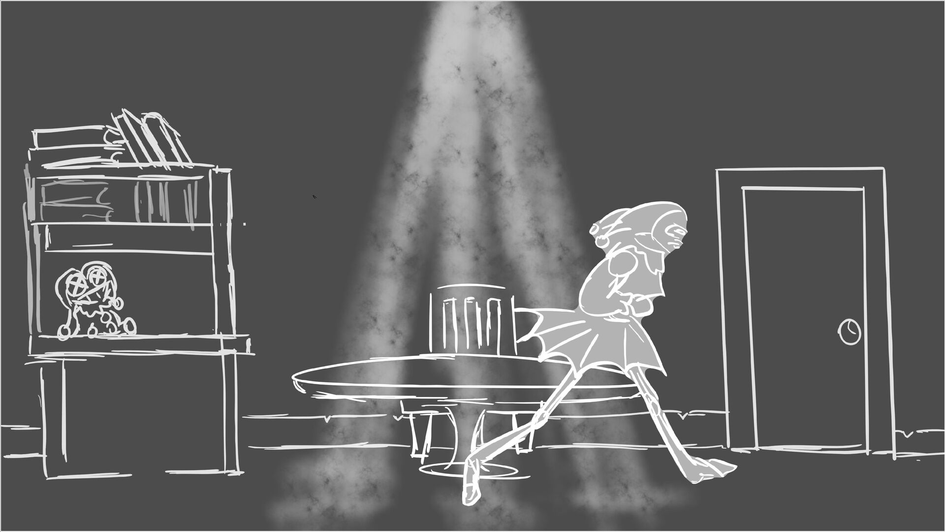 A mime made of shadows tries to eat breakfast but her upstairs neighbor ruins the moment.