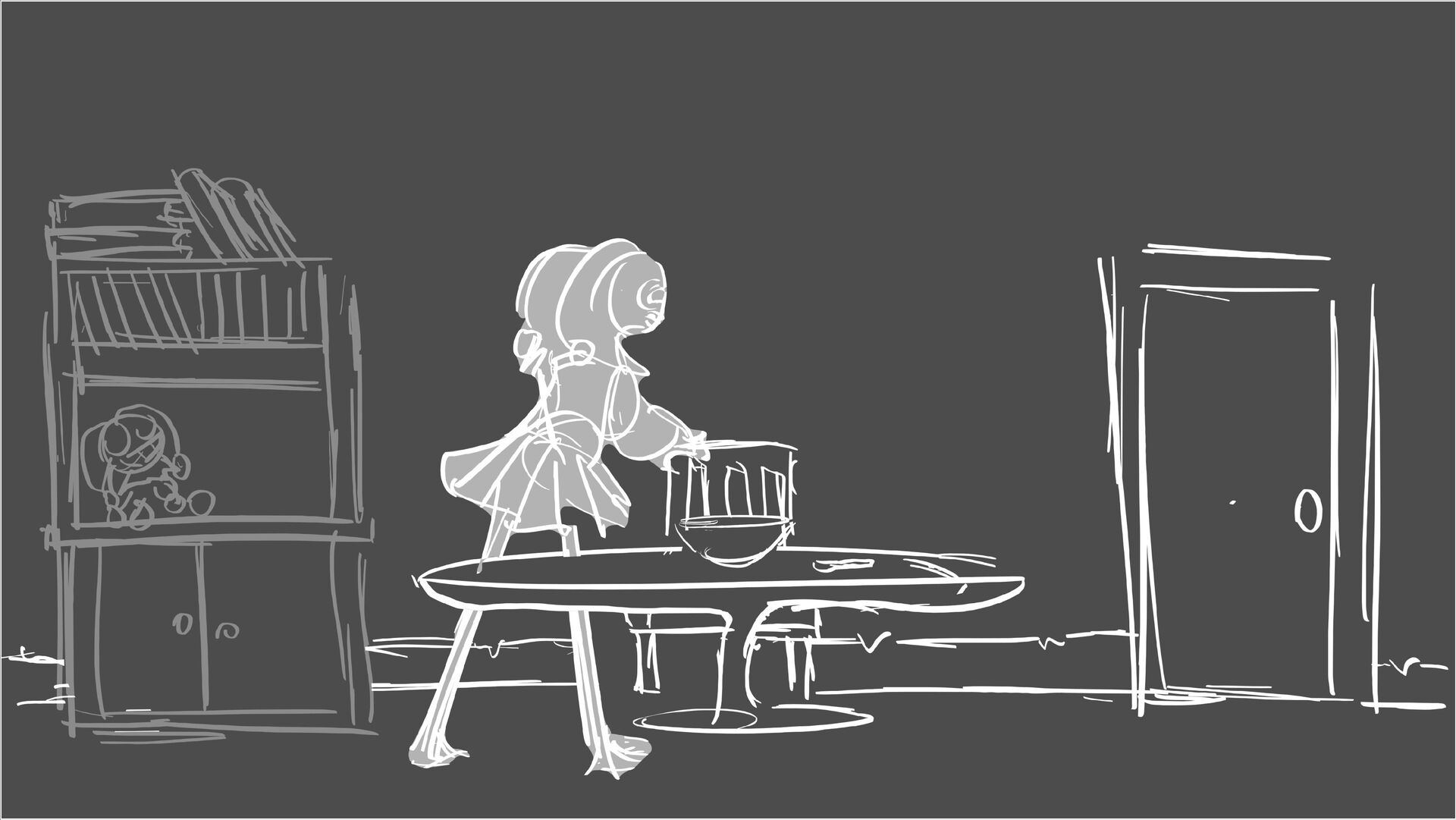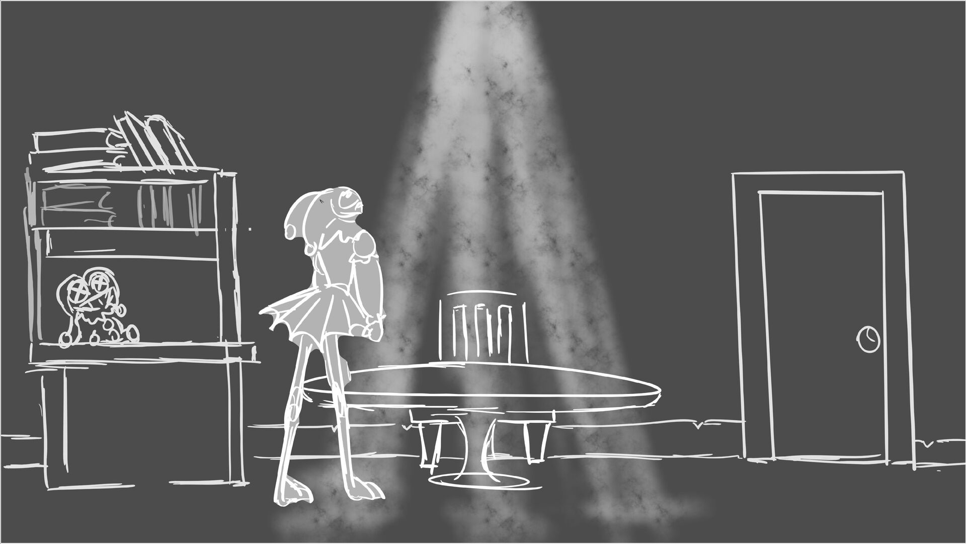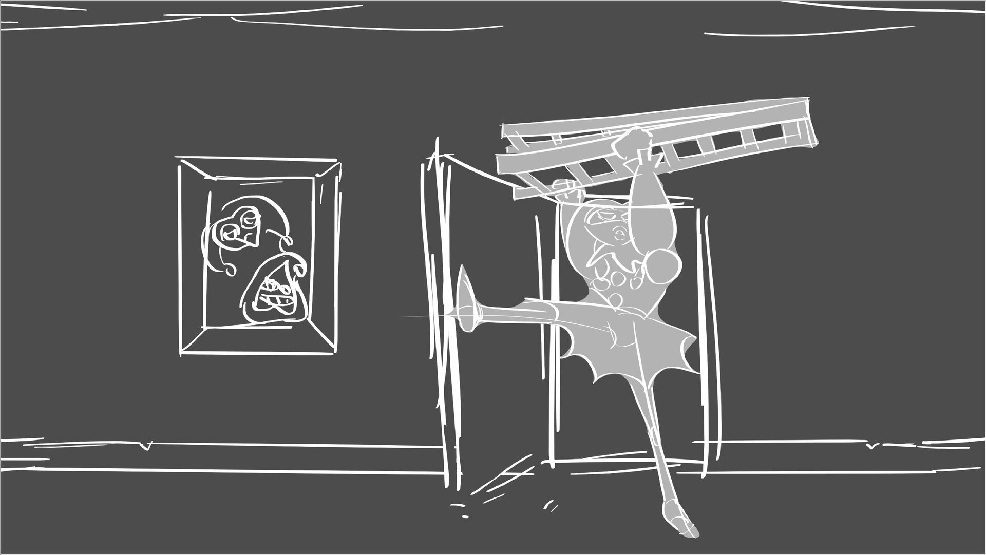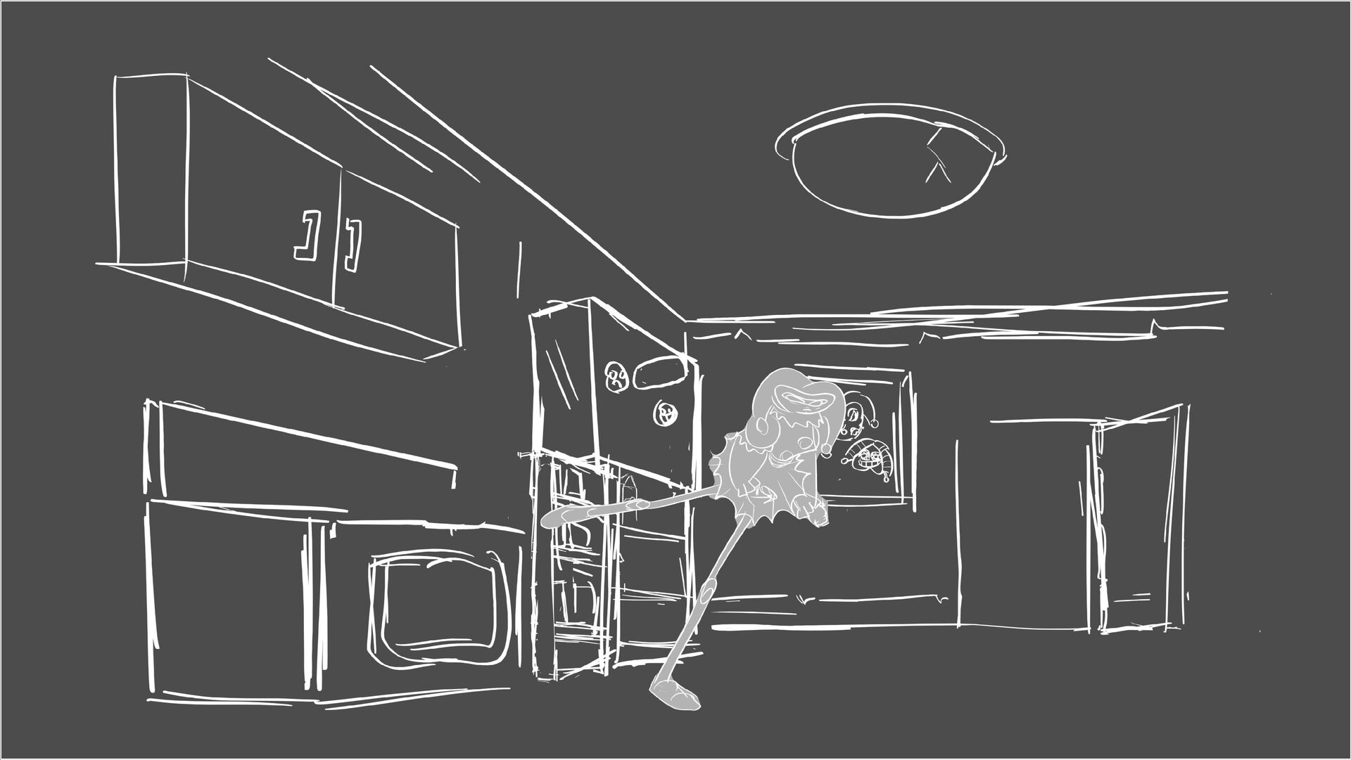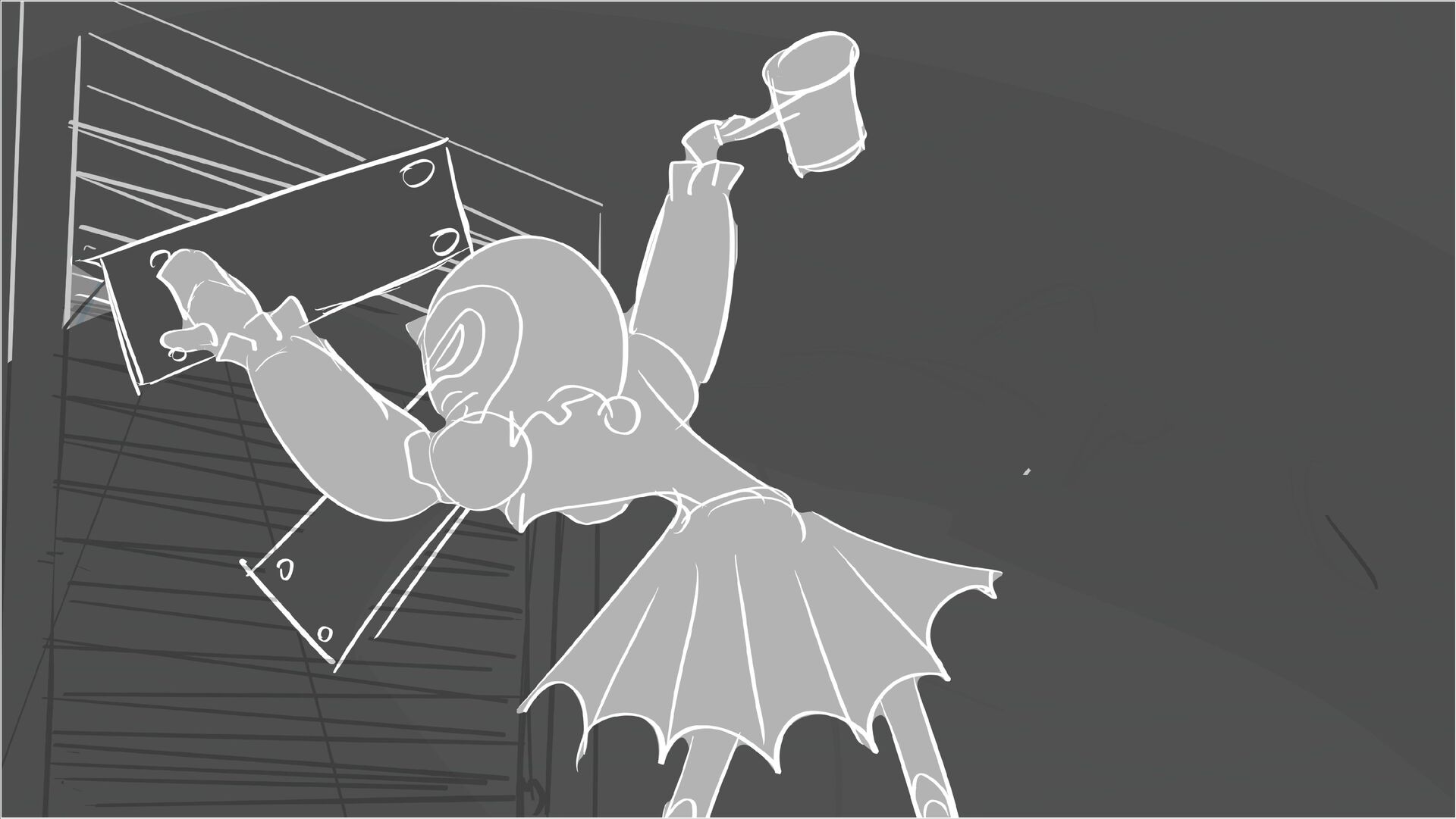 A mime made of shadows tries to eat breakfast but her upstairs neighbor ruins the moment.