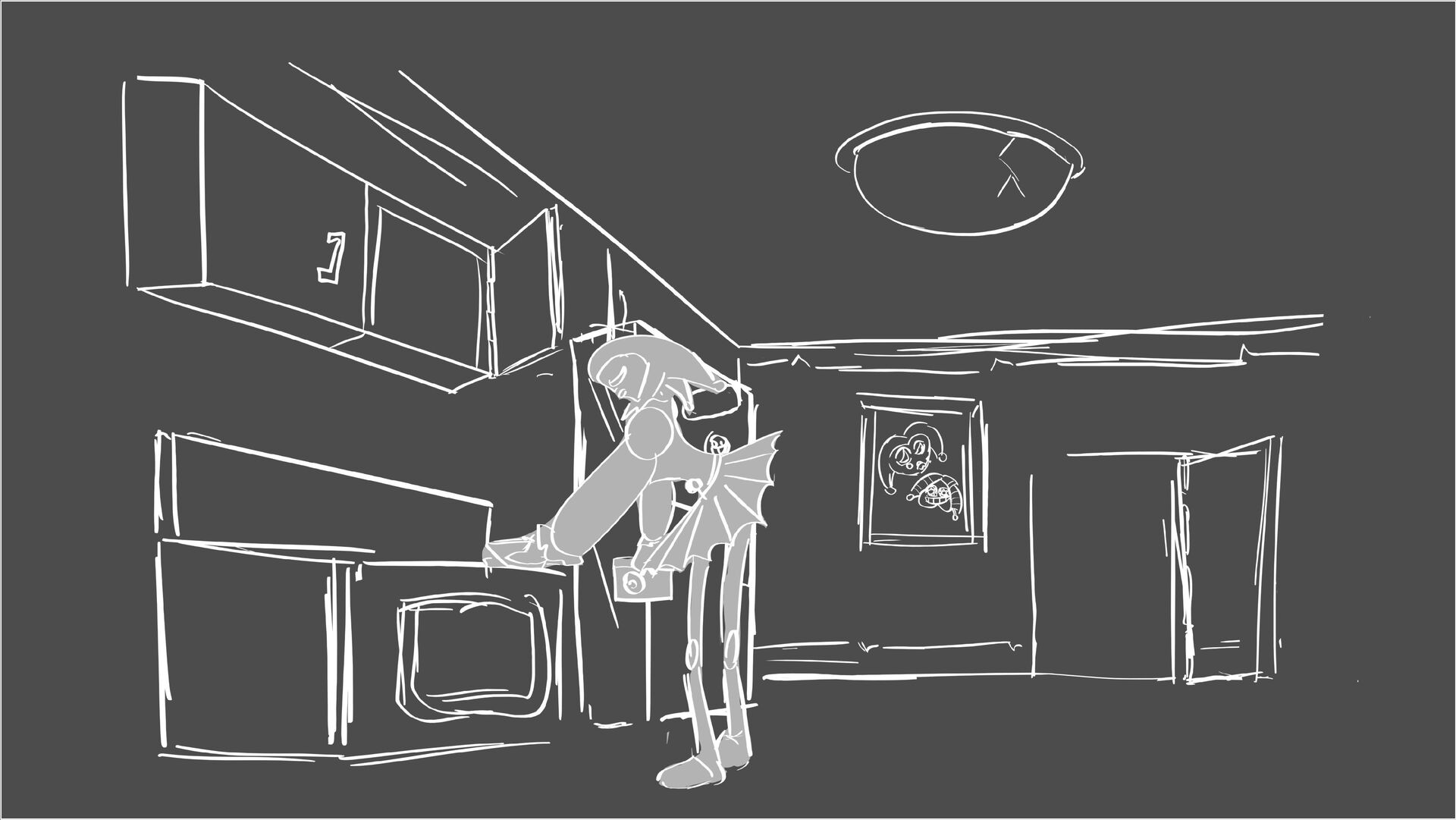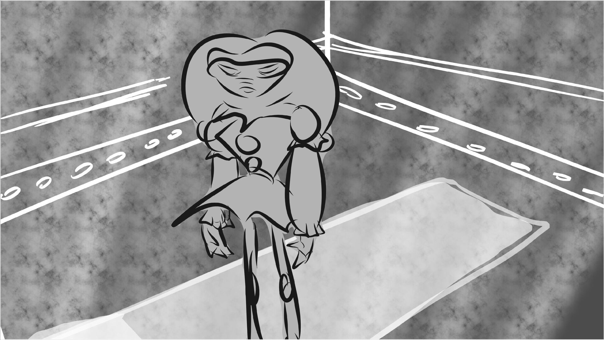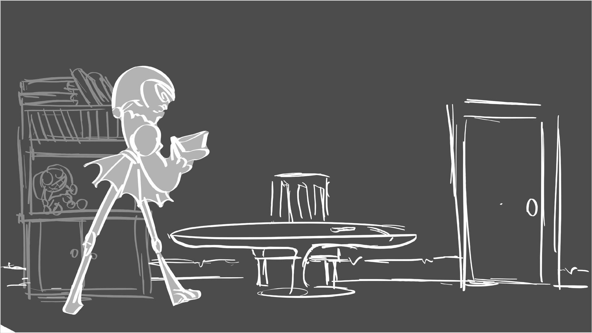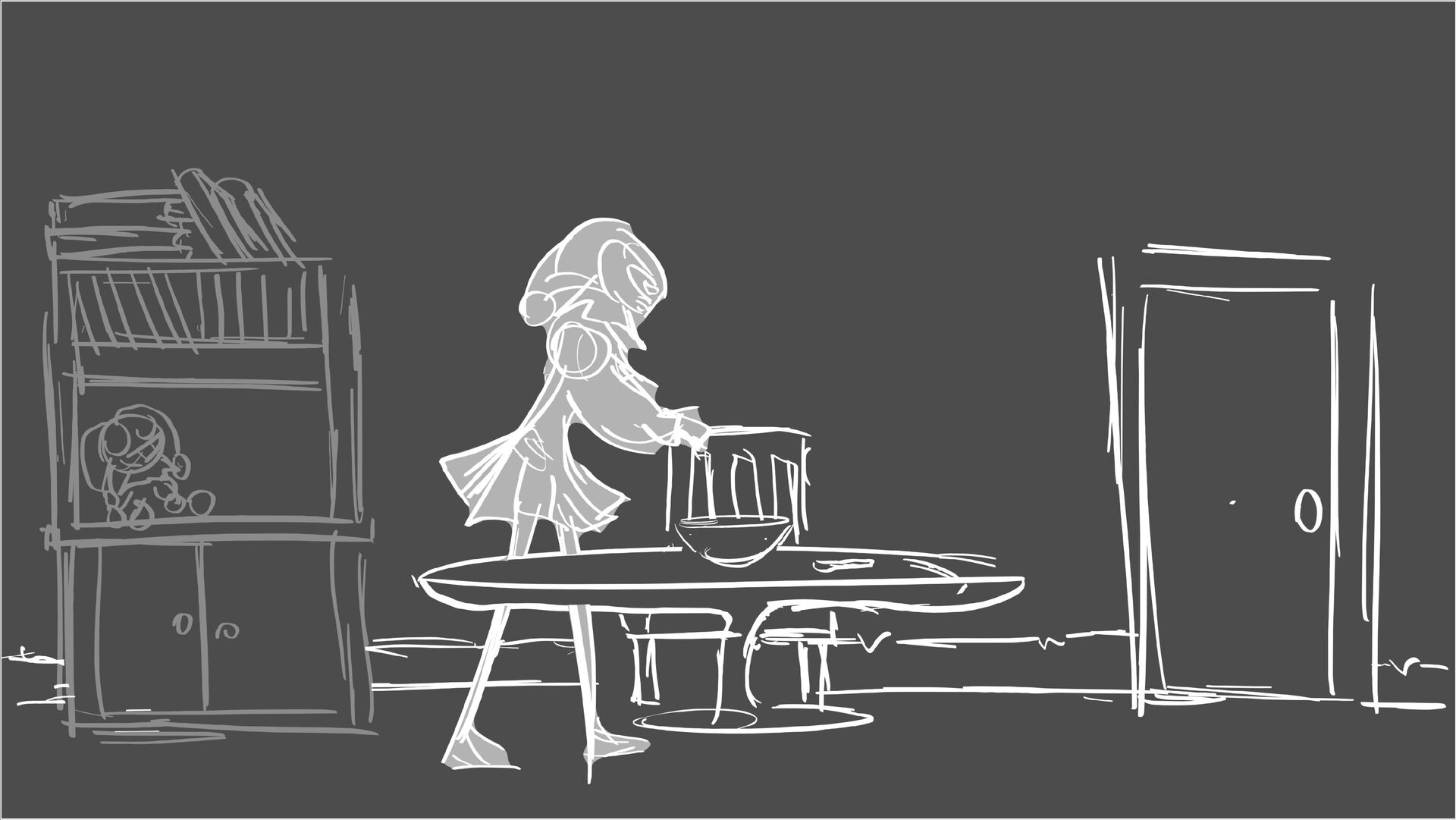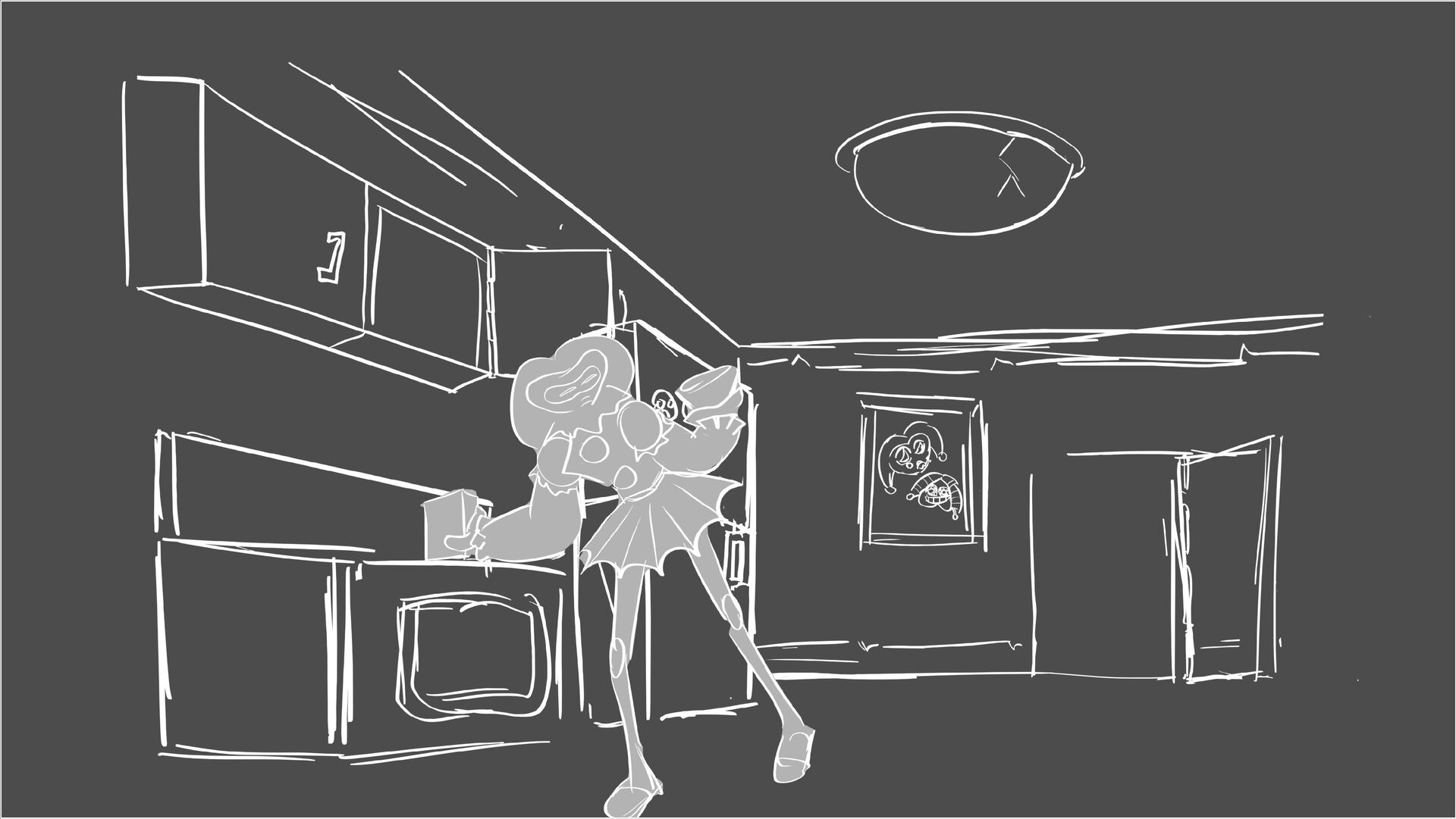 A mime made of shadows tries to eat breakfast but her upstairs neighbor ruins the moment.