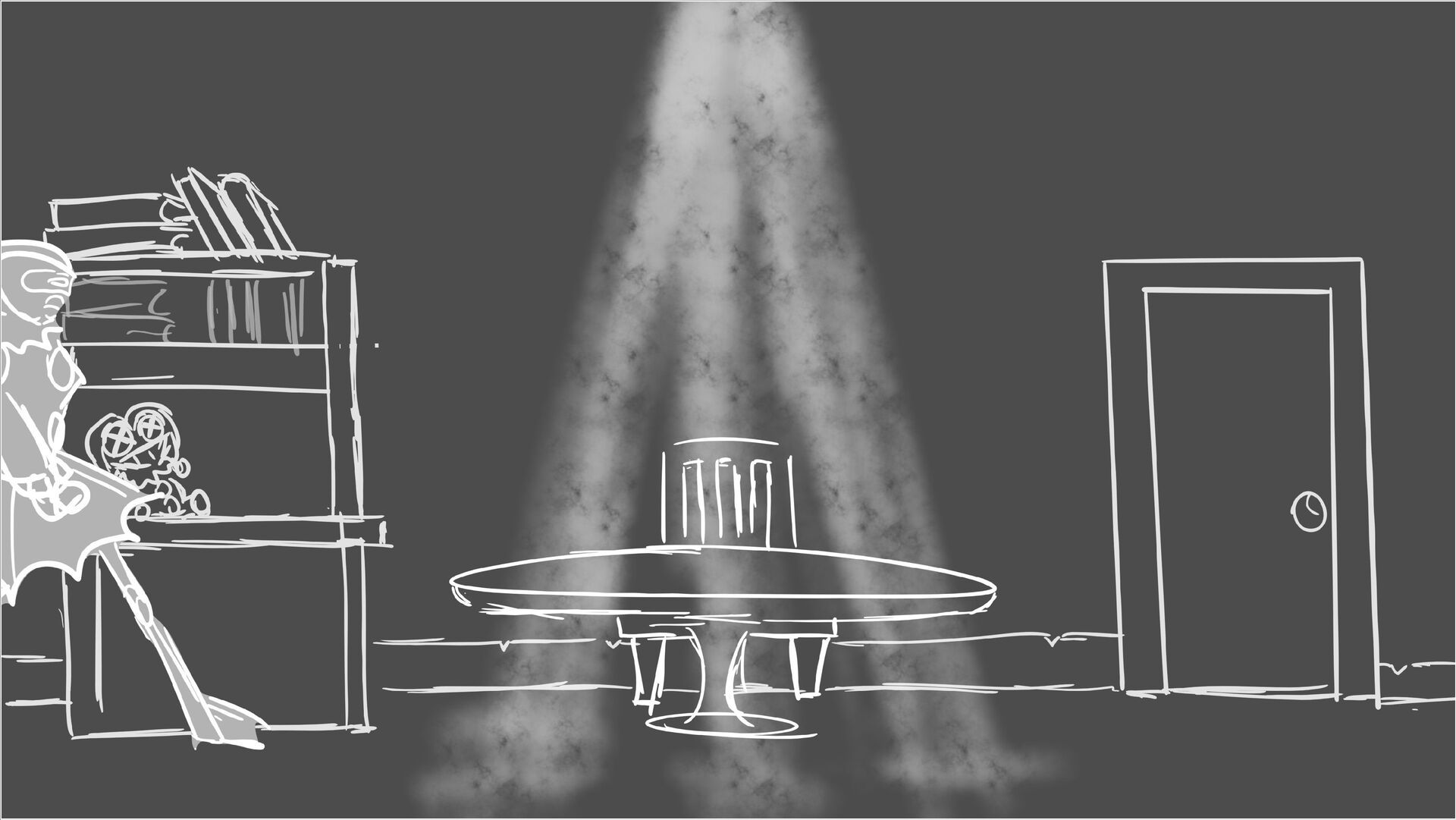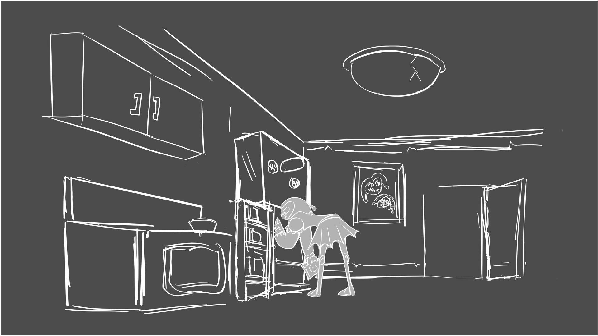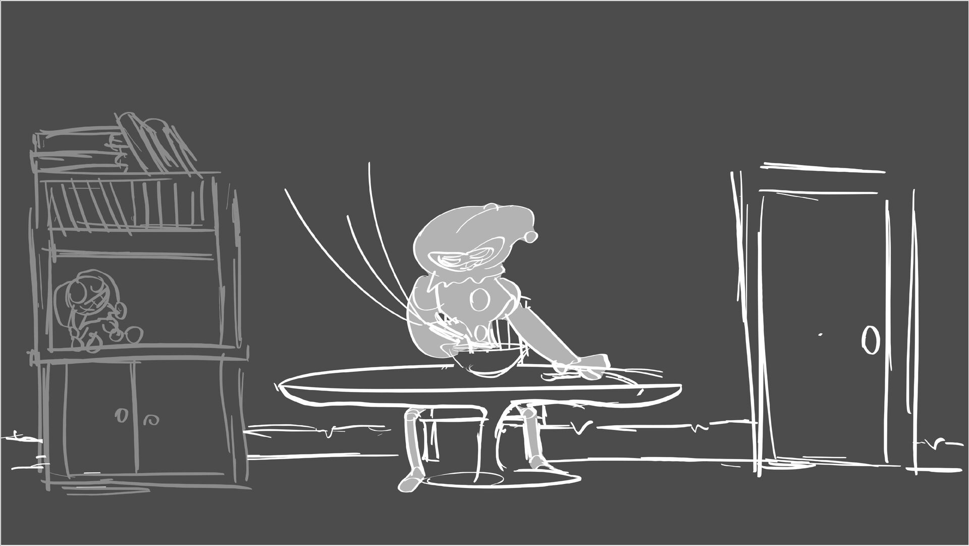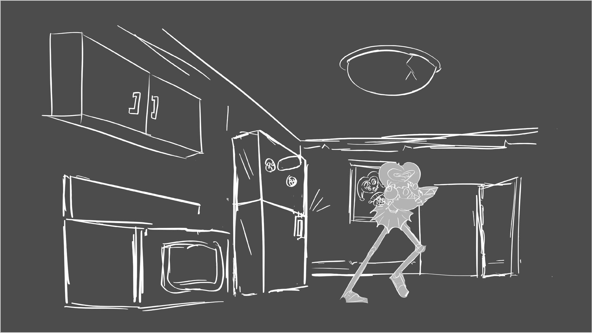 A mime made of shadows tries to eat breakfast but her upstairs neighbor ruins the moment.