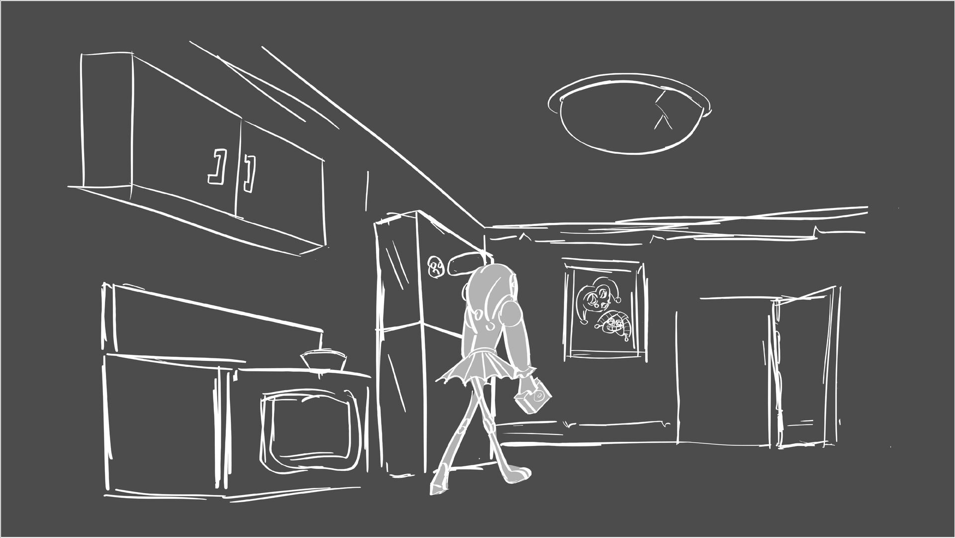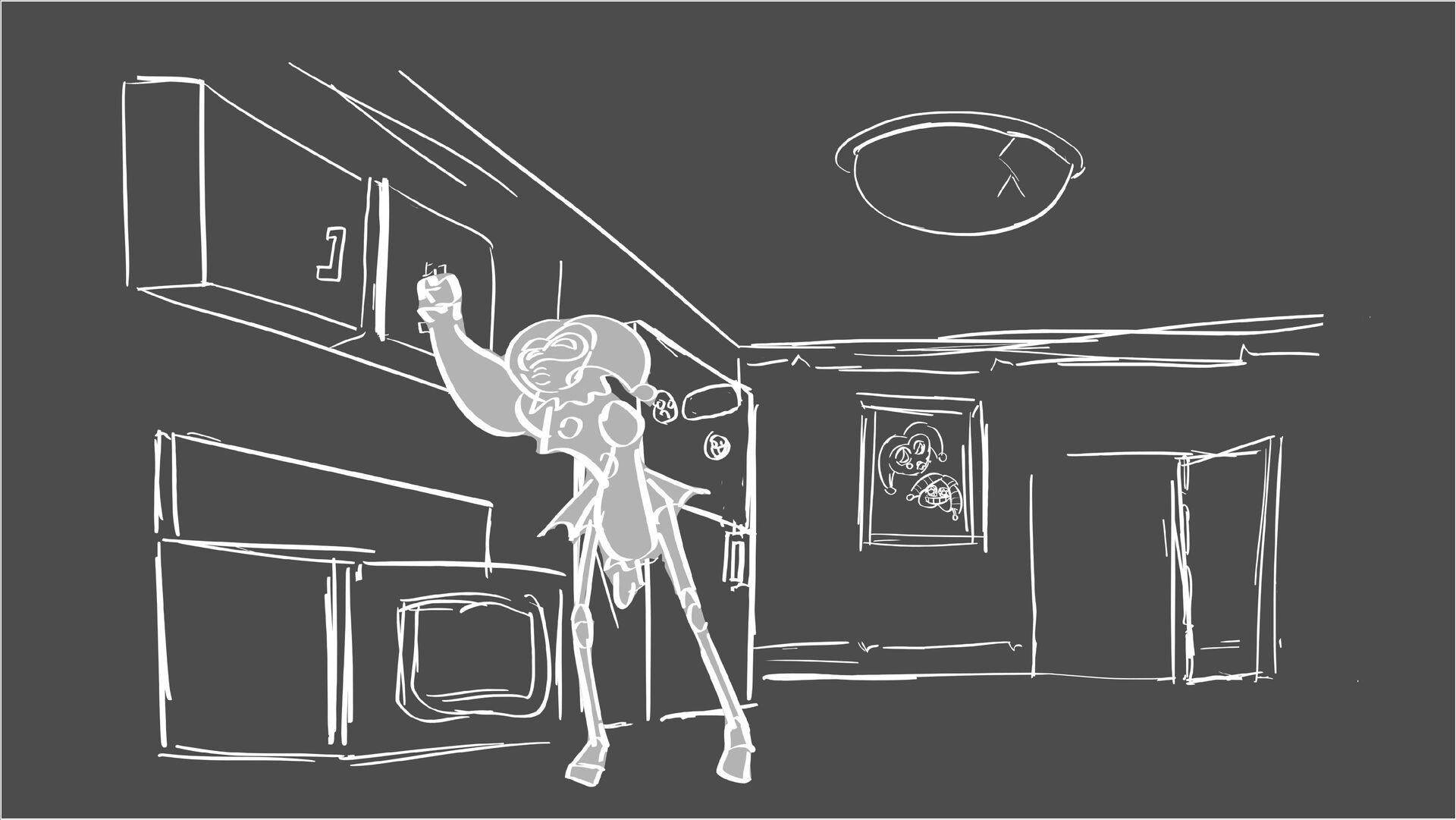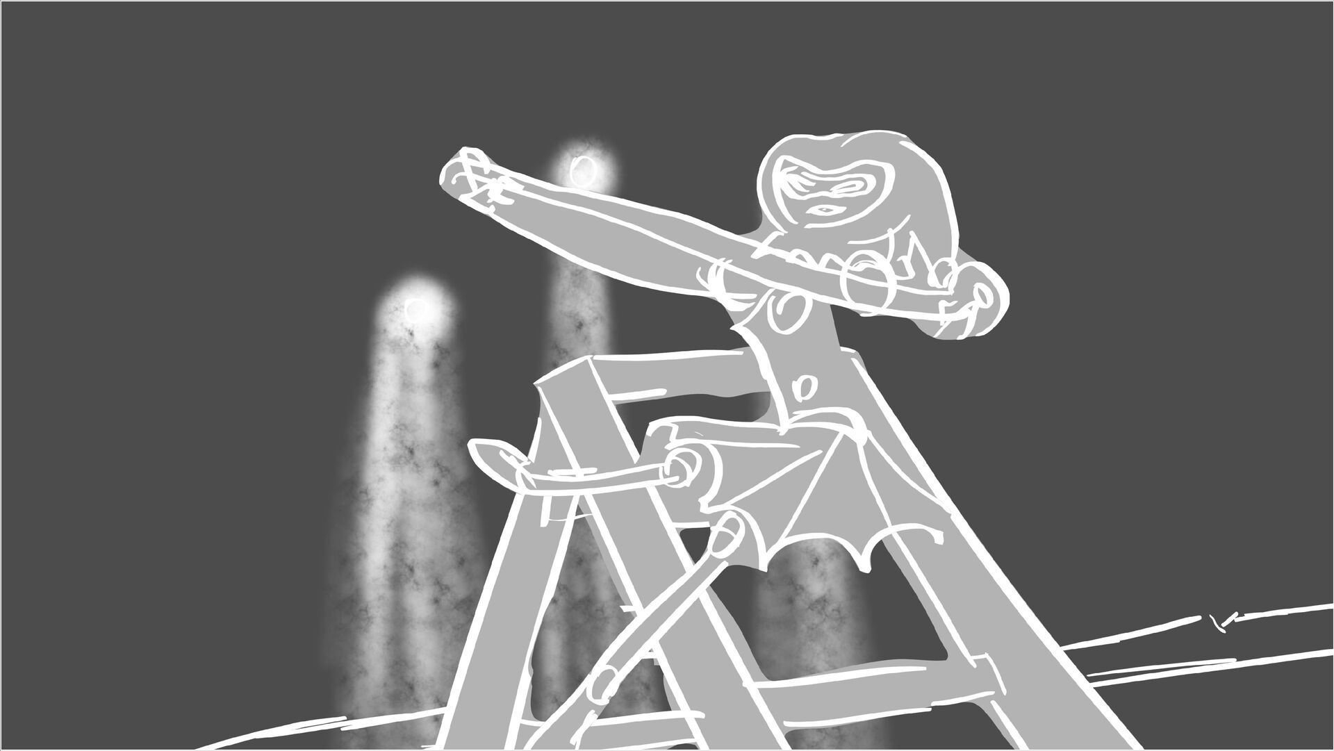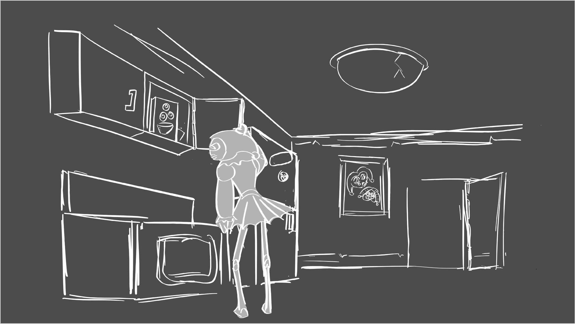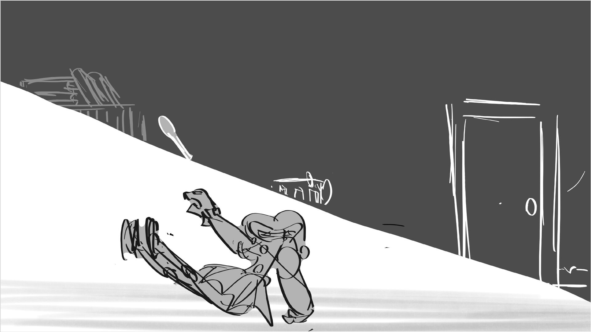A mime made of shadows tries to eat breakfast but her upstairs neighbor ruins the moment.