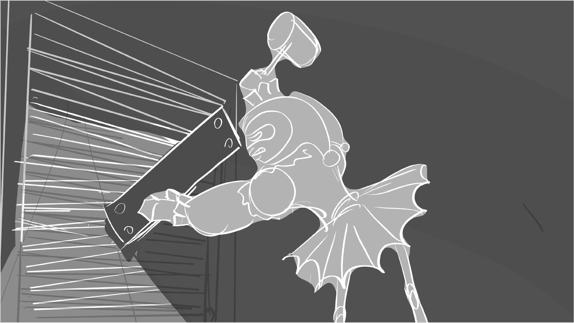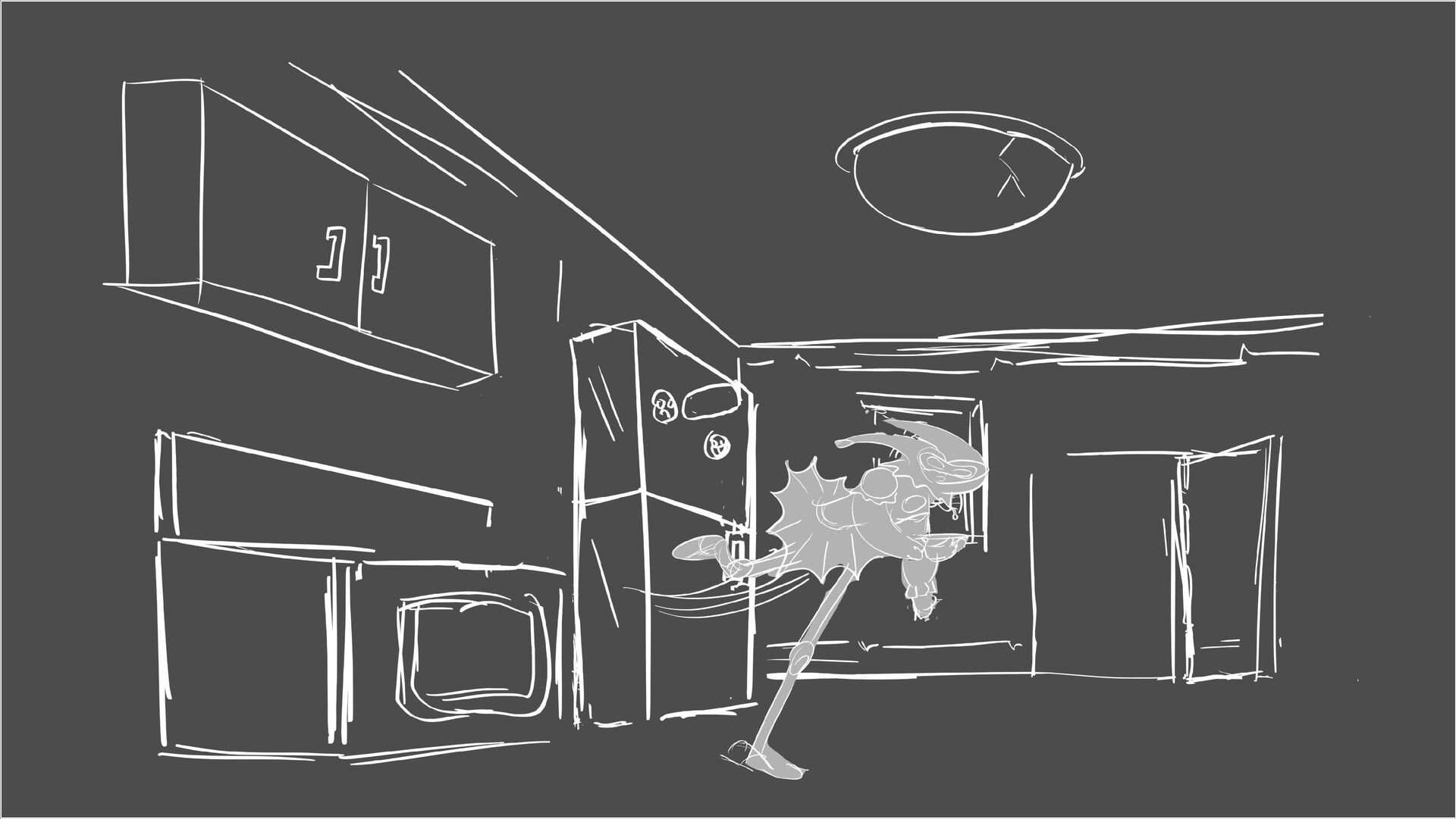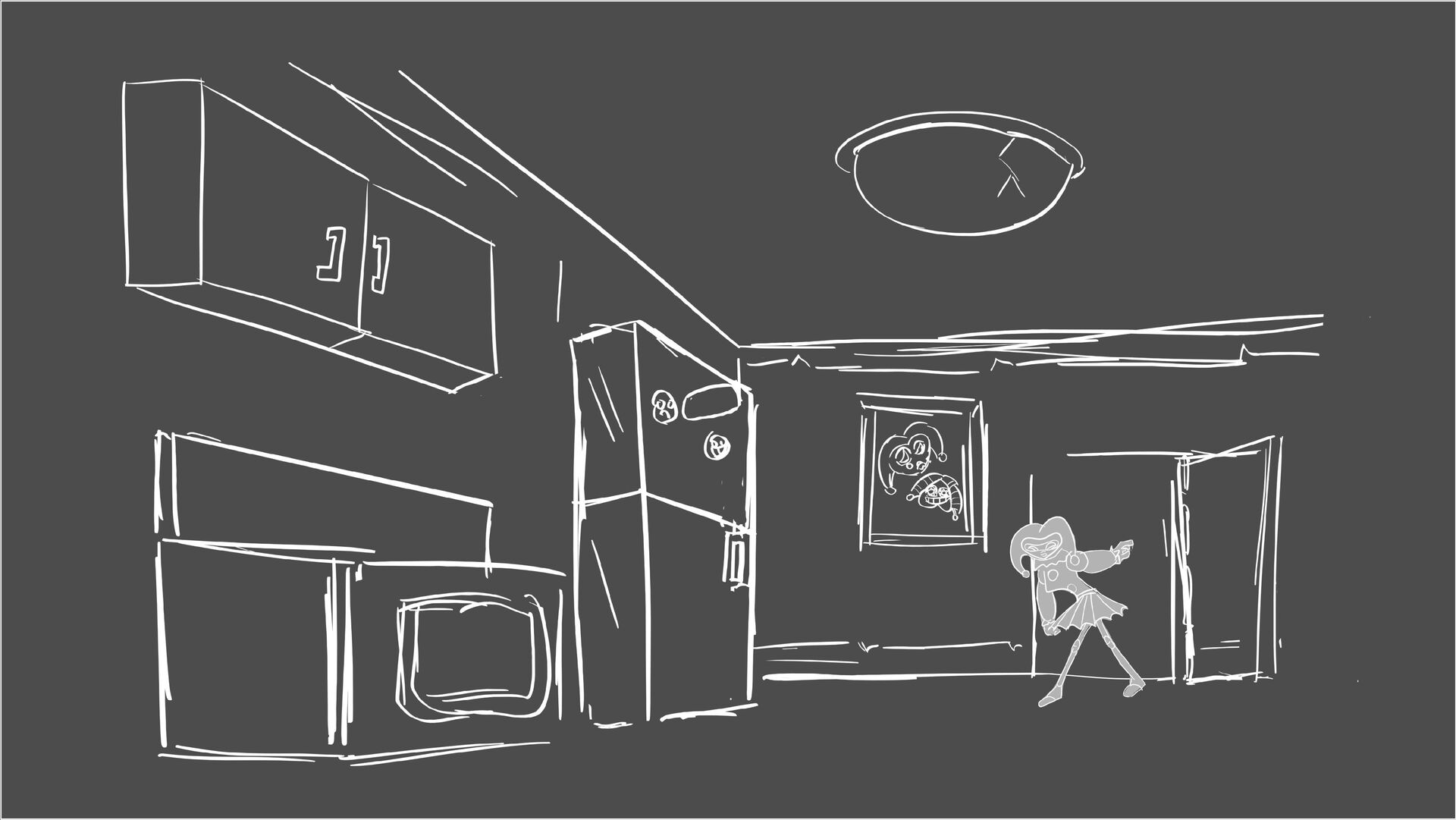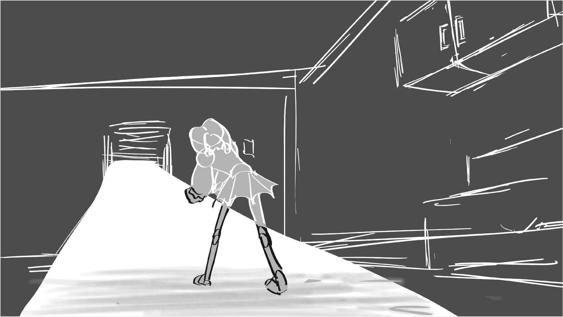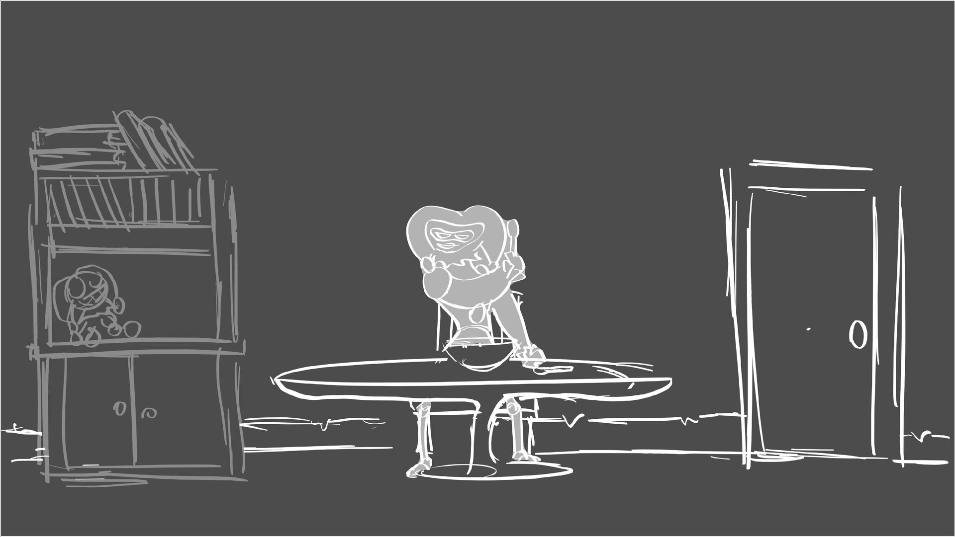 A mime made of shadows tries to eat breakfast but her upstairs neighbor ruins the moment.