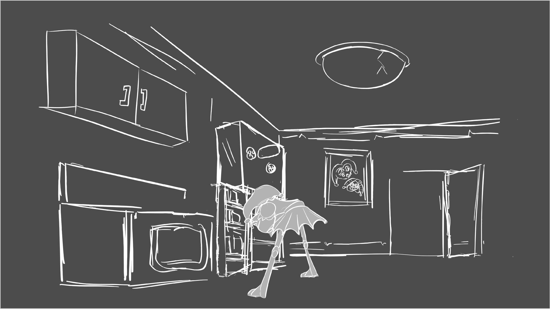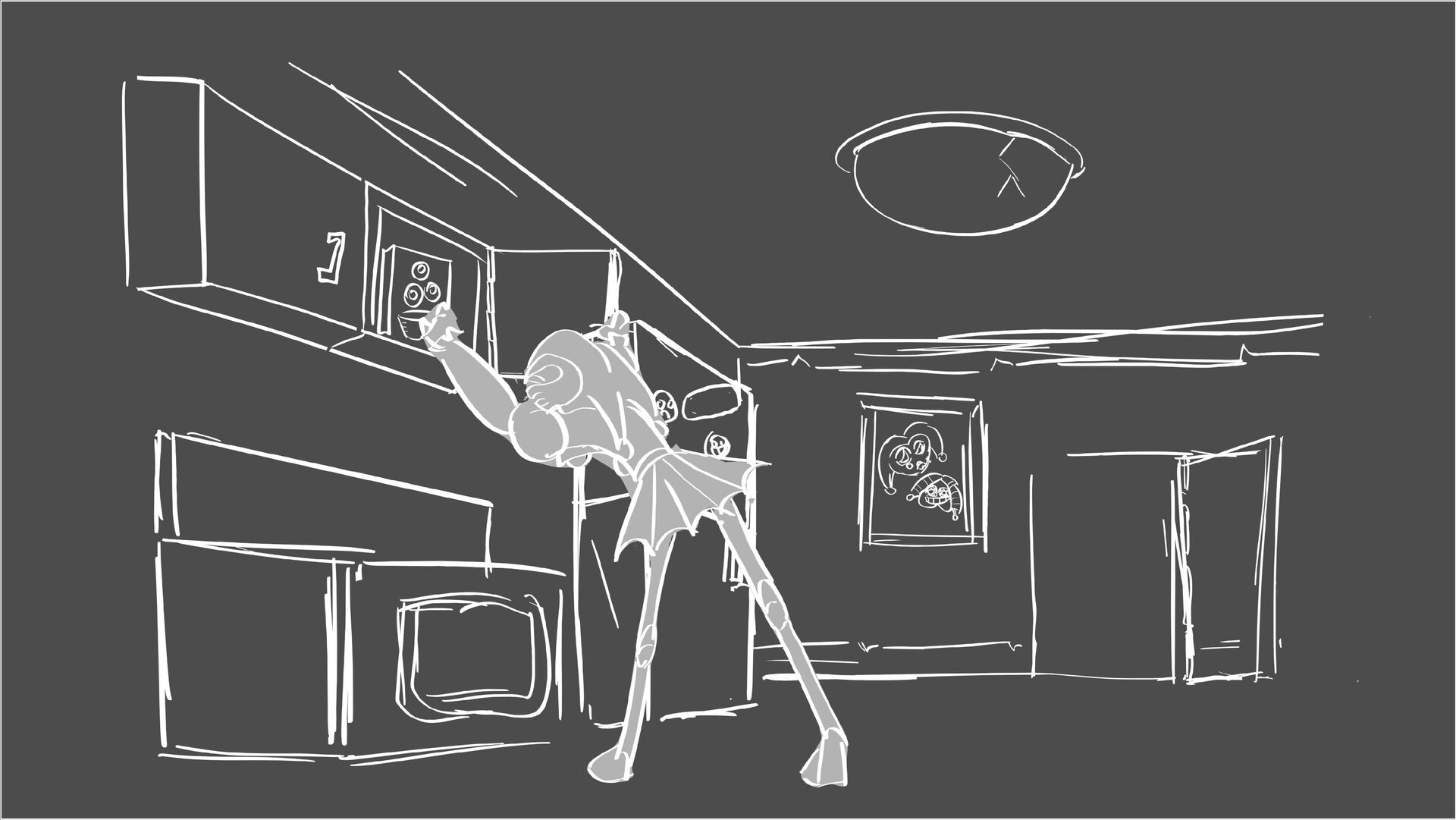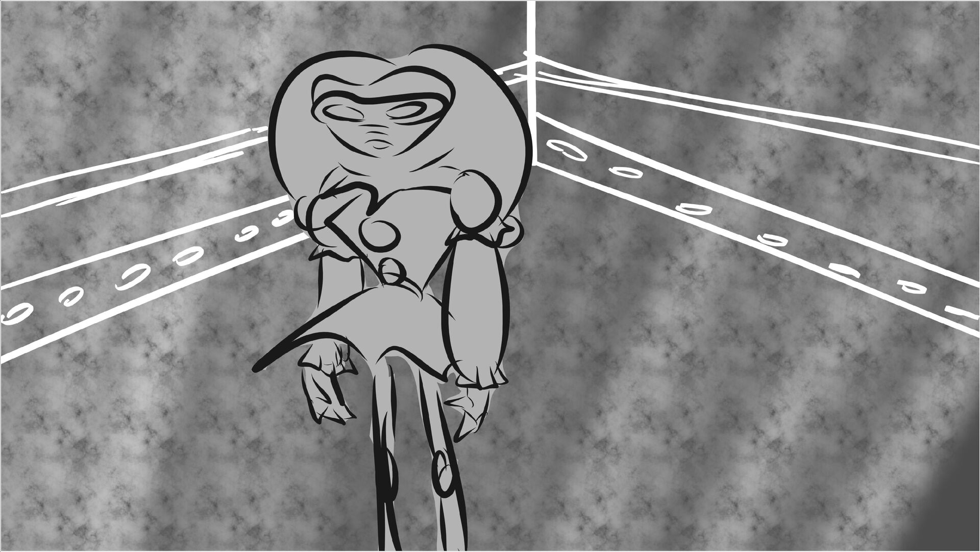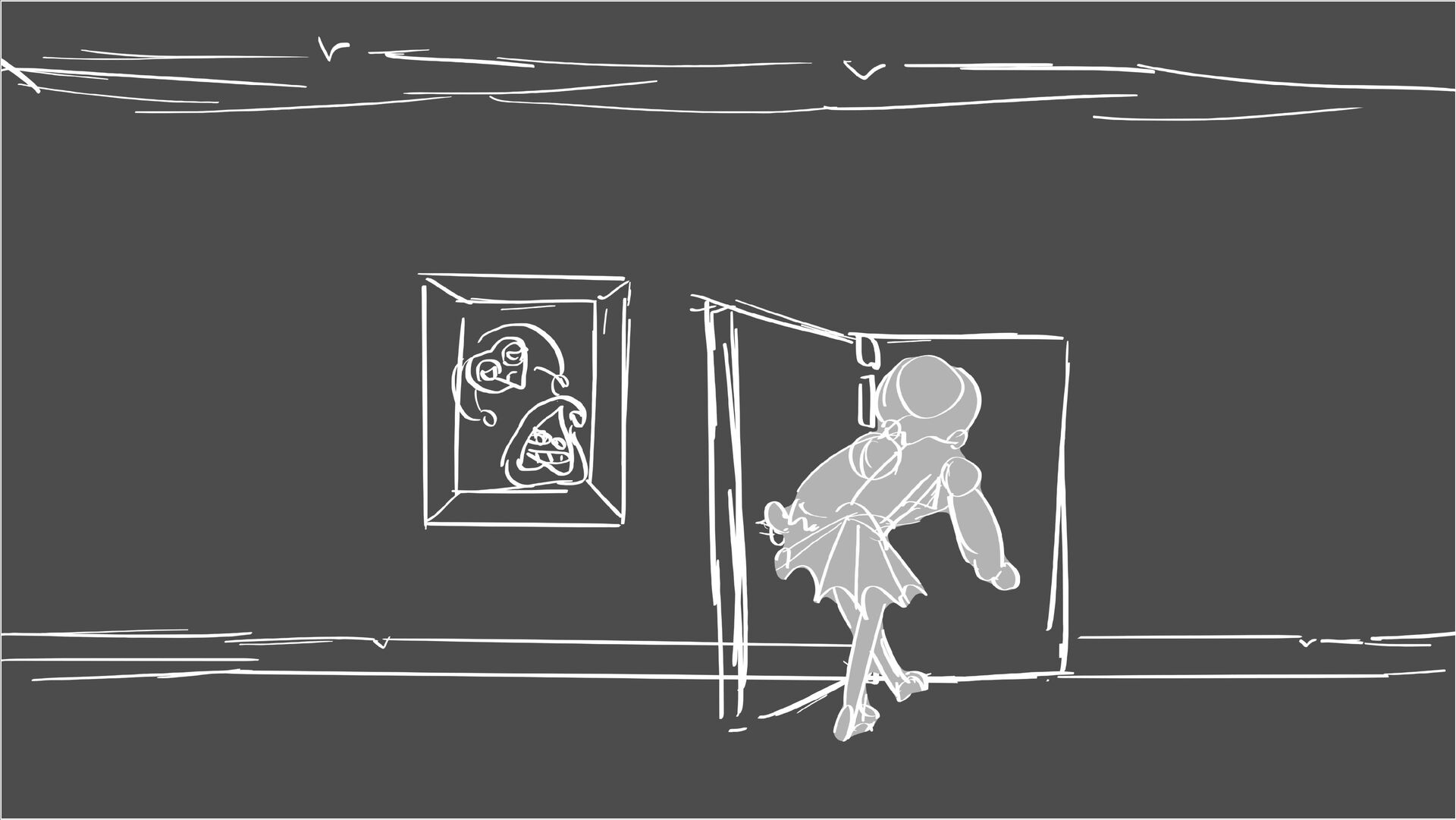 A mime made of shadows tries to eat breakfast but her upstairs neighbor ruins the moment.