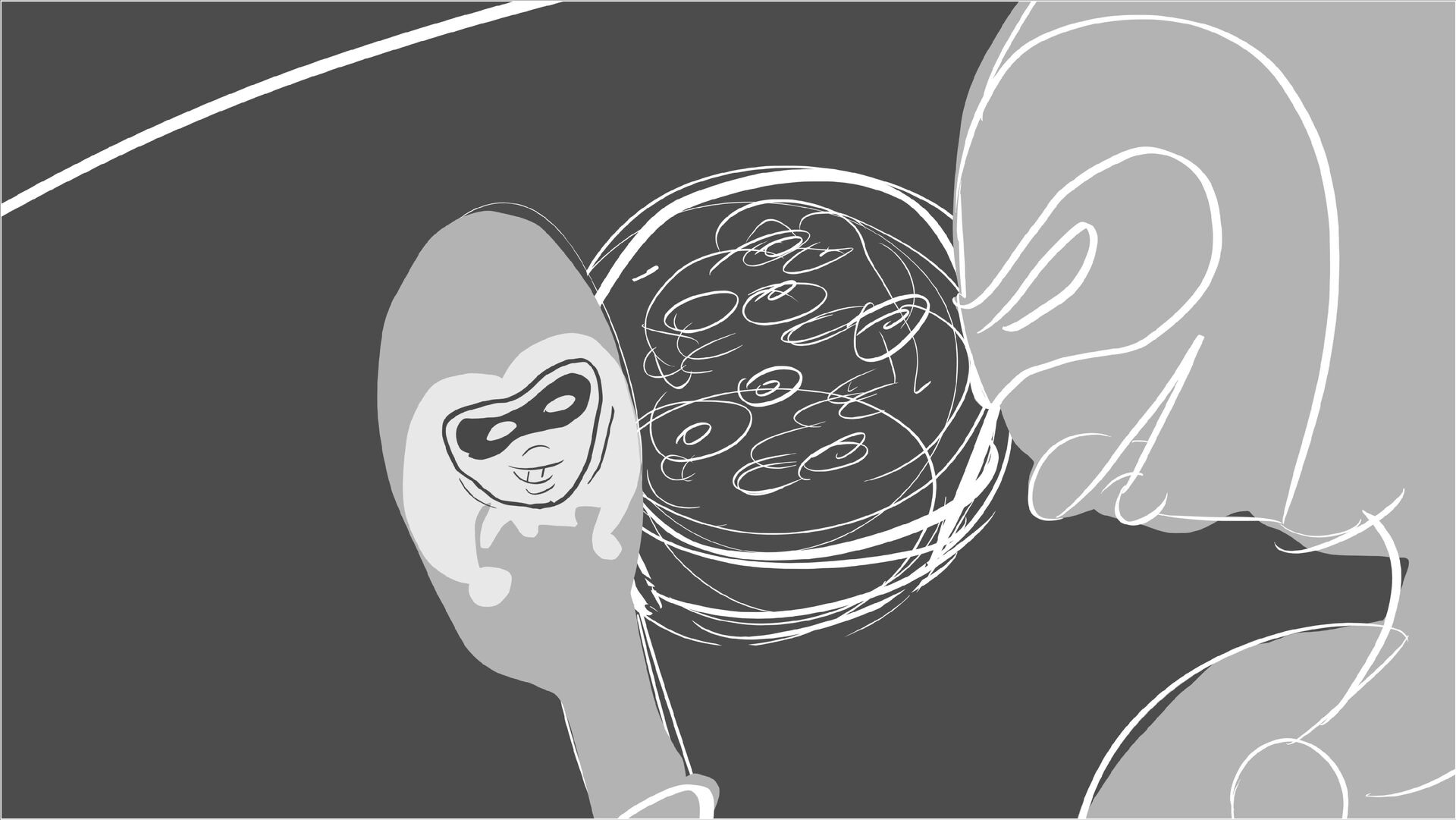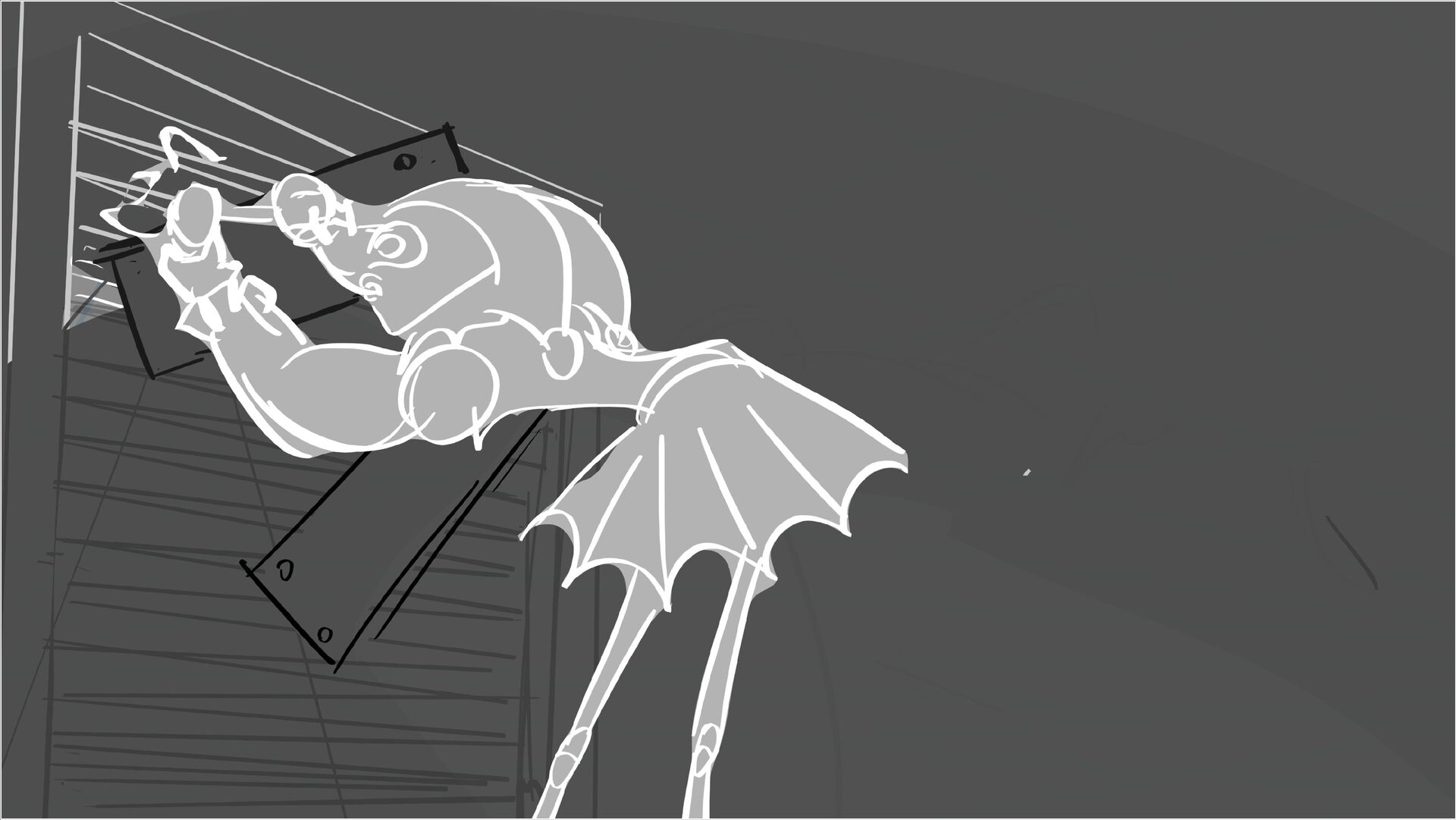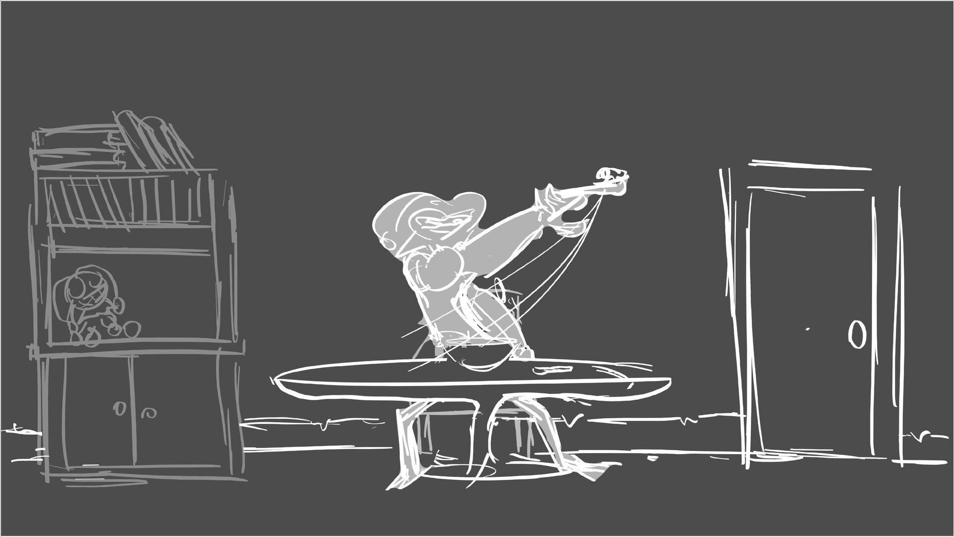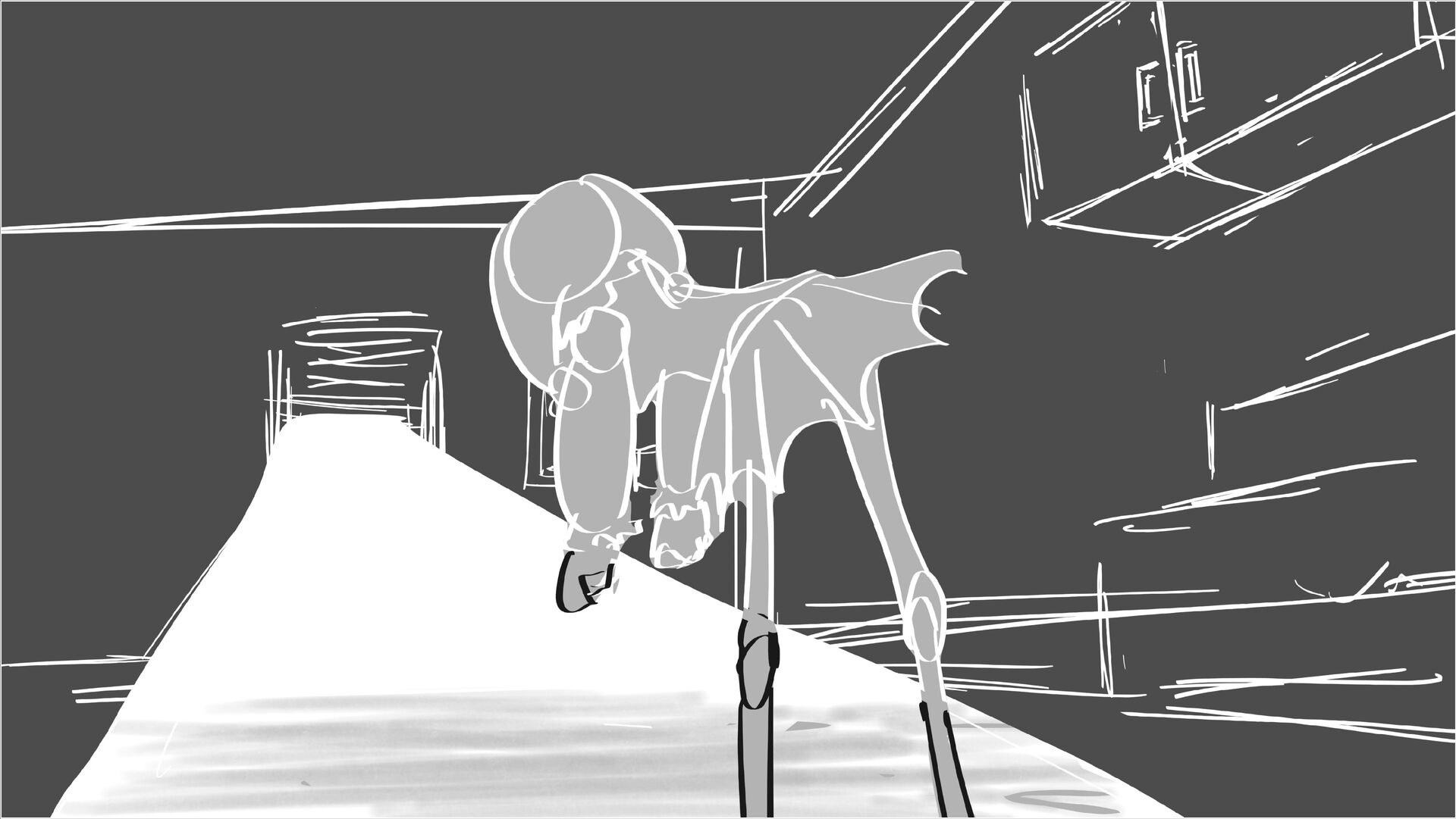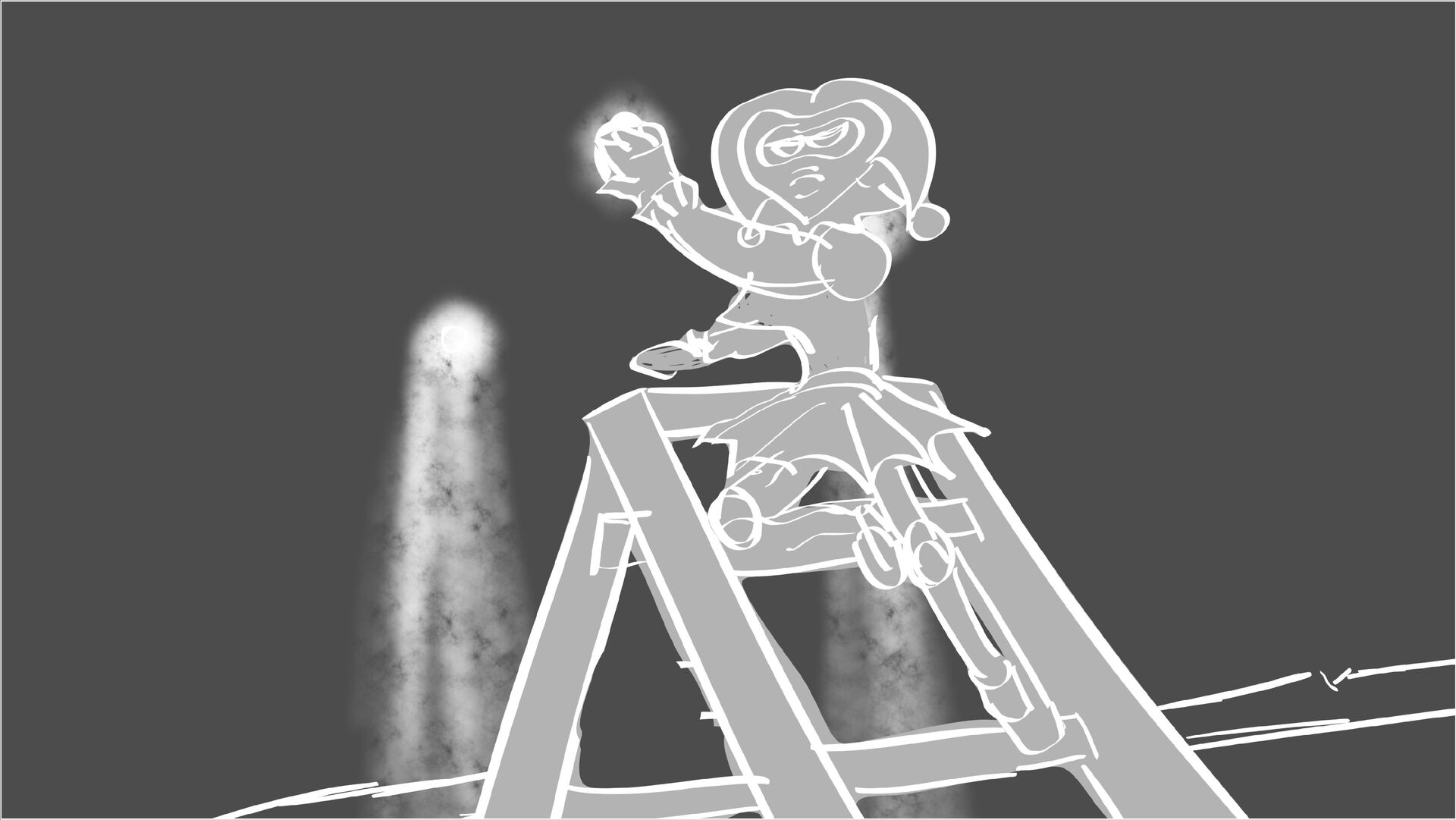 A mime made of shadows tries to eat breakfast but her upstairs neighbor ruins the moment.