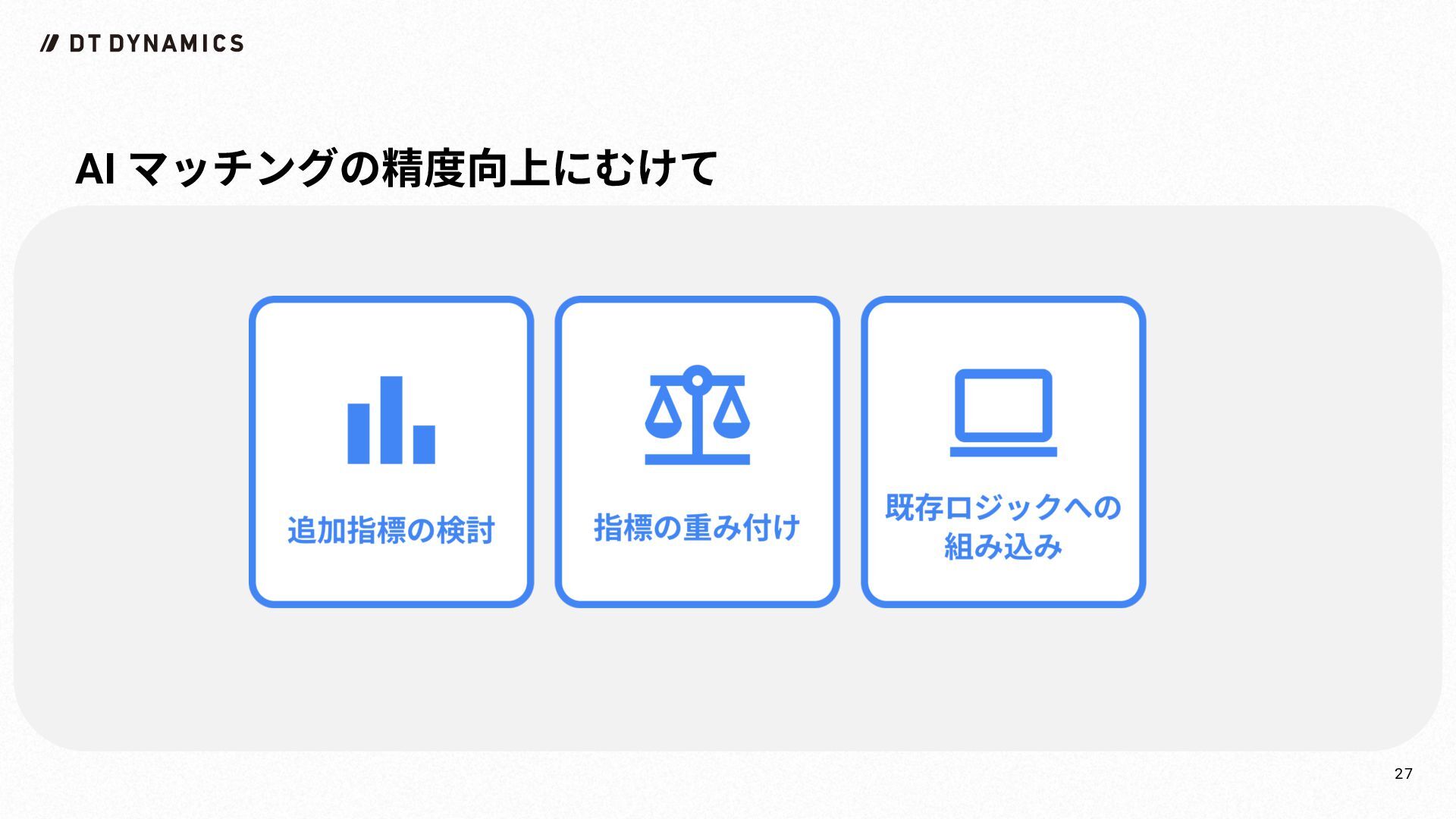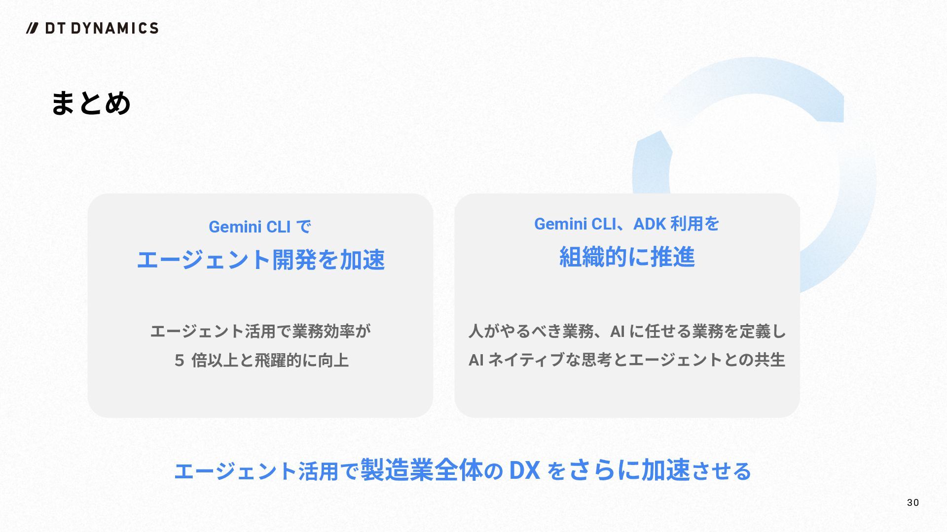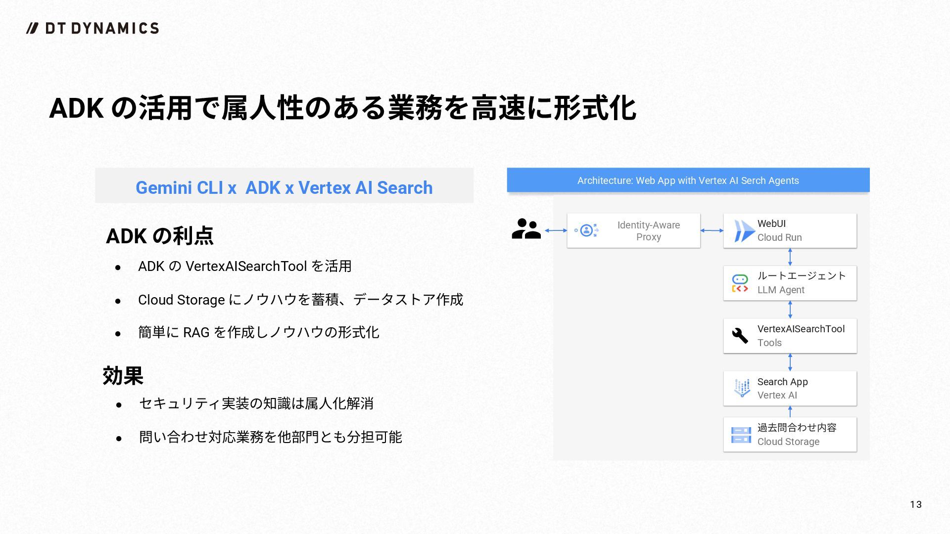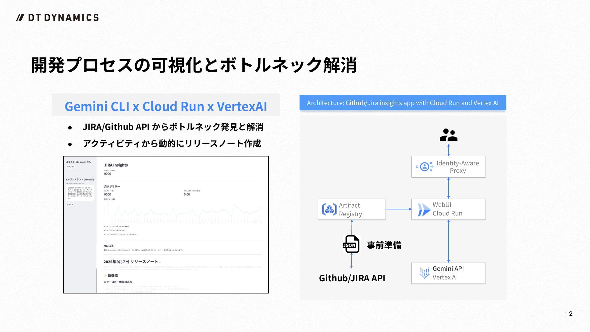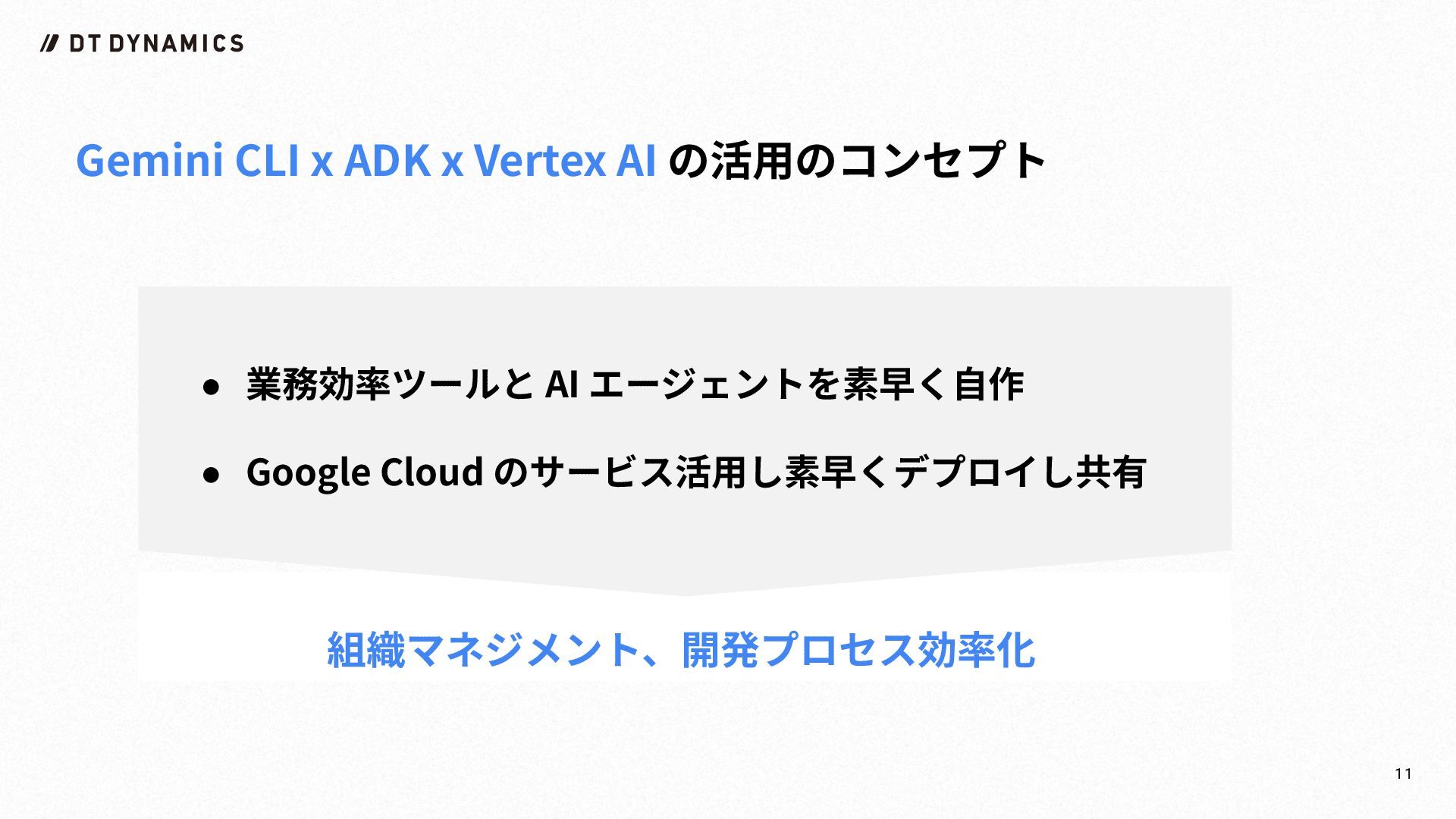 Gemini CLI、Vertex AI、ADK を活用したAIエージェントの導入により、開発生産性は大幅に向上し、属人化していた業務の形式化や、データドリブンな意思決定の高速化を実現しています。さらに、meviyマーケットプレイスにおけるAIマッチングや分析支援など、事業価値に直結するAI活用の実践例も紹介します。