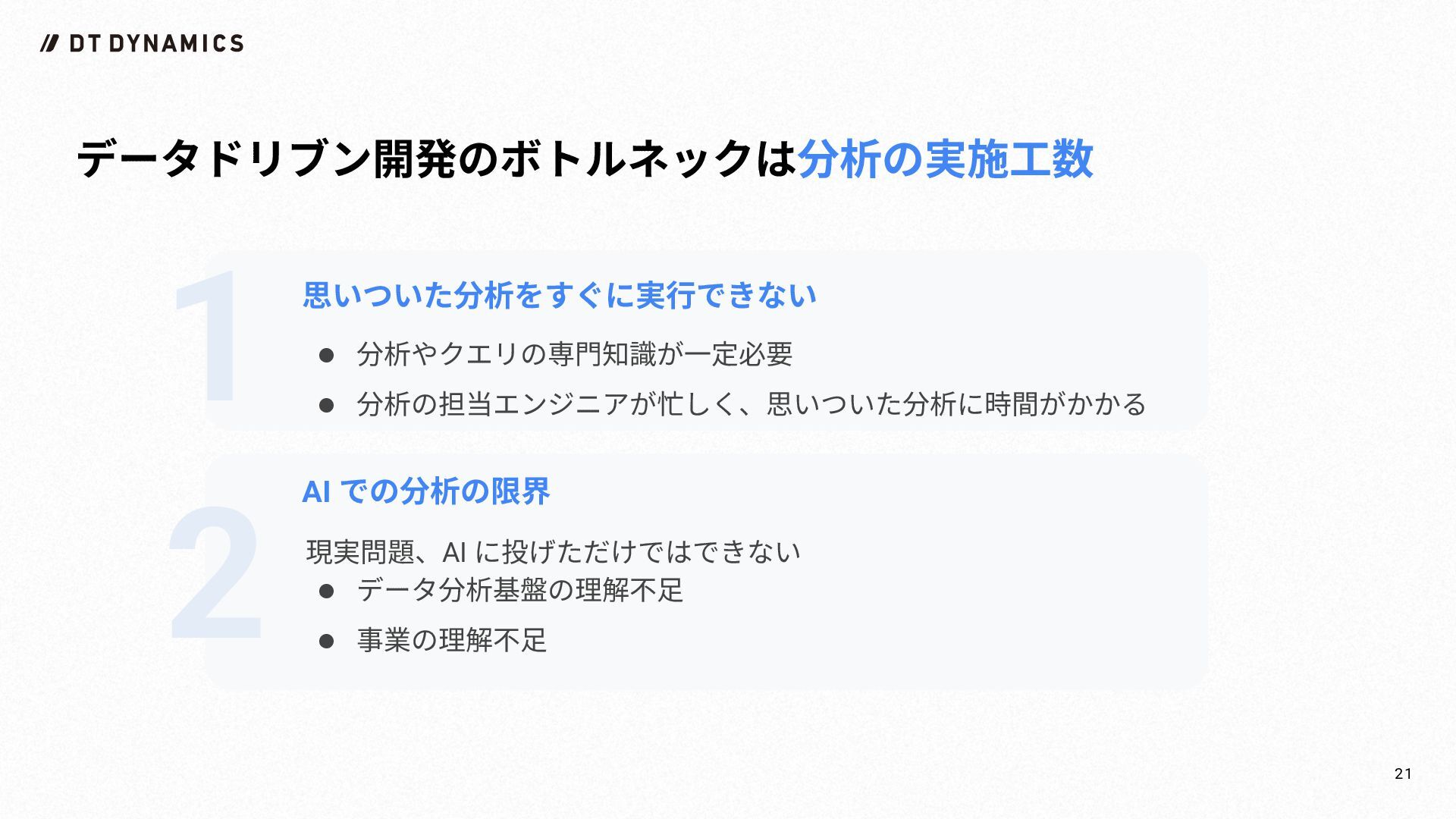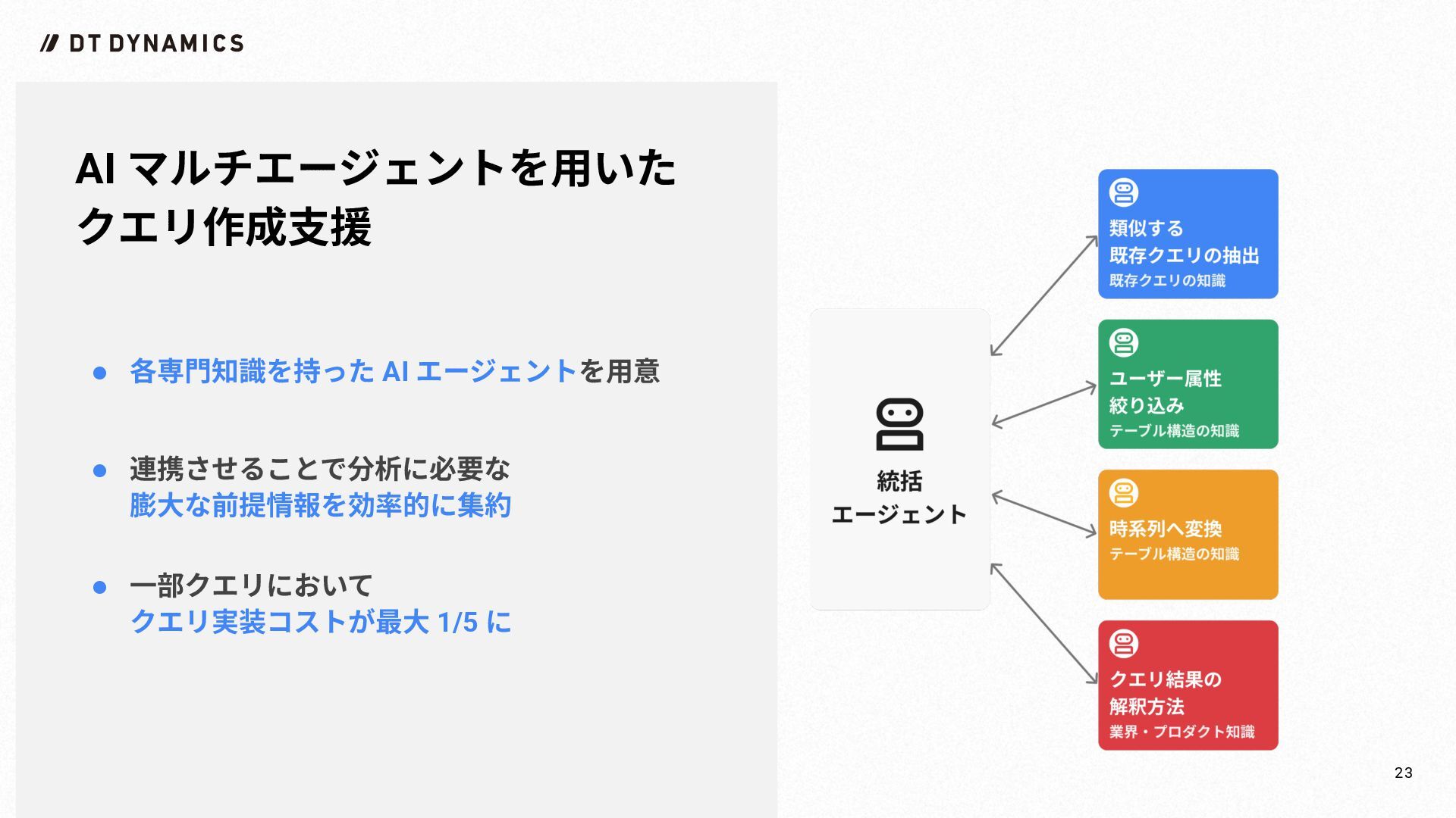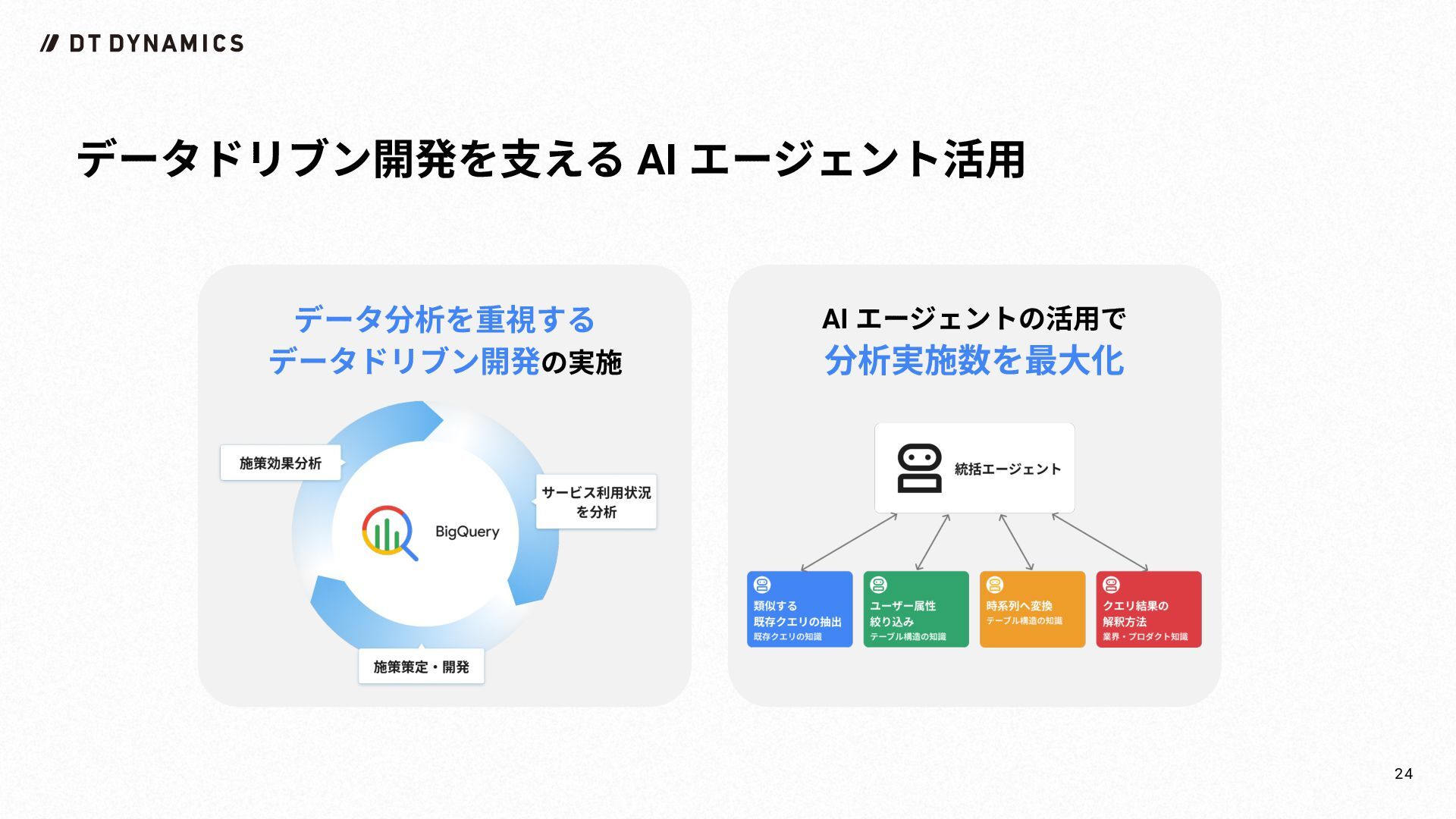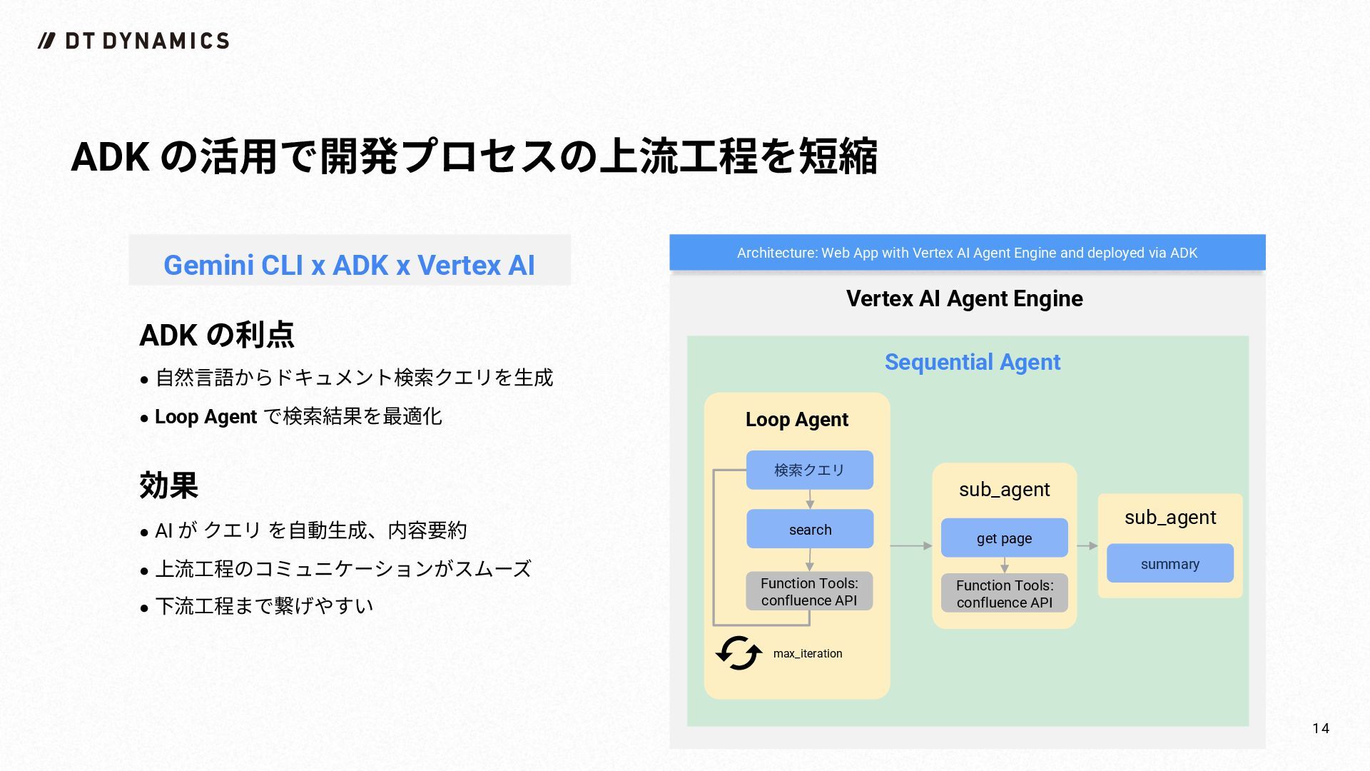 Gemini CLI、Vertex AI、ADK を活用したAIエージェントの導入により、開発生産性は大幅に向上し、属人化していた業務の形式化や、データドリブンな意思決定の高速化を実現しています。さらに、meviyマーケットプレイスにおけるAIマッチングや分析支援など、事業価値に直結するAI活用の実践例も紹介します。