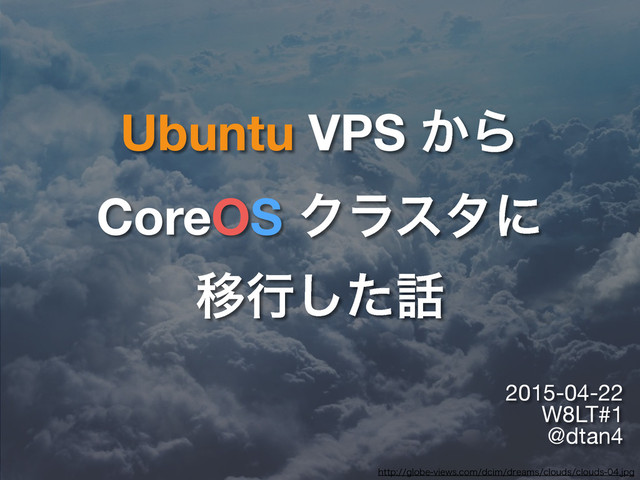 Ubuntu VPS ͔Β CoreOS Ϋϥελʹ Ҡߦͨ͠ 2015-04-22 W8LT#1 @dtan4 IUUQHMPCFWJFXTDPNEDJNESFBNTDMPVETDMPVETKQH