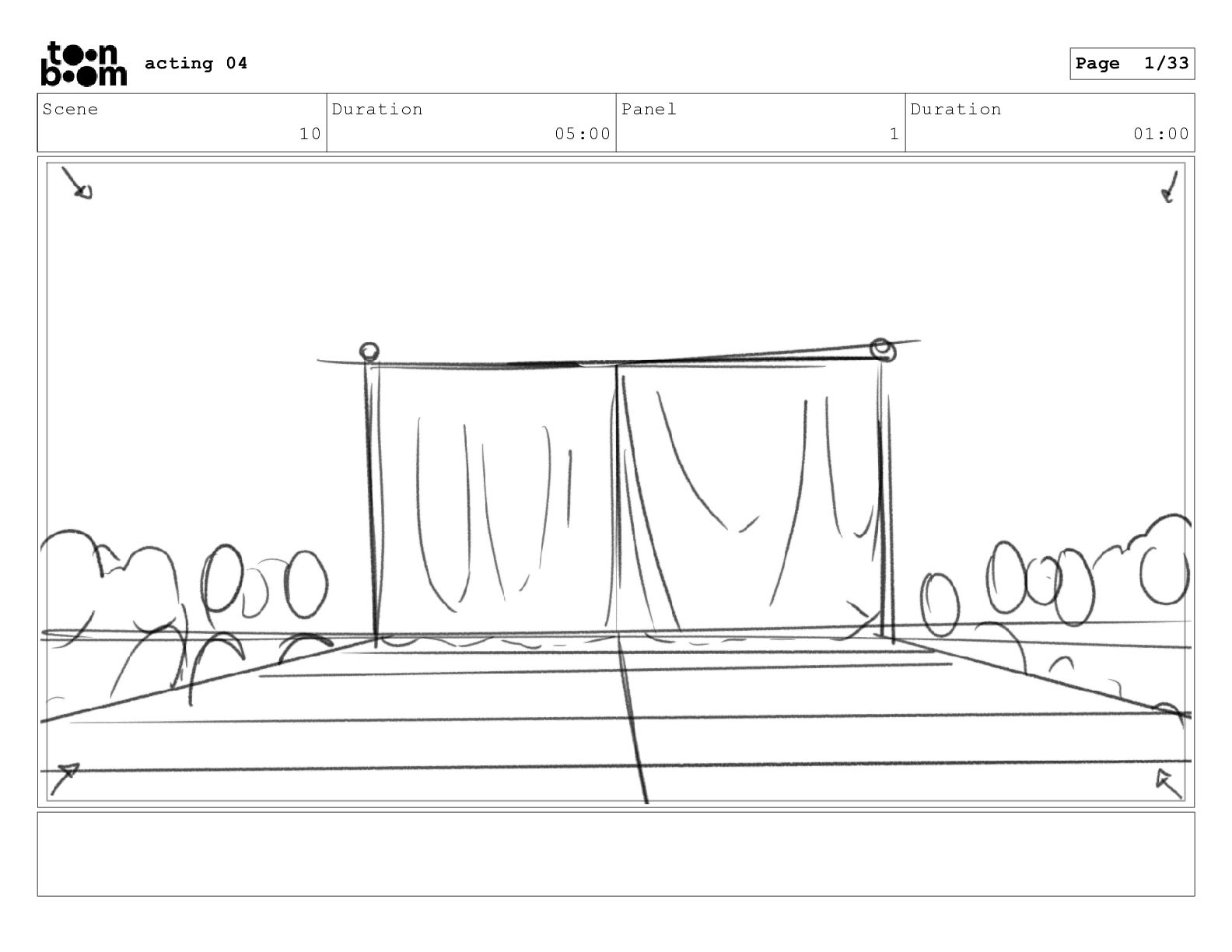 Scene 10 Duration 05:00 Panel 1 Duration 01:00 acting 04