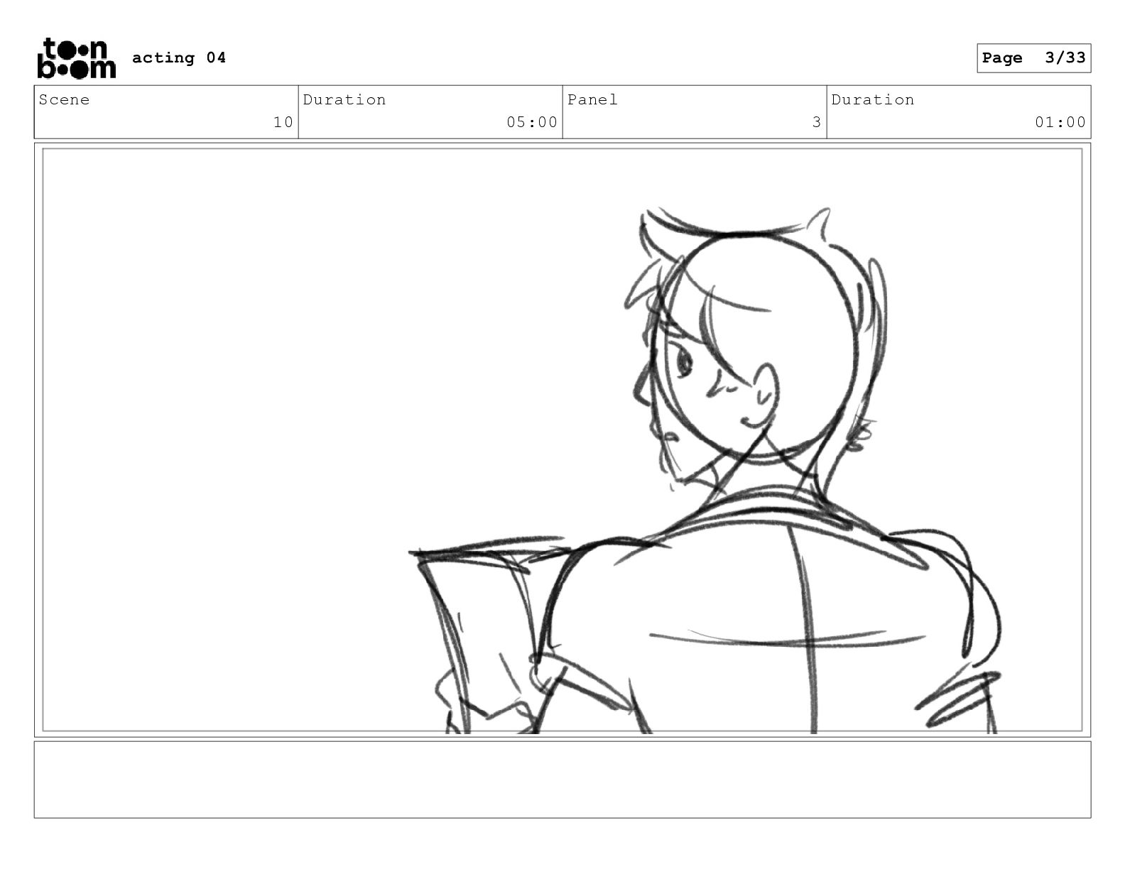Scene 10 Duration 05:00 Panel 3 Duration 01:00 acting 04