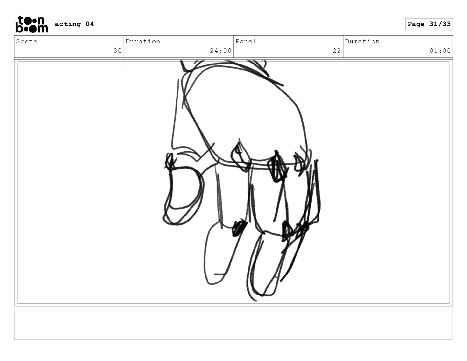 Scene 30 Duration 24:00 Panel 22 Duration 01:00 acting 04