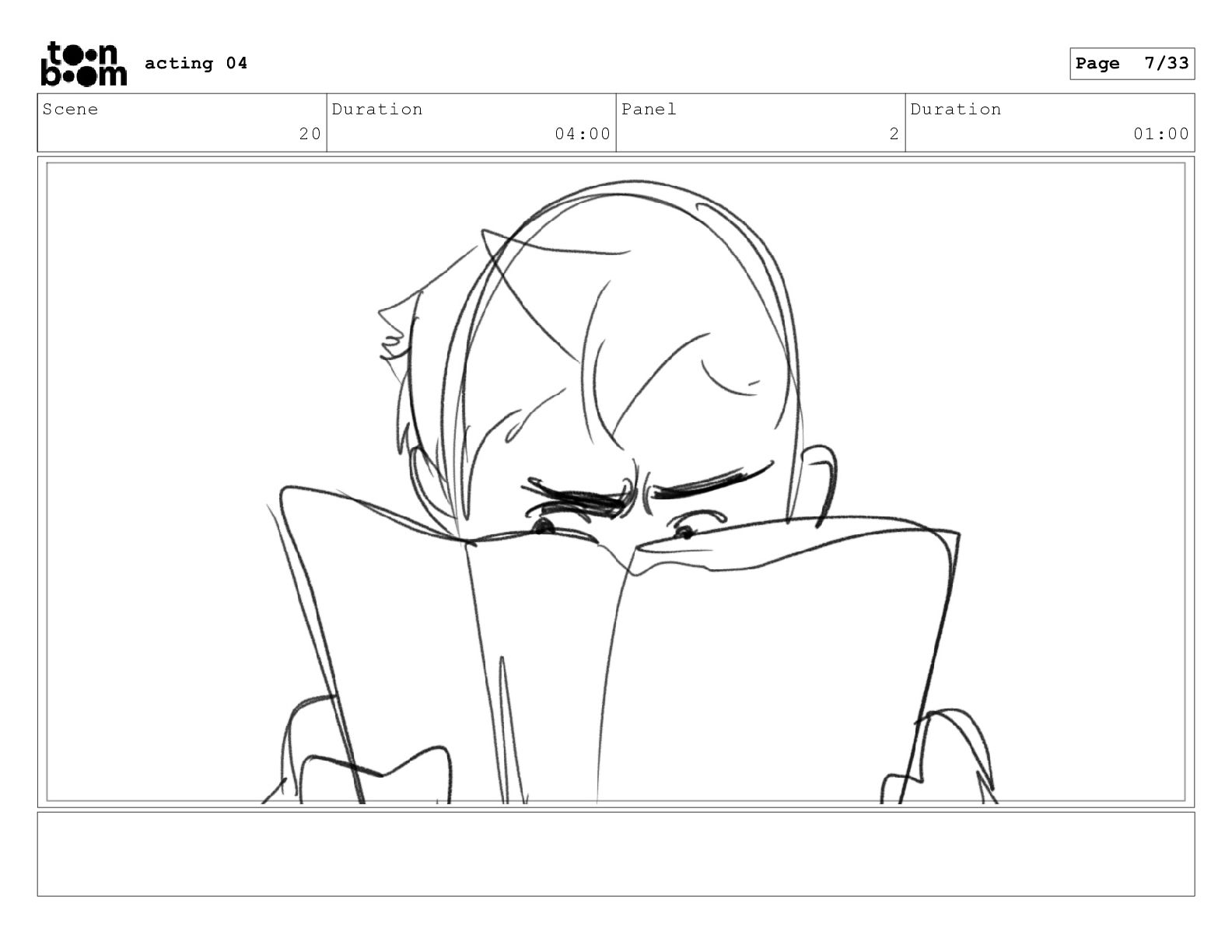 Scene 20 Duration 04:00 Panel 4 Duration 01:00 acting 04