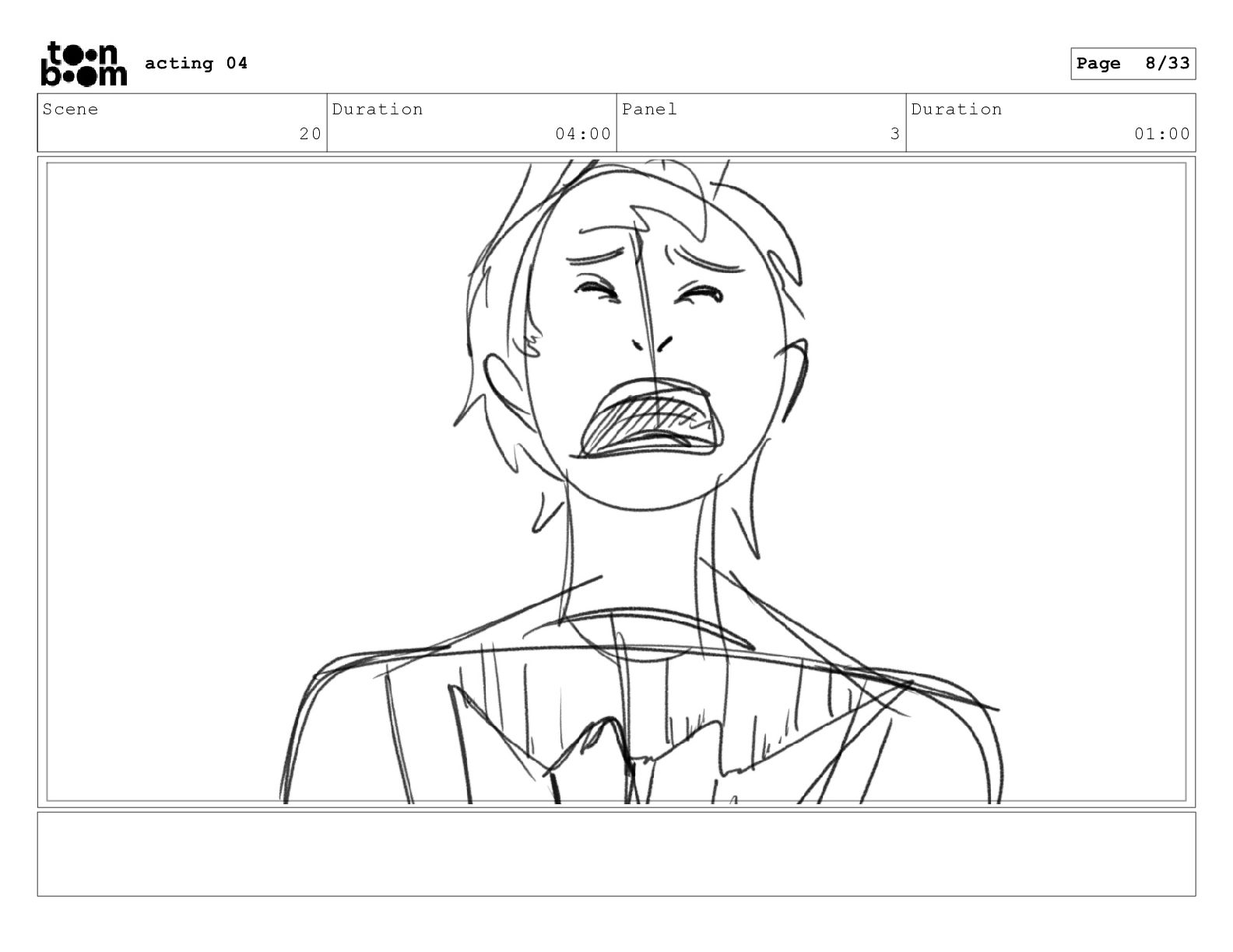 Scene 20 Duration 04:00 Panel 1 Duration 01:00 acting 04
