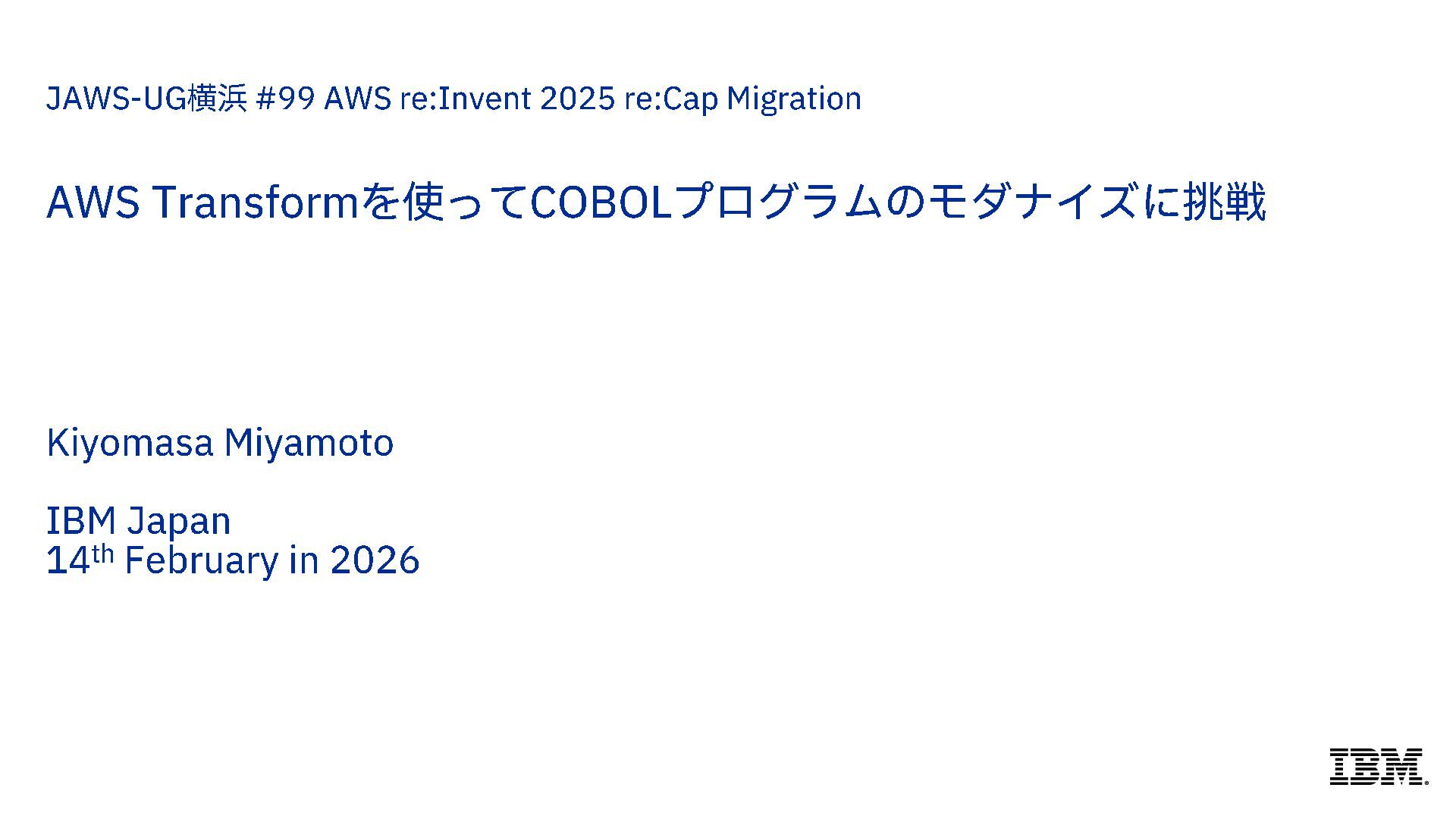 を使って COBOLプログラムのモダナイズに挑戦 Kiyomasa Miyamoto IBM Japan 14 th February in 2026