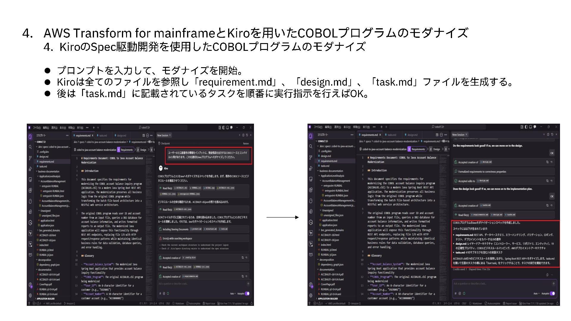 4. AWS Transform for mainframe と Kiro を用いた COBOLプログラムのモダナイズ 4.