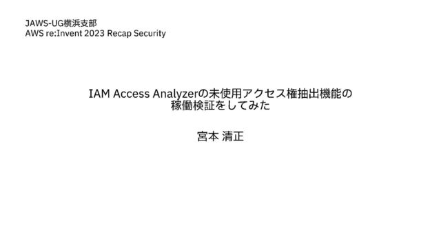 2024年2月3日(土)の「JAWS-UG横浜 #70 AWS re:Invent 2023 Recap Security」でLT登壇した際に使用した資料です。