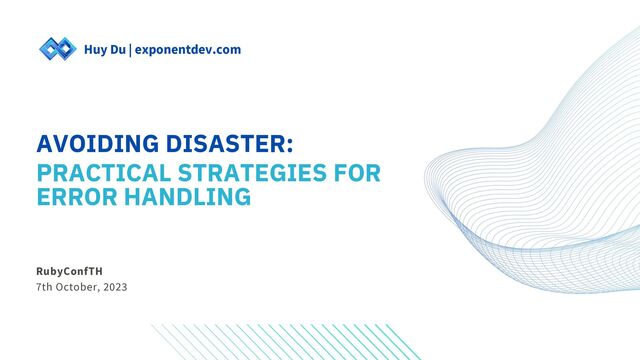 application • Understand how exception works in Ruby • Create boundaries for Business Logic layer and encapsulate with Service Object • Use monadic error handling by combining Service Object and Monad Result • You have the practical strategies for error handling