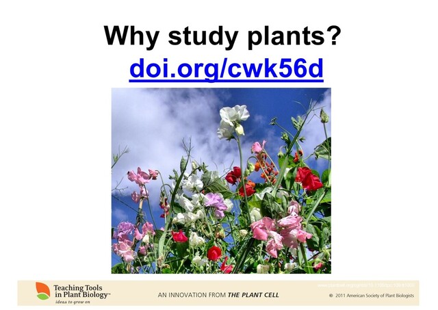 Studying plants increases our knowledge about life in general and helps us to work with them to keep us fed, healthy, sheltered, clothed, entertained and happy.