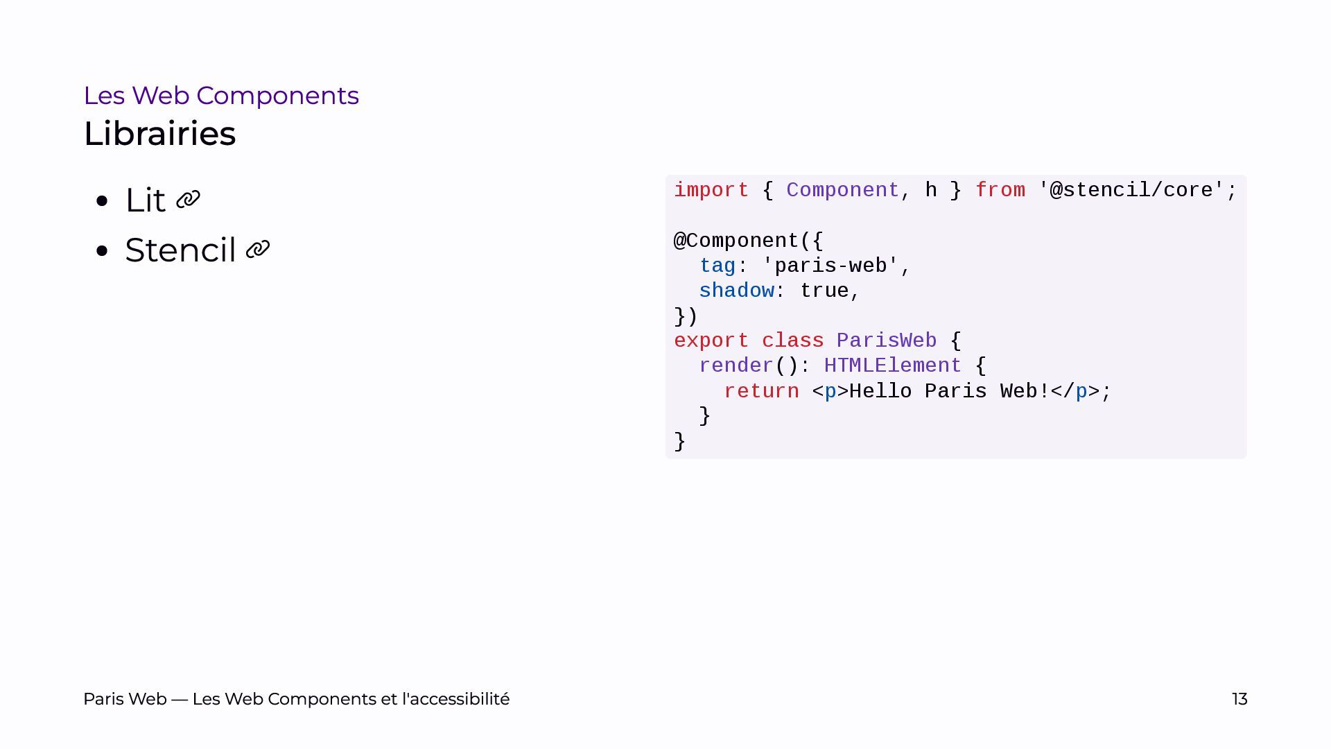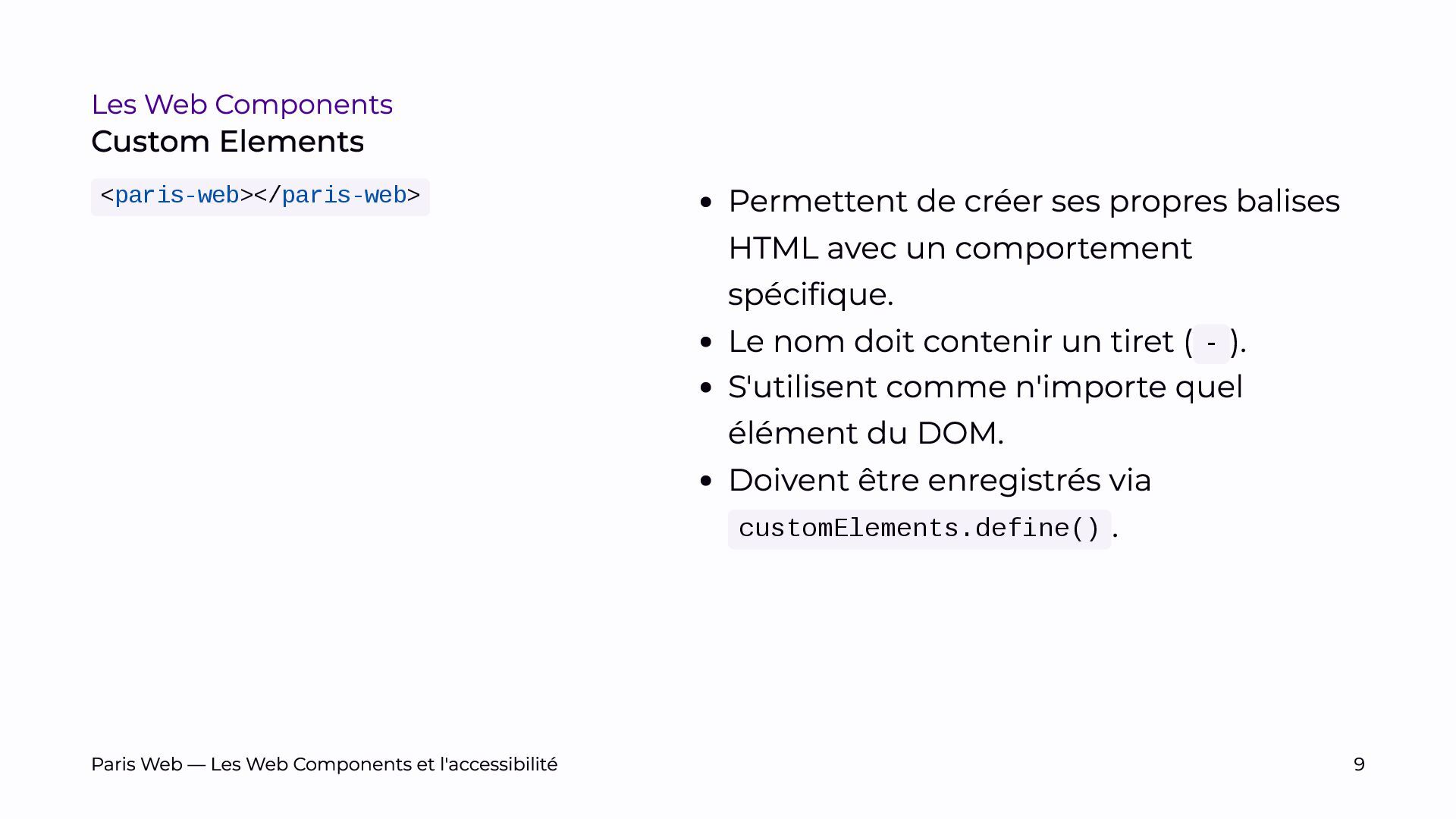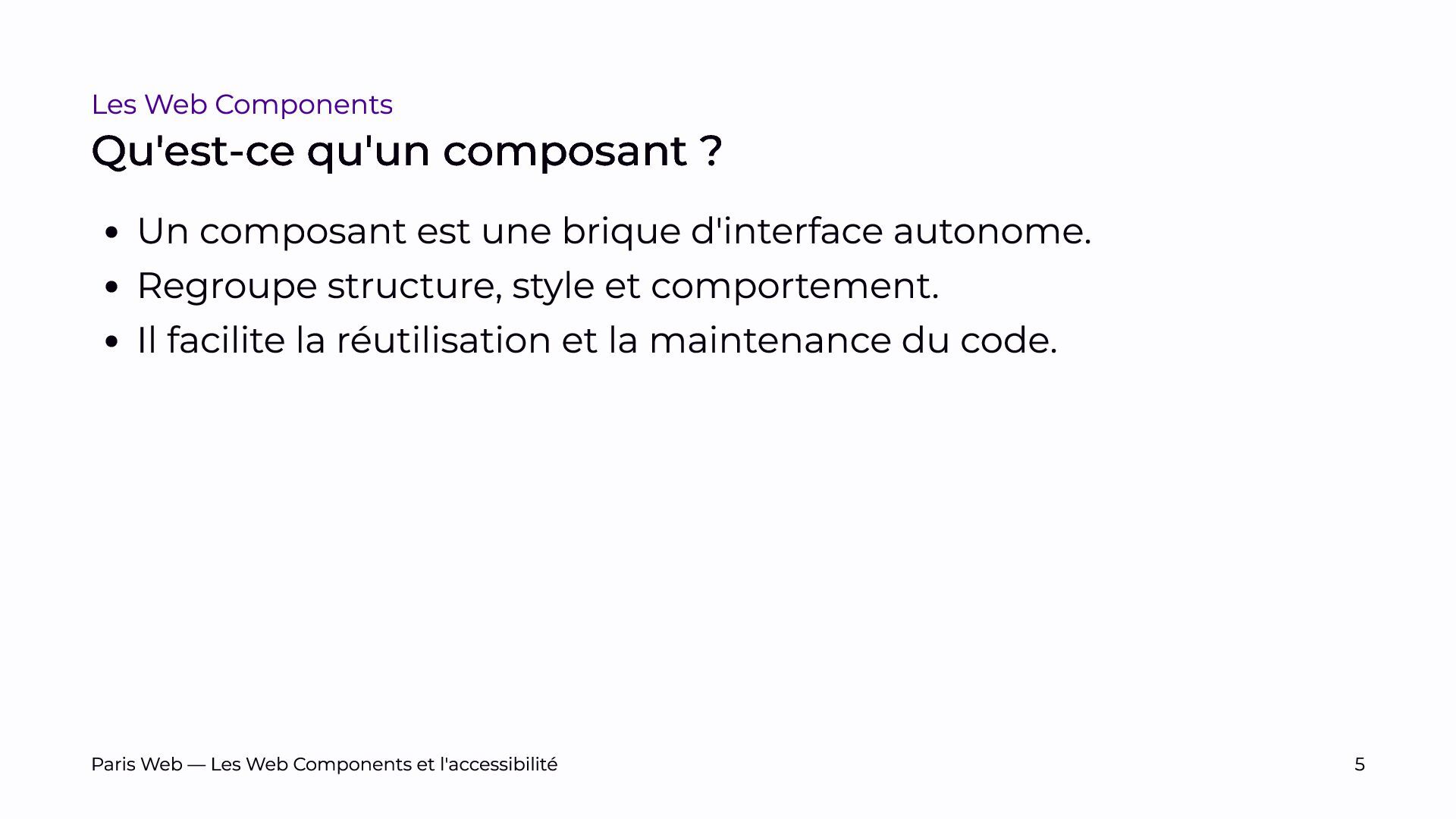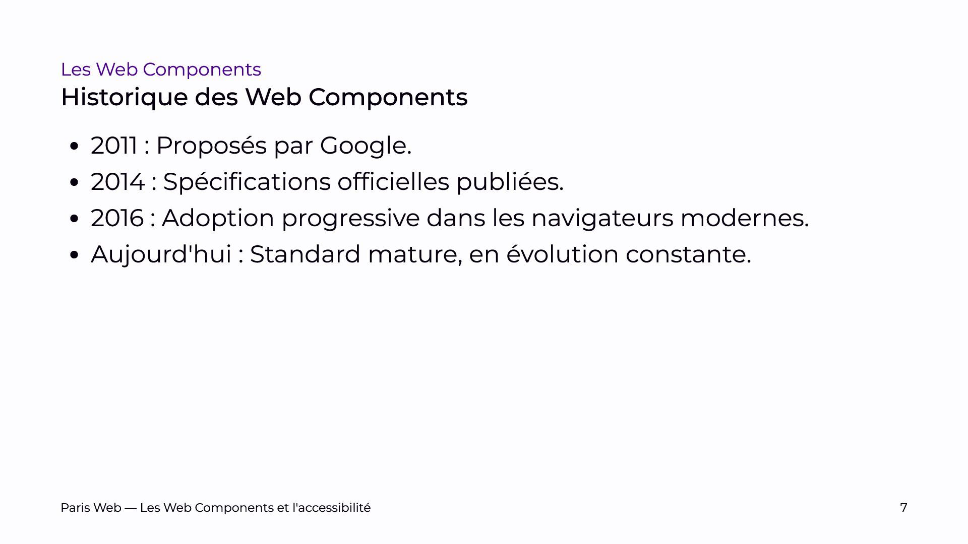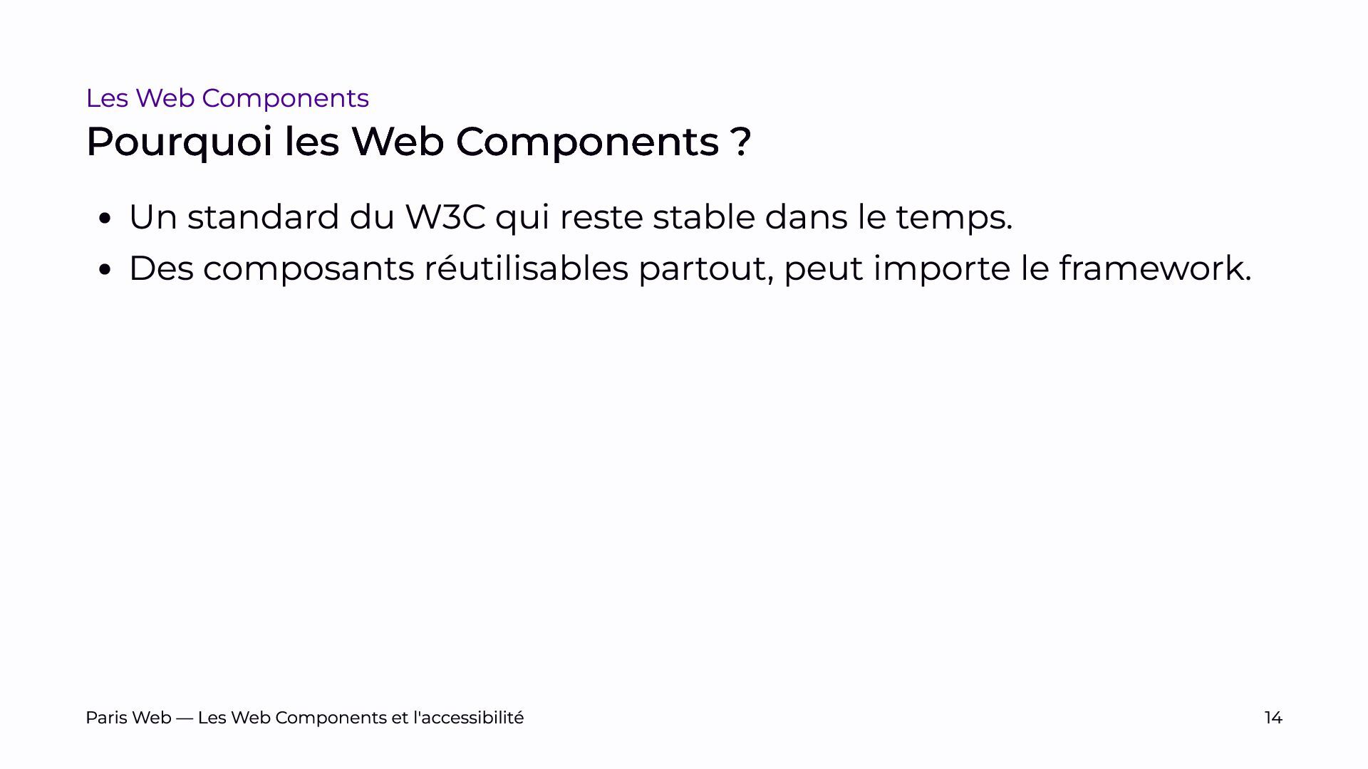 Depuis près de quatre ans, nous développons des Web Components et avons bénéficié de plusieurs audits. Nous partagerons nos retours d’expérience et les défis rencontrés pour les rendre accessibles.