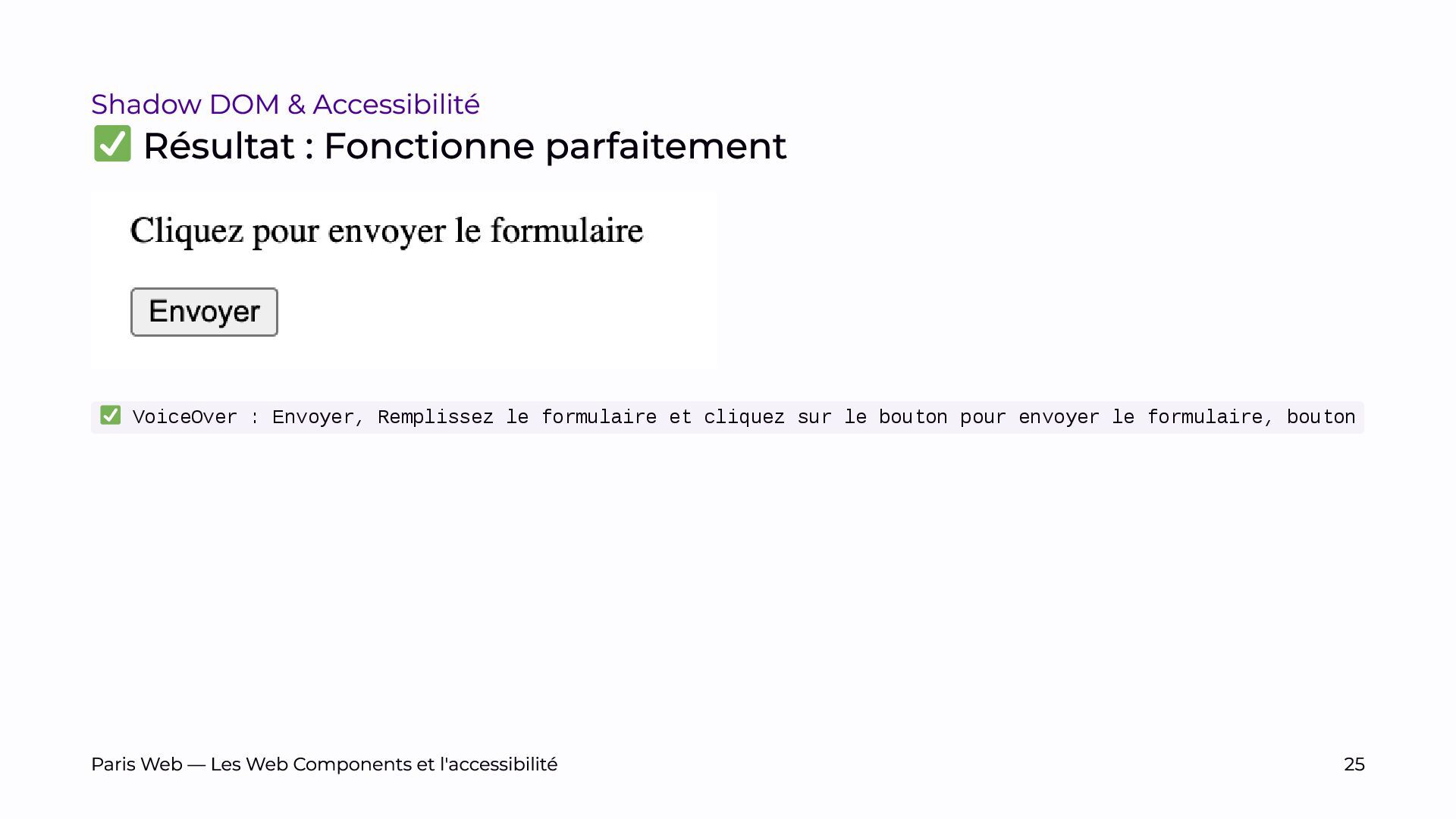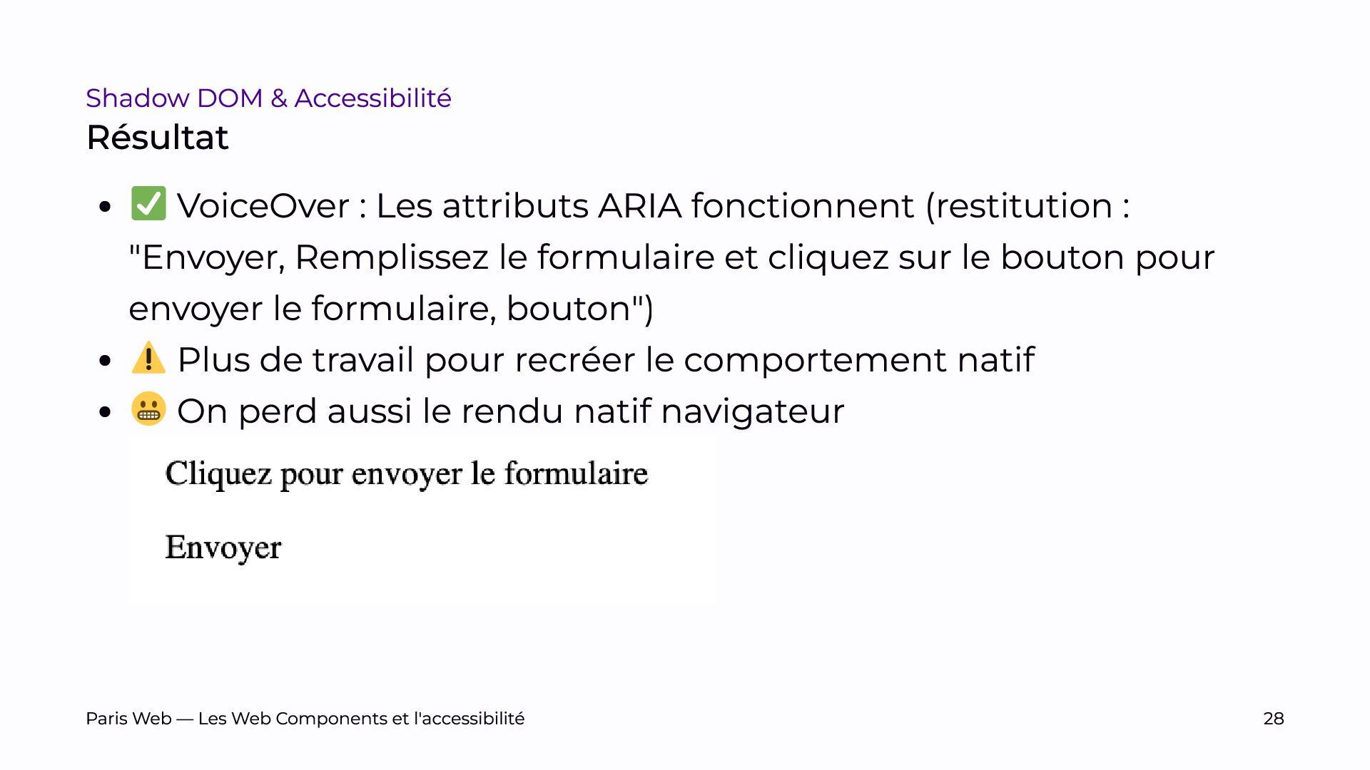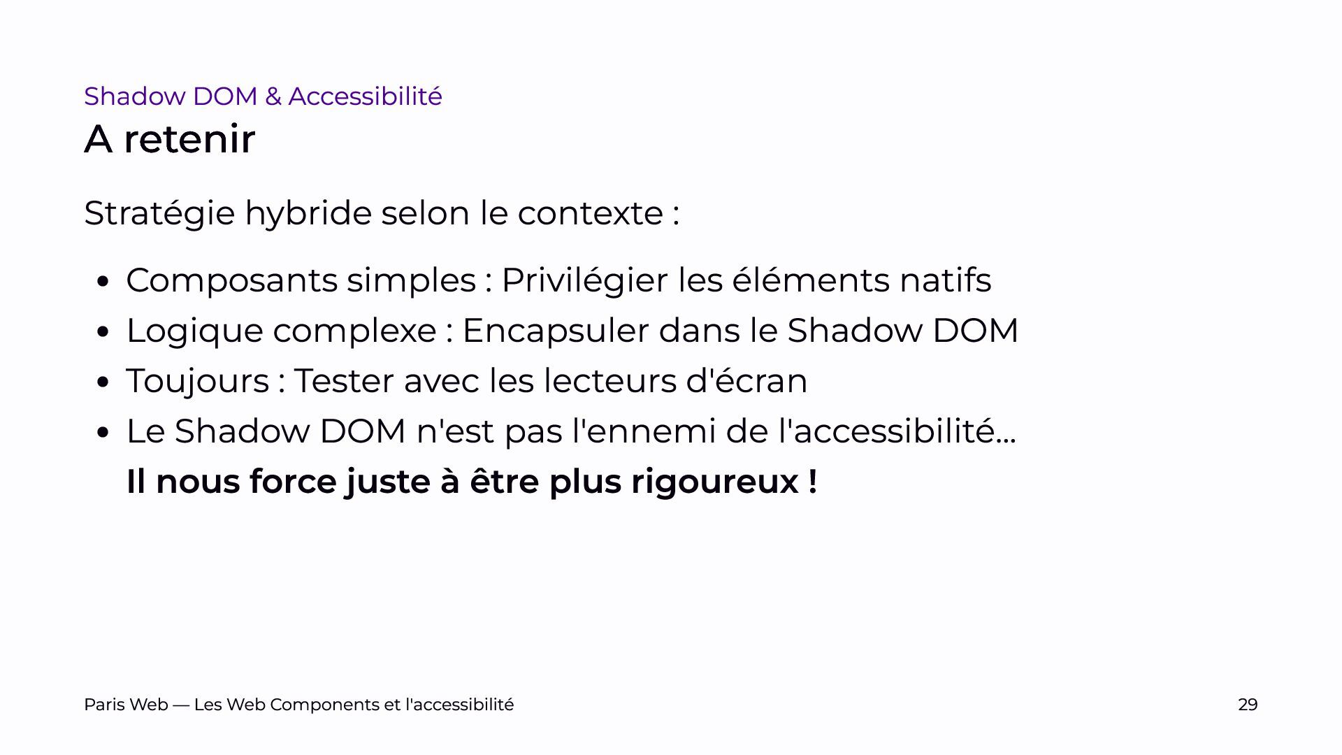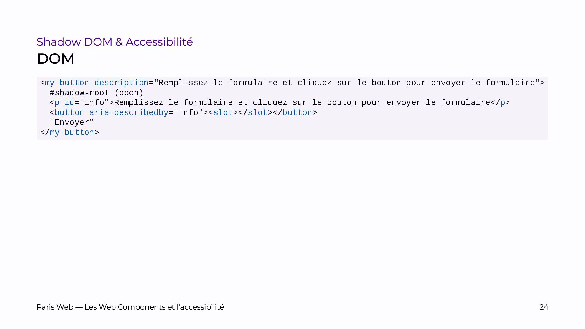 L’objectif est de sensibiliser les développeurs et développeuses, et les auditrices et auditeurs, aux enjeux spécifiques du Shadow DOM et de promouvoir des pratiques de développement plus inclusives.