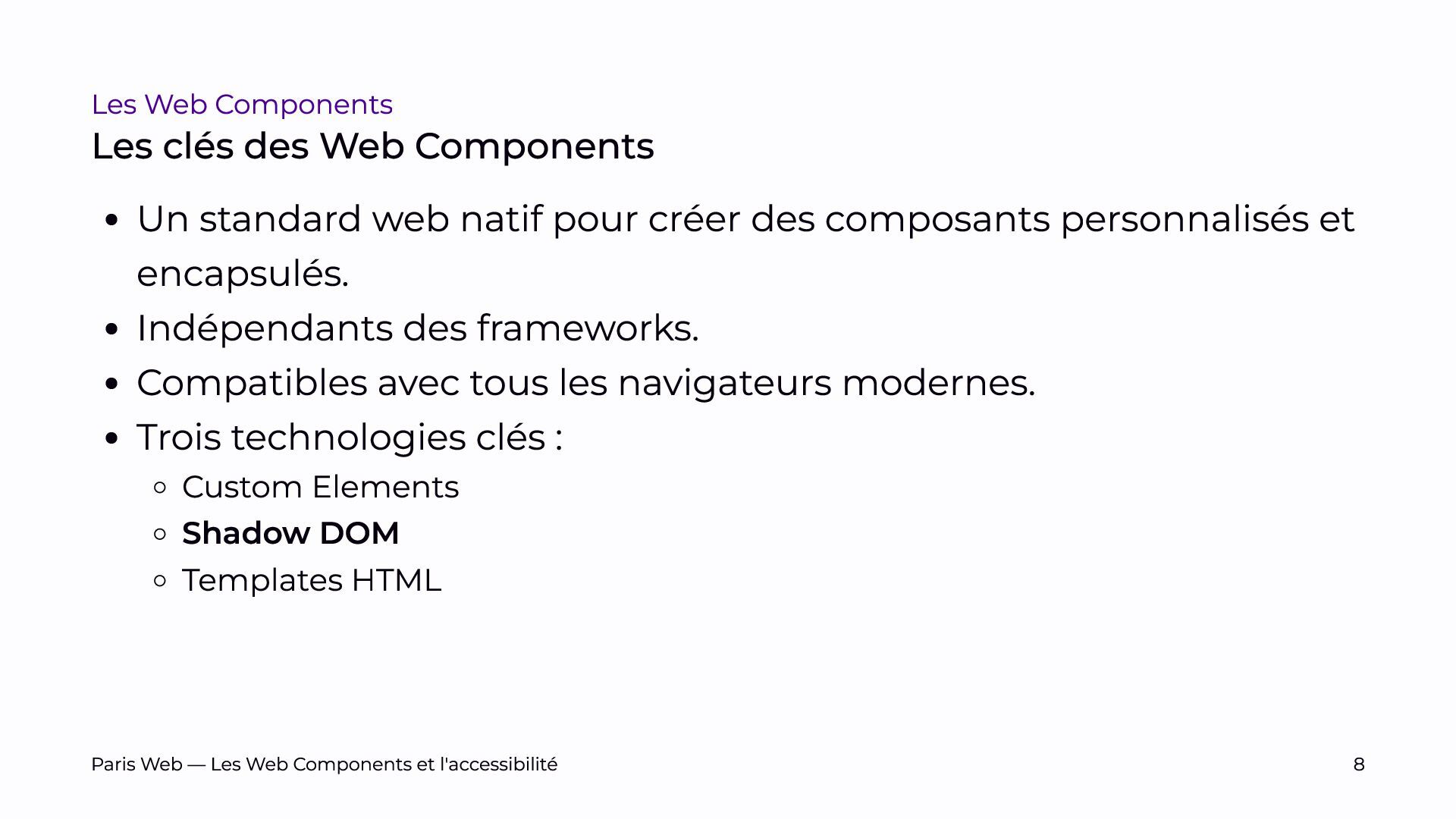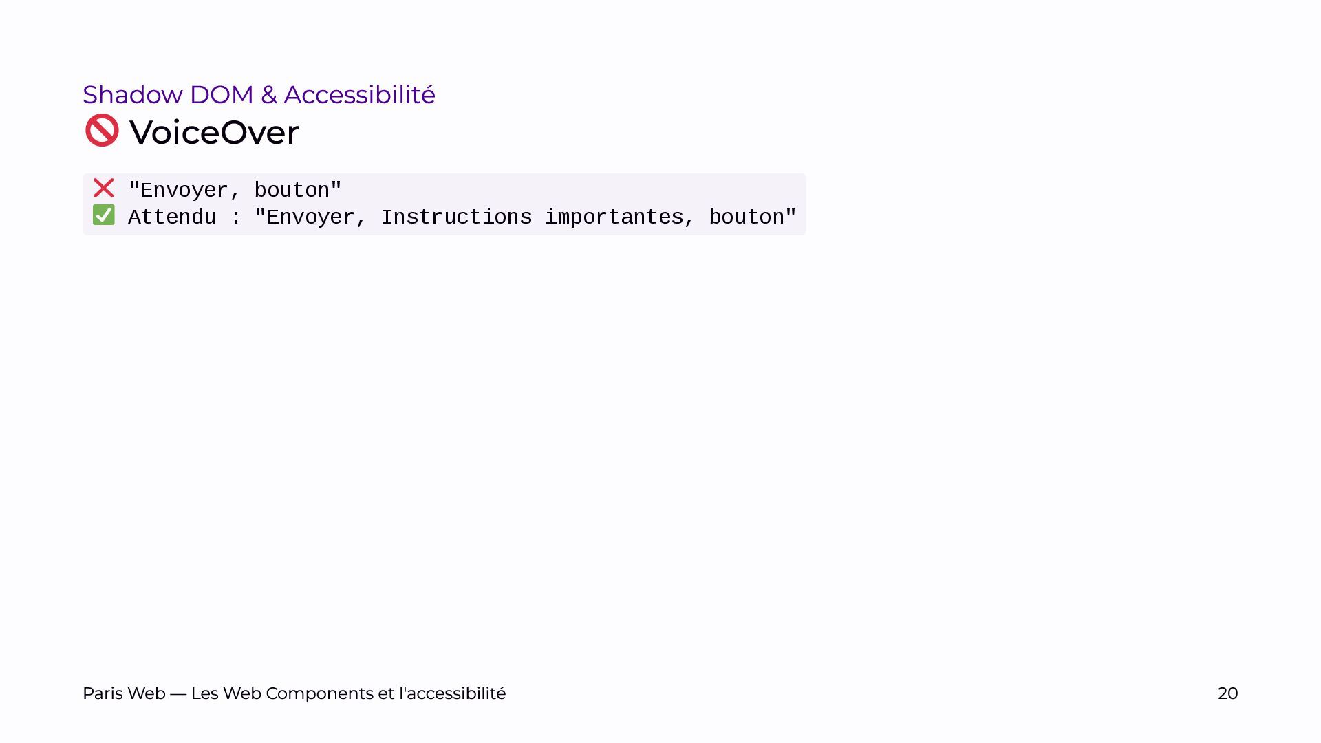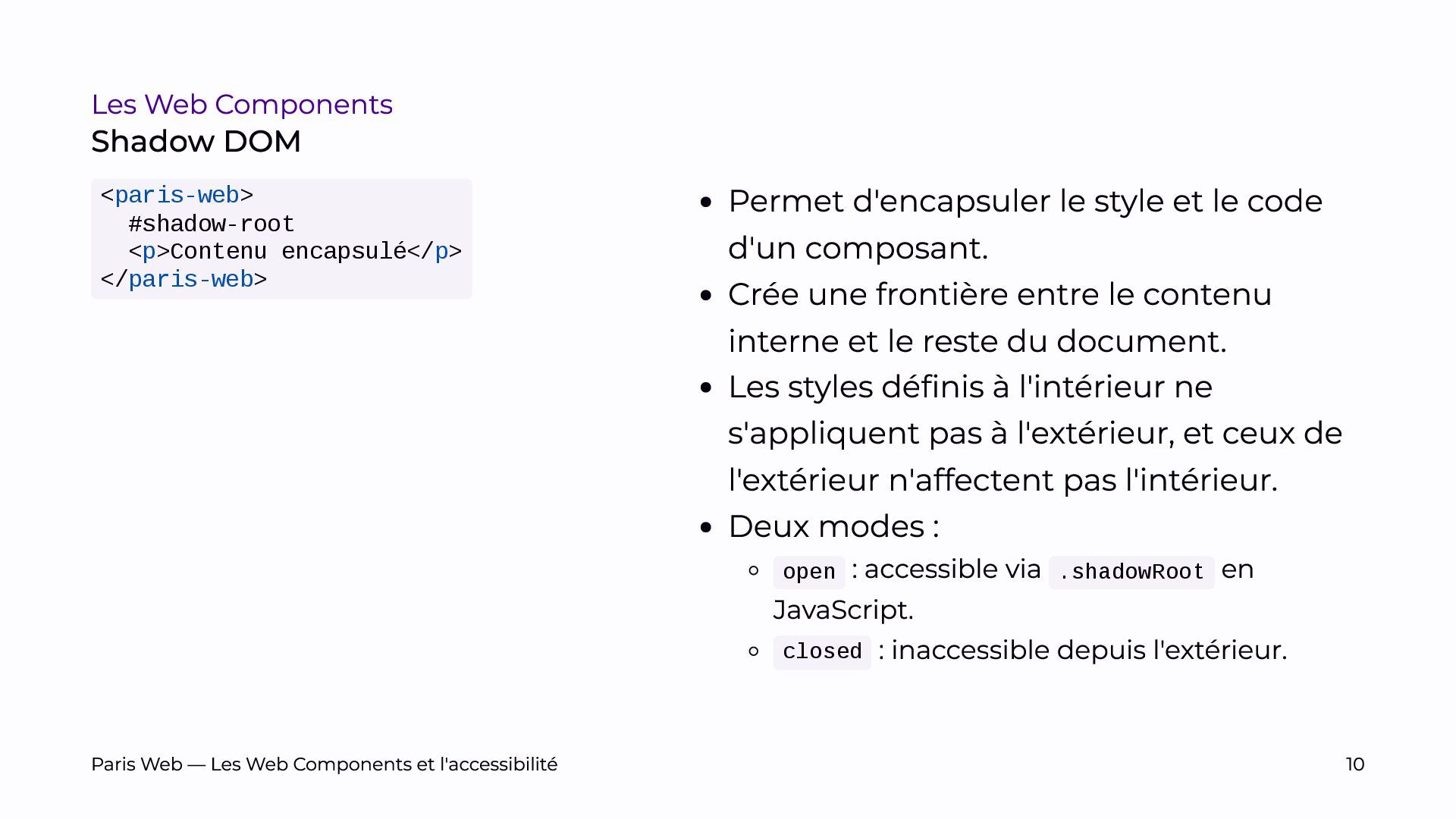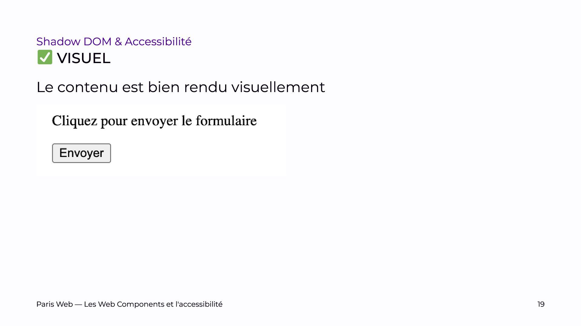 L’objectif est de sensibiliser les développeurs et développeuses, et les auditrices et auditeurs, aux enjeux spécifiques du Shadow DOM et de promouvoir des pratiques de développement plus inclusives.