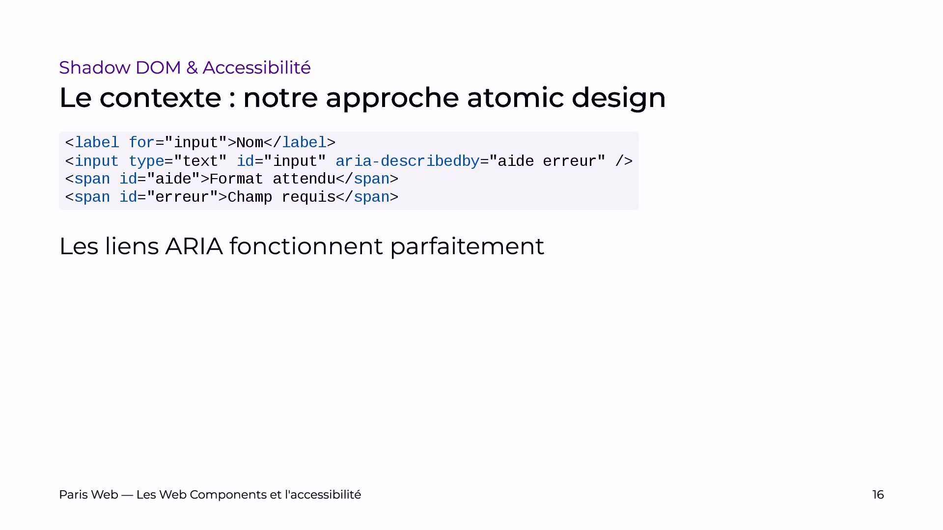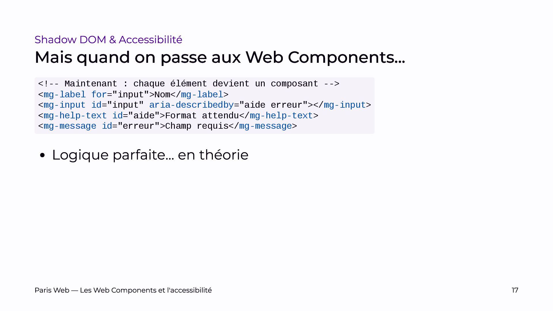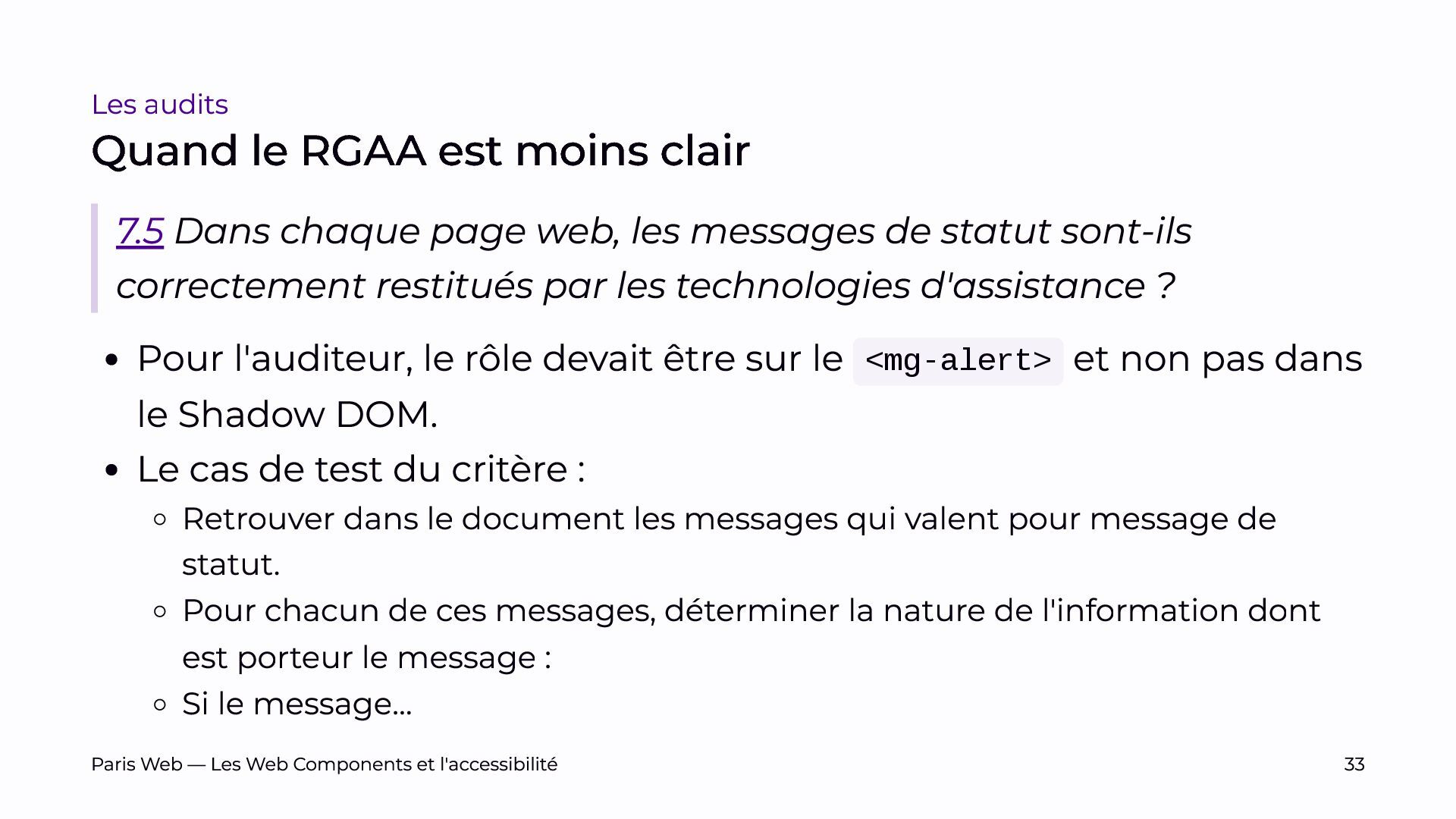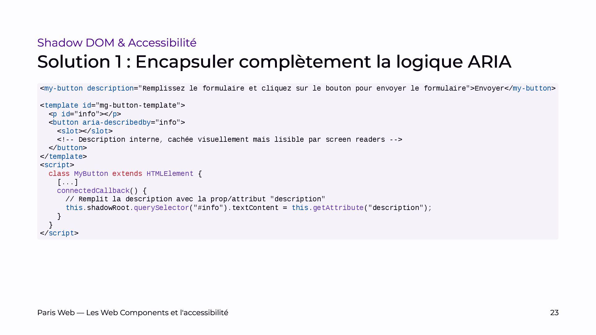 L’objectif est de sensibiliser les développeurs et développeuses, et les auditrices et auditeurs, aux enjeux spécifiques du Shadow DOM et de promouvoir des pratiques de développement plus inclusives.