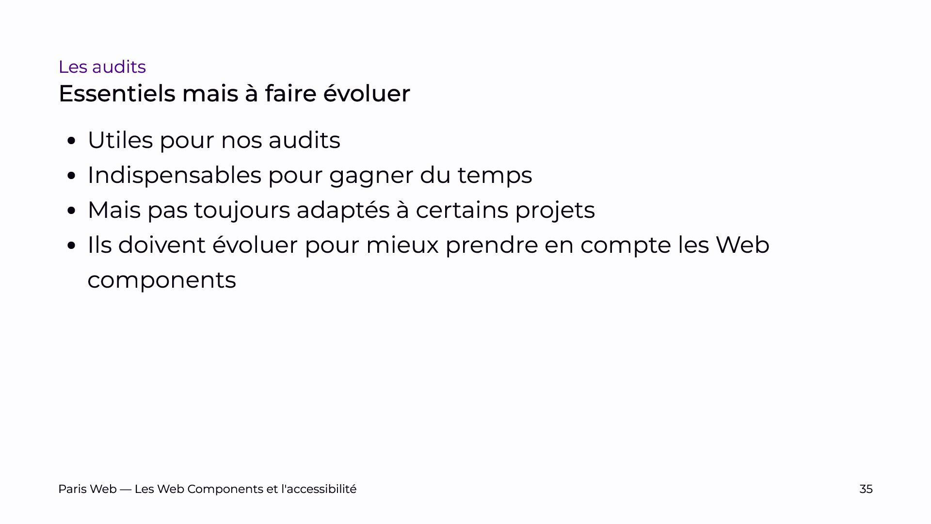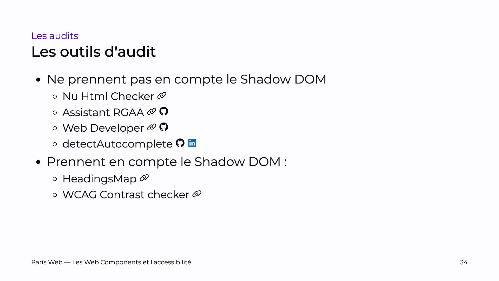 Nous examinerons comment certains outils d’audit actuels peuvent être adaptés pour mieux évaluer l’accessibilité des Web Components, souvent en raison de leur incapacité à pénétrer le Shadow DOM.