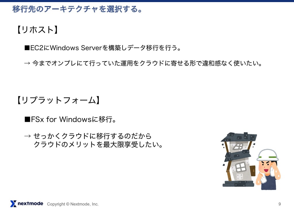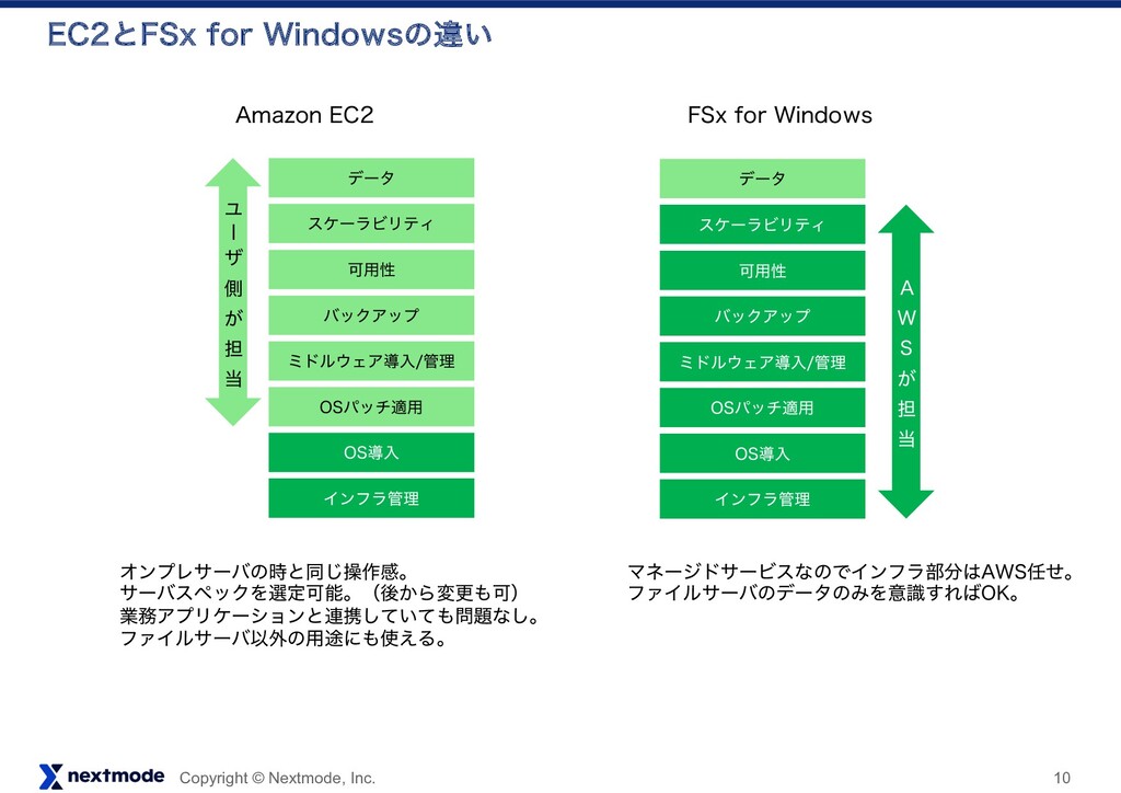 ฐࣾͰϑΥϧμϦετΛಡΈࠐΜͰ֤ϑΥϧμຖʹϩάΛ͚ͯ֬ೝग़དྷΔεΫϦϓτʹ࣮ͯࢪ͍ͯ͠·͢ɻ ᶄ "84%BUB4ZOD "NB[PO७ਖ਼πʔϧͷͨΊɺߴ͔ͭޮతʹσʔλసૹͰ͖Δ͜ͱ͕ಛͰ͢ɻ "NB[PO'4Y GPS8JOEPXTʹσʔλసૹ͢Δ͜ͱग़དྷ·͢ɻ ·ͨ"NB[PO$MPVE8BUDIͰϩάΛ֬ೝͰ͖·͢ͷͰϩάΛݟͯɺແବ͕ͳ͍Α͏ʹਐḿΛ֬ೝ͠ͳ͕Β ࡞ۀΛਐΊΔ͜ͱՄೳʹͳΓ·͢ɻ ͨͩ͠ɺΦϯϓϨϛεͷԾڥʹ"84%BUB4ZODΤʔδΣϯτΛ Πϯετʔϧ͓ͯ͘͠ඞཁ͕͋Γ·͕͢༗ྉͱͳΓσʔλྔʹԠͨ͡ैྔ՝ۚͱͳΓ·͢ɻ ᶅ '4.5 .JDSPTPGU'JMF4FSWFS.JHSBUJPO5PPMLJU .JDSPTPGU७ਖ਼πʔϧ͕ͩެ։ఀࢭͯ͠͠·͍·ͨ͠ɻ (6*ͰSPCPDPQZΛಈ͔ͤΔ༗༻ͳπʔϧͩͬͨͷͰ೦ɻ ᶆ $MPVE&OEVSF σʔλ͚ͩͷҠߦͰແ͘αʔό͝ͱҠߦ͢Δπʔϧɻ "84͕ങऩͨͨ͠Ί"84ͷҠߦͰ͋ΕແྉͰར༻ग़དྷΔɻ αʔόҠߦͱͳΔͨΊख๏खॱͷ֬ೝ͕ඞཁɻ ·ͨ&$ͷҠߦͷΈར༻Մೳɻ ᶇ ΤΫεϓϩʔϥʔͰυϥοάυϩοϓ ͬͱݪ࢝త͕ͩগྔͰ͋Ε؆୯ʹ࣮ࢪग़དྷ·͢ɻ