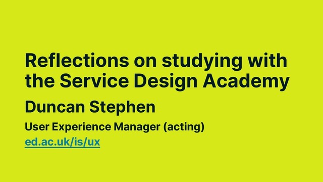 I presented to the University of Edinburgh's user experience community about my experiences studying for a PDA in Service Design at the Service Design Academy in Dundee.