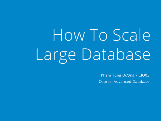 How To Scale Large Database Phạm Tùng Dương – CIO03