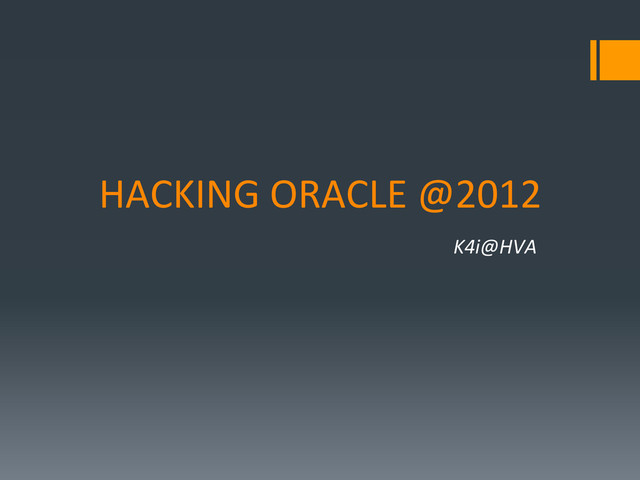 § AUTH_SESSKEY, AUTH_VRF_DATA? No need to capture packets, Oracle provide it for us. (sqlnet.ora) § Cracking? Small script, John the Ripper plugin. STEALTHY § Accelerating cracking? GPU, dictionary.