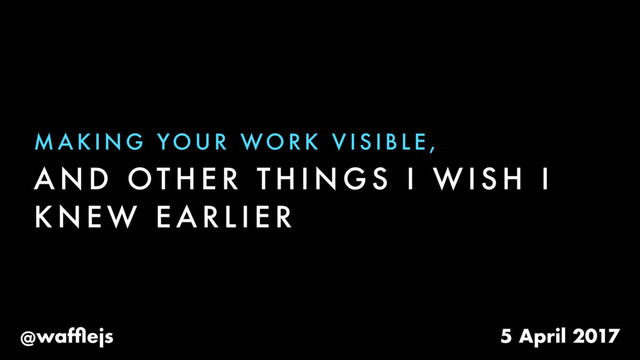 Making Your Work Visible, and other things I wish I knew earlier