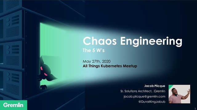 During this talk, Gremlin's Jacob Plicque (Chaos Engineer & Resilience Coach, former Senior SRE @ Fanatics) will answer the 5 W's (Who, What, When, Where & Why) of Chaos Engineering.