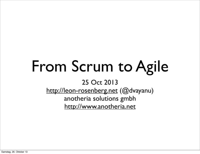 is a second-generation Agile approach that addresses the entire value stream and overcomes the challenges inherent in team-based Agile approaches such as Scrum and XP.” Alan Shalloway Samstag, 26. Oktober 13
