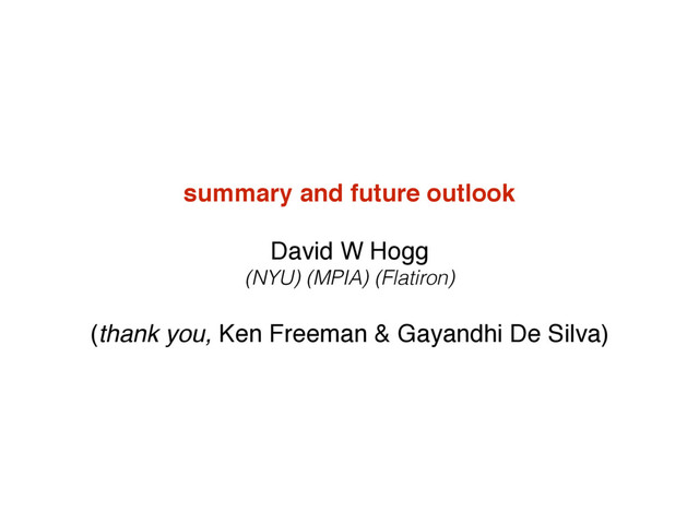 to do parameter estimation with rich data in simplified models. The theory really is computational. New methods for inference might be necessary. (Binney, Nataf, Gerhard, Athanassoula, Wegg talks)
