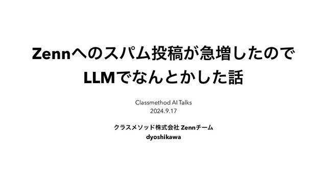 Zennへのスパム投稿が急増したので LLMでなんとかした話 Classmethod AI Talks 2024.9.17 クラスメソッド株式会社 Zennチーム dyoshikawa