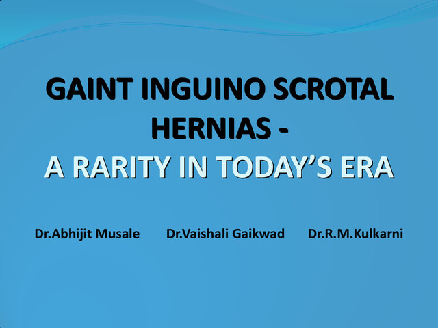 repair is the necessity to avoid complications and morbidity of patient. Adequate pre-operative planning as well as intra-operative and postoperative monitoring is essential. Patient’s awareness towards this treatable condition and early diagnosis forms a vital aspect for the management of giant hernias. Thank You !!