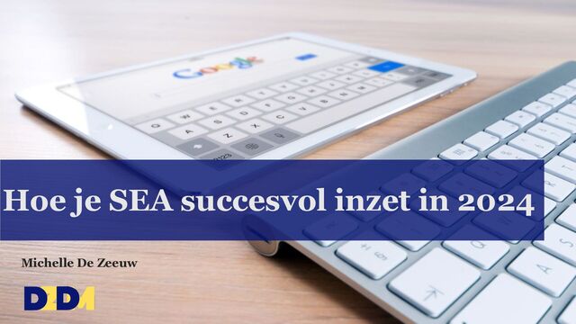 Een presentatie over hoe je Search Engine Advertising (SEA) succesvol inzet in 2024. Ik licht 4 trends toe die hoogstwaarschijnlijk jouw SEA strategie gaan beïnvloeden in 2024. Bij elke trend geef ik een paar tips hoe je jouw SEA strategie daarop aan kan passen.