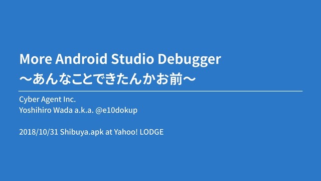 More Android Studio Debugger 〜あんなことできたんかお前〜 Cyber Agent Inc. Yoshihiro Wada