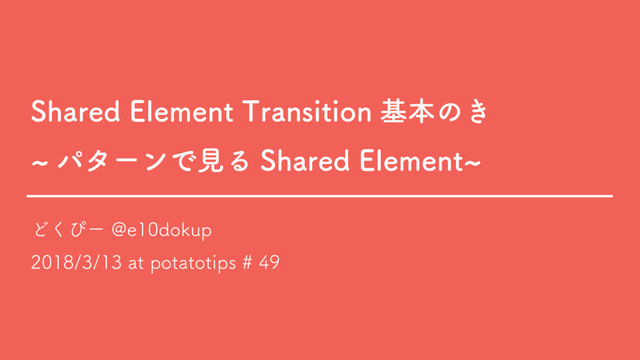2018/3/13に開催された potatotips #49での「shared element基本のき 〜パターンで見るshared element〜」の発表資料です。