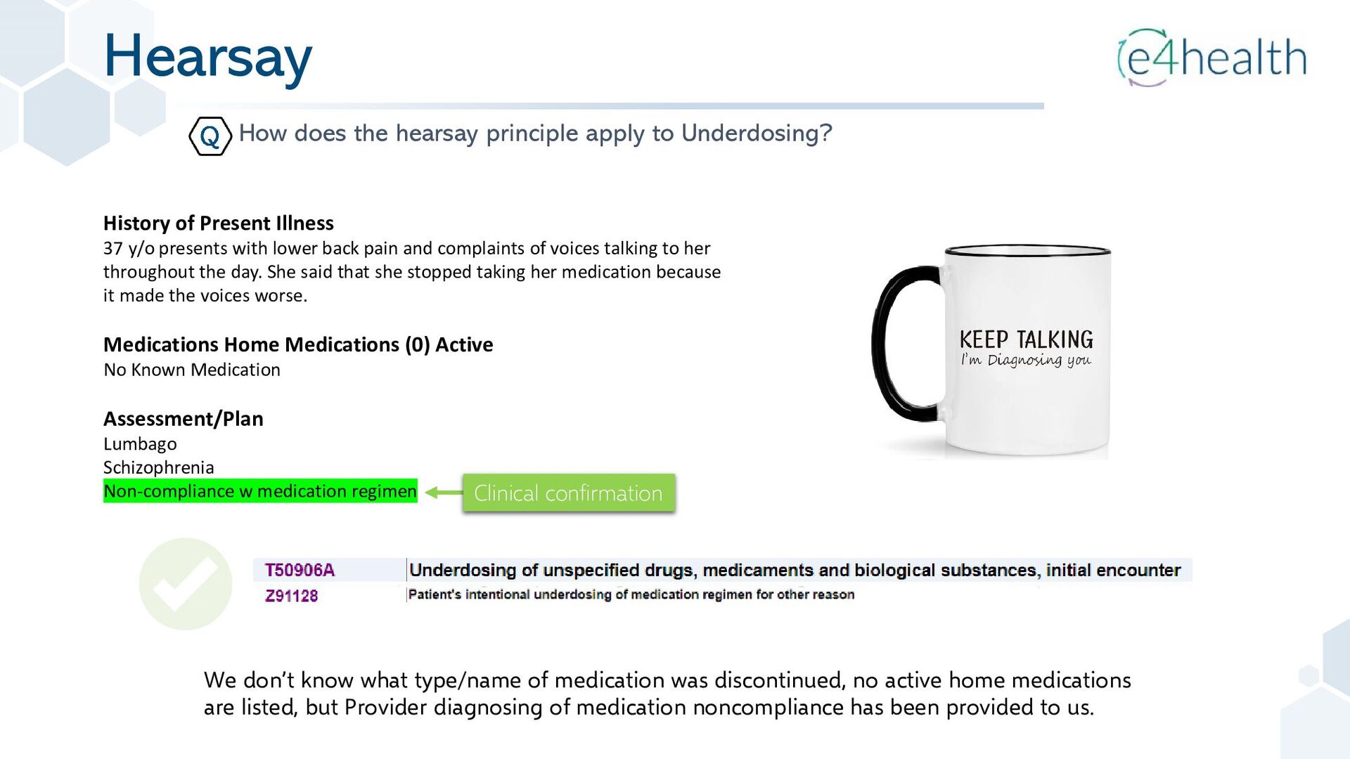 26. Hearsay How does the hearsay principle apply to Underdosing? History