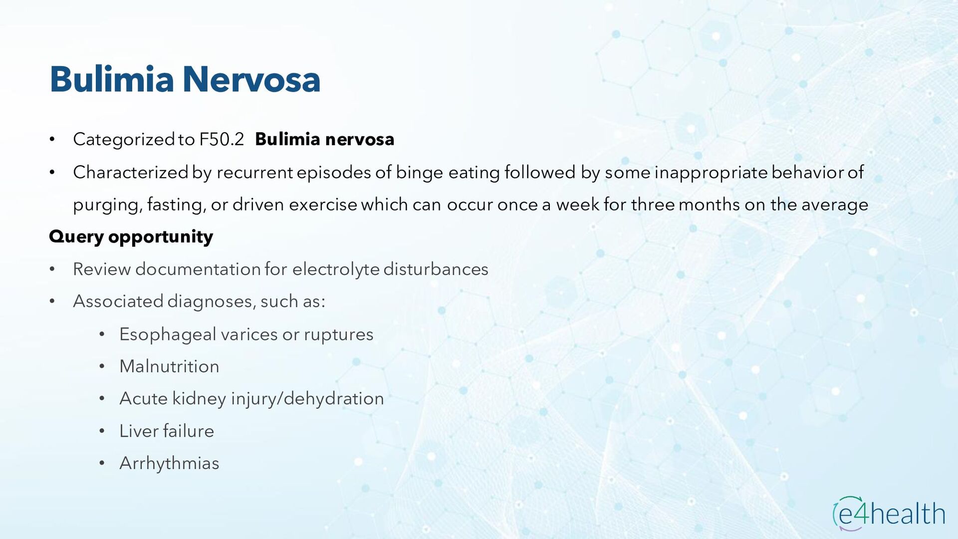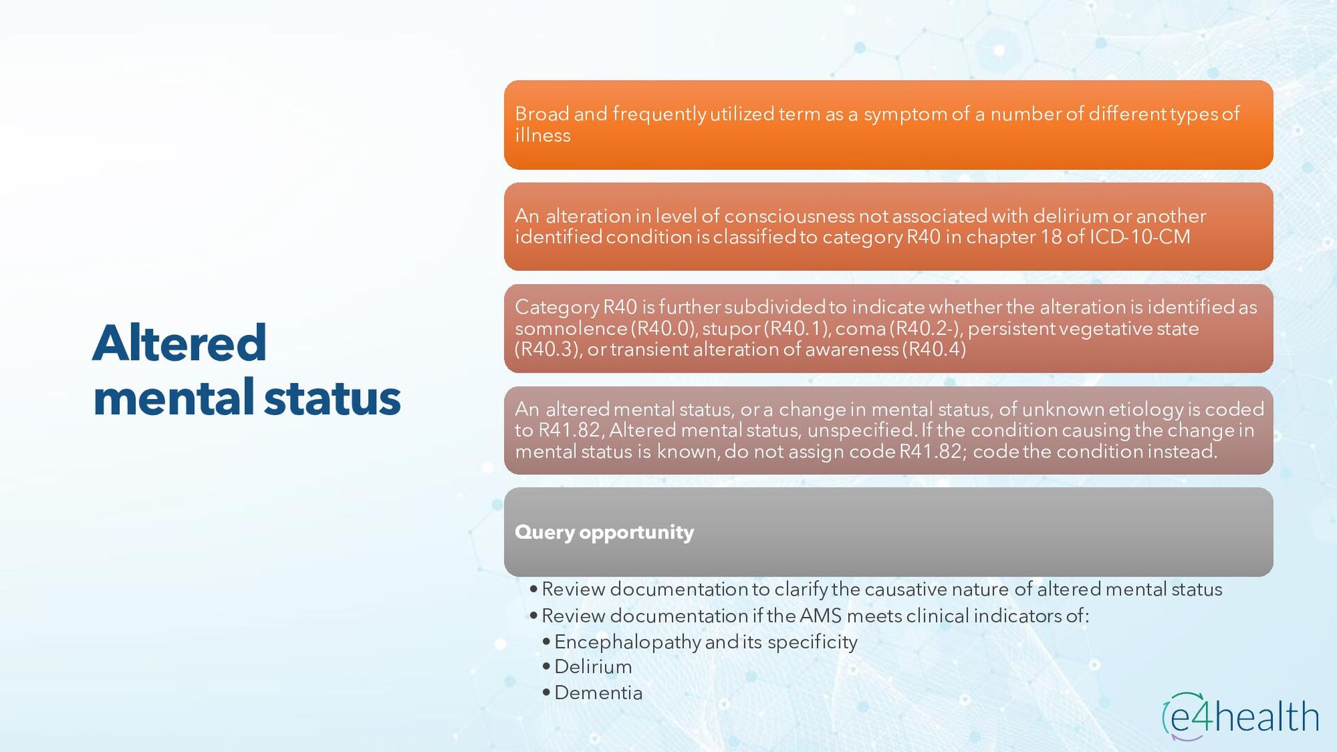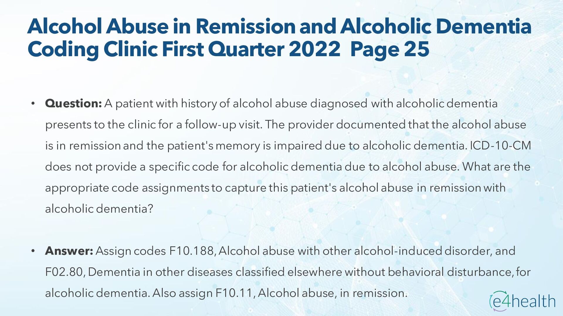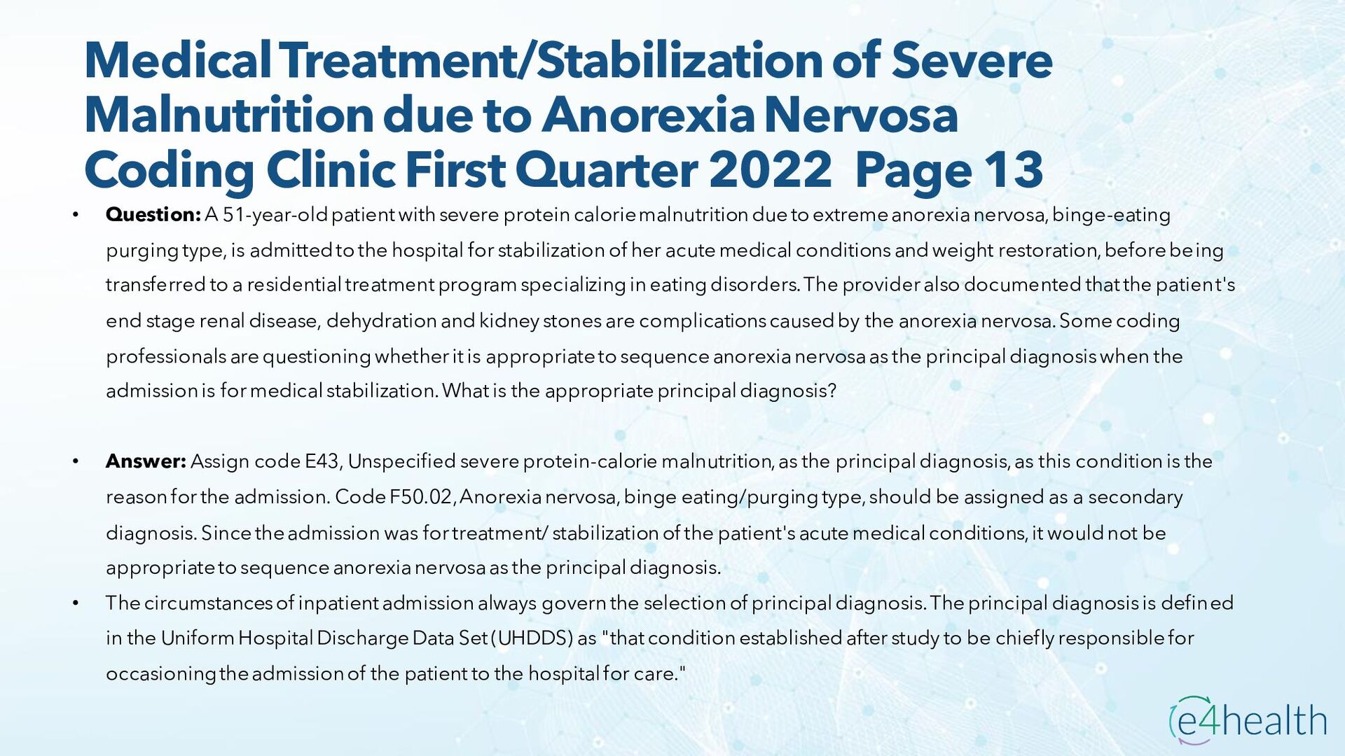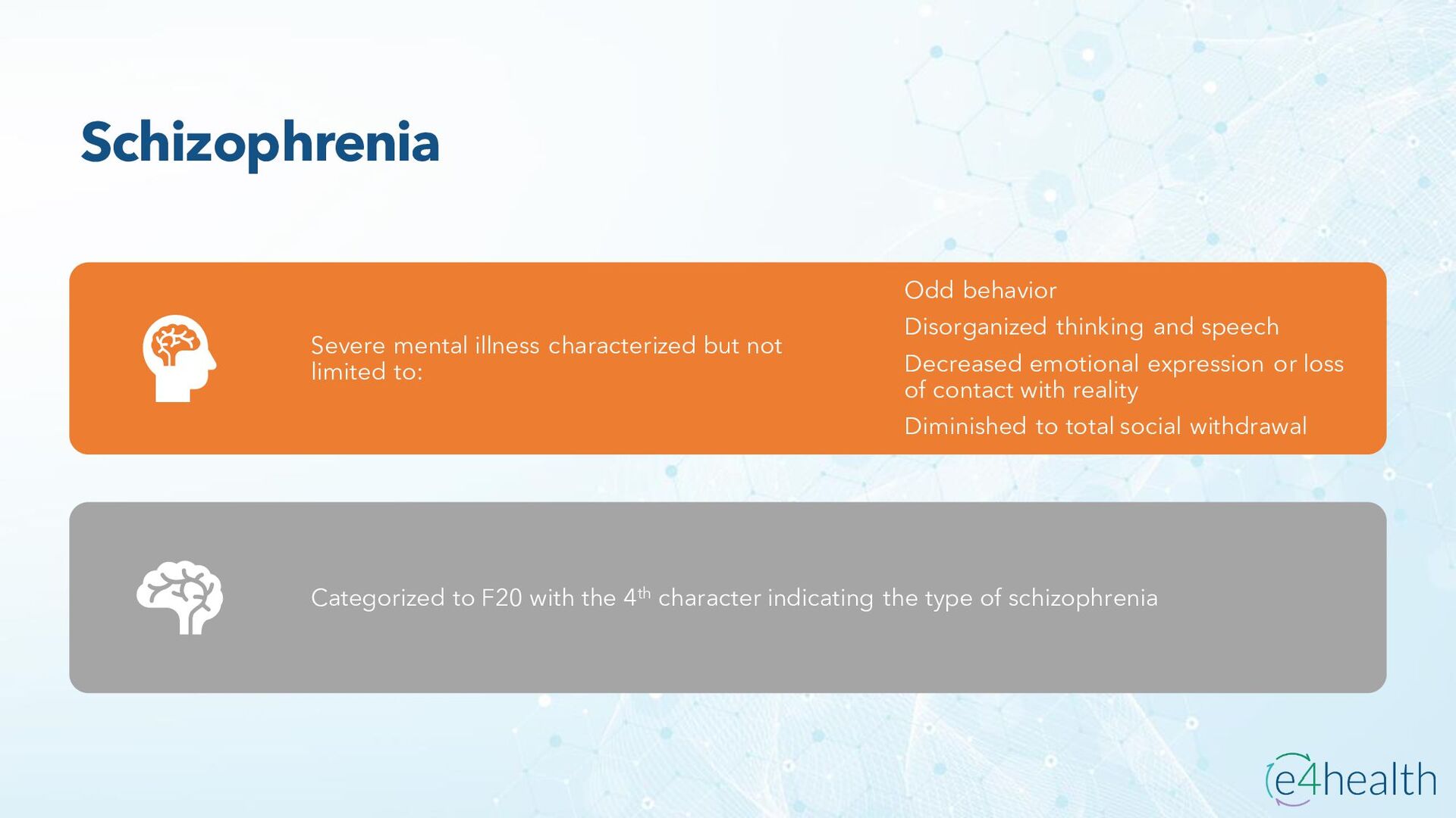 9-10 • A code has been created to identify depression (unspecified) and the narrative at category F32 was revised from Major depress ive disorder, single episode to "Depressive episode." This retitling brings back the WHO ICD-10 category title, and also brings the title into better alignment with all of what has been included in the category. The new code follows: • F32.A Depression, unspecified • Depression is a common mental health disorder. Approximately 30% of patients report symptoms of depression to their primary care providers; however, fewer than 10% of these patients have major depression. Although depression can begin at almost any age, it typically develops during a person's mid-teens, 20s, or 30s. When untreated, an episode of depression may last from 6 months to two years or more, and episodes tend to recur several times over a lifetime. • The exact etiology of depression is unclear; however, risk factors may include heredity, certain physical disorders, emotionally distressing events, changes in hormone levels, and side effects of certain drugs. • Symptoms of depression vary, and typically develop gradually over days or weeks. Symptoms may include anxiety, feelings of loneliness, irritability, sadness, poor concentration, poor hygiene, and loss of interest in activities that were once enjoyed. Some people have poor appetite while others overeat. Some become withdrawn, have difficulty sleeping or sleep more than usual, and some have thoughts of death and suicide. • Previously in ICD-10-CM, the default for Depression not otherwise specified (NOS) was code F32.9, Major depressive disorder, single episode, unspecified. However, this code did not separately capture the actual occurrence of depression not further specified, and statistically inflated the incidence of major depressive disorder.