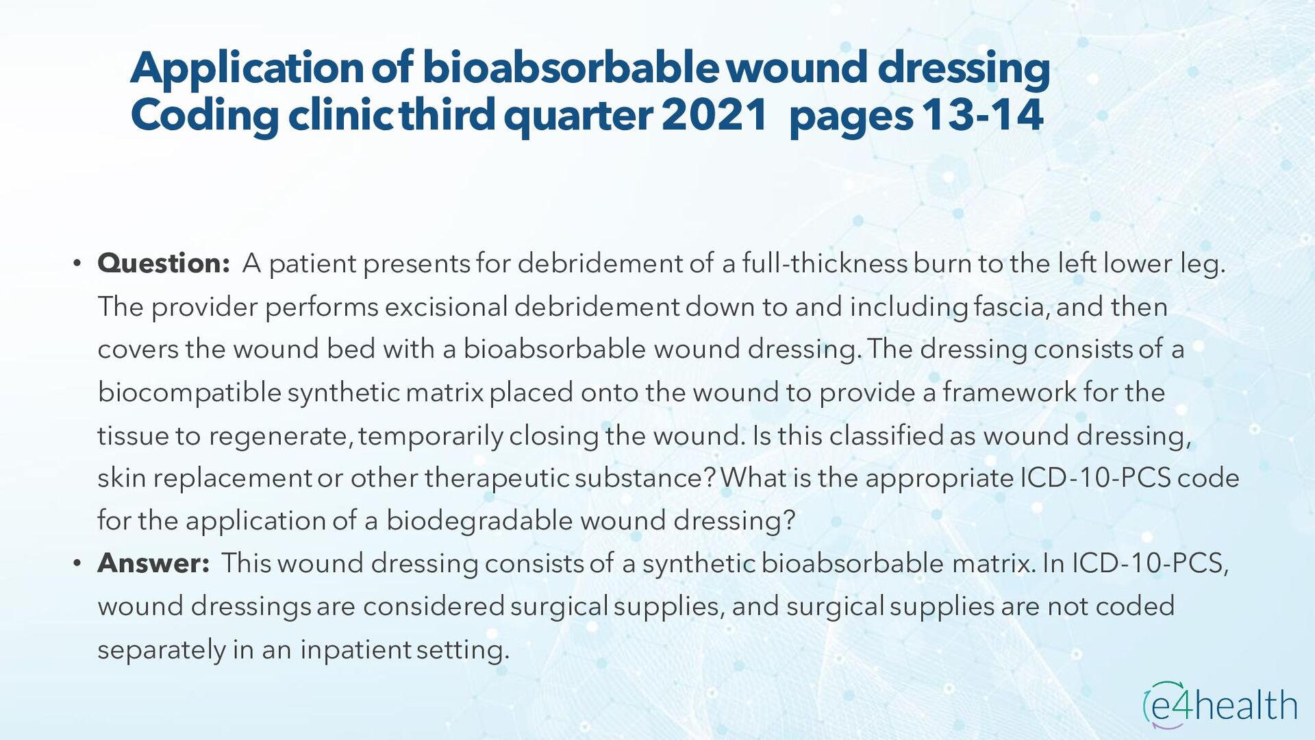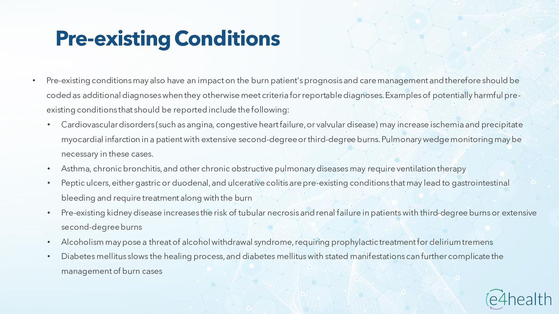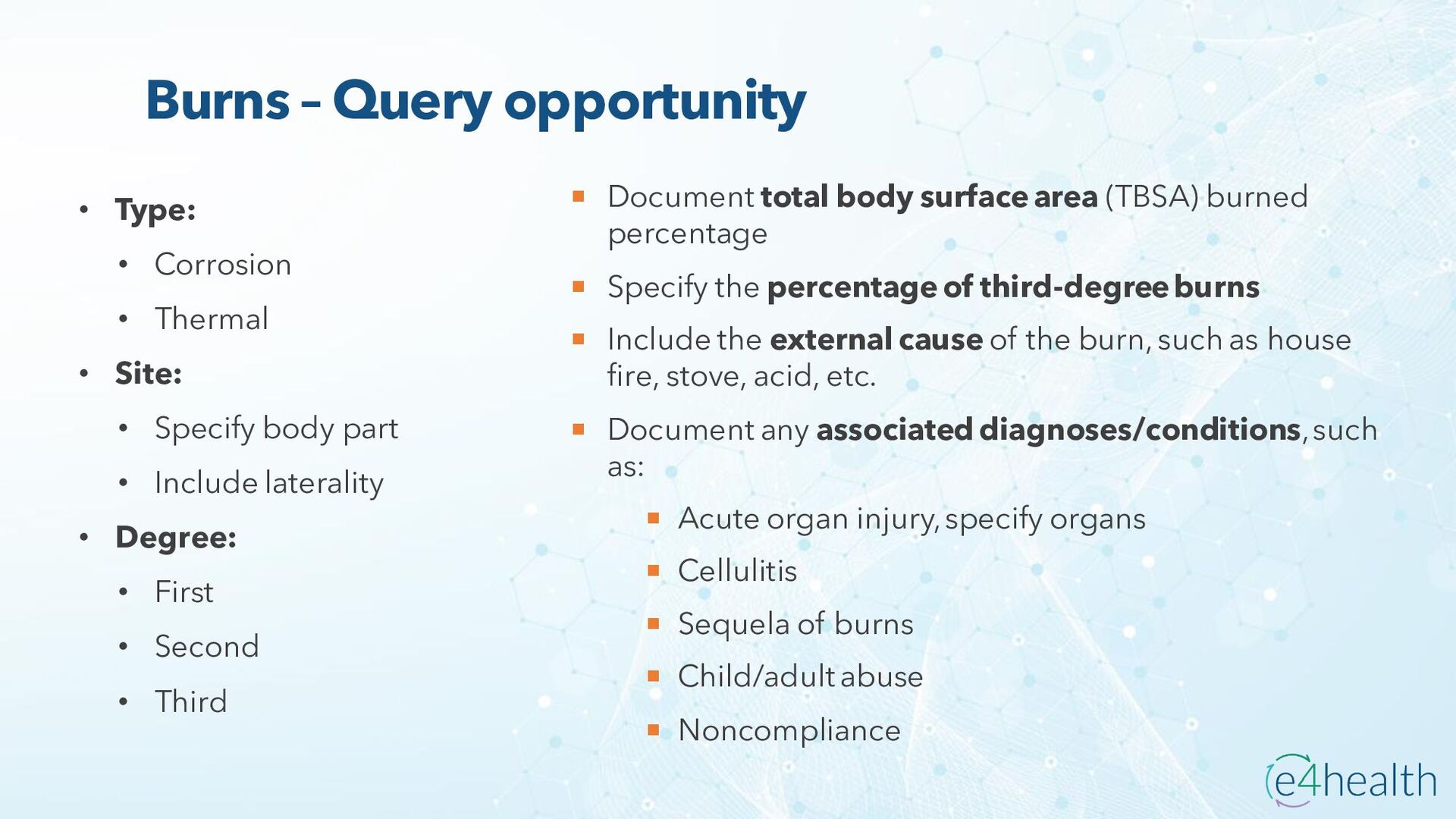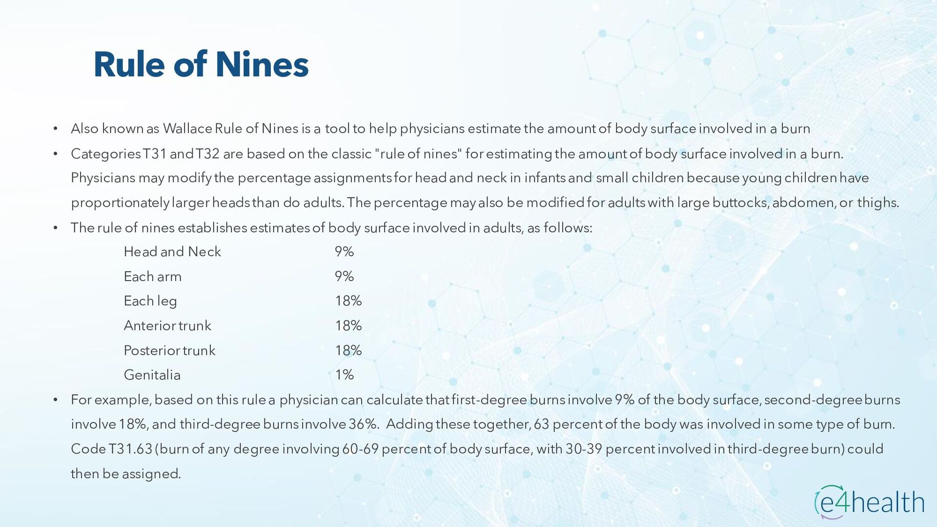 through T28 require the following seventh-character values A - Initial Encounter D - Subsequent Encounter S - Sequela • Value "A" (initial encounter) is used for each encounter in which the patient is receiving active treatment for the injury. Examples of active treatment are surgical treatment, emergency department encounter, and evaluation and management of acute injuries. Although the patient may be seen by a new or different provider over the course of treatment for the injury, assignment of the seventh character is based on whether the patient is undergoing active treatment—not on whether the provider is seeing the patient for the first time. • Value "D" (subsequent encounter) is used for encounters after the patient has completed active treatment of the injury and is receiving routine care for the injury during the healing or recovery phase. Examples of subsequent care are medication adjustment, other aftercare, and follow-up visits following injury treatment. The aftercare Z codes should not be used for aftercare for injuries. For aftercare of an injury, assign the acute injury code with the seventh character "D" (subsequent encounter). • Value "S" (sequela) is for use for complications or conditions that arise as a direct result of an injury, such as scar formation after a burn; the scars are sequelae of the burn. When using value "S," it is necessary to use both the code for the sequela itself and the injury code that precipitated the sequela. The specific type of sequela (e.g., scar) is sequenced first, followed by the injury code. The "S" value identifies the injury responsible for the sequela and is added only to the burn or corrosion code, not the sequela code. • Note that using code Z41.1, Encounter for cosmetic surgery, is inappropriate for burn patients admitted for repair of scar tissue, skin contracture, or other sequelae. For such patients, a code should be assigned for the condition being treated.